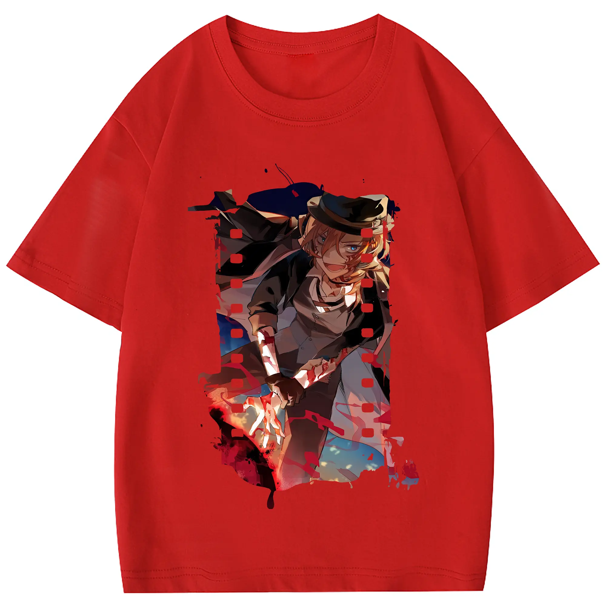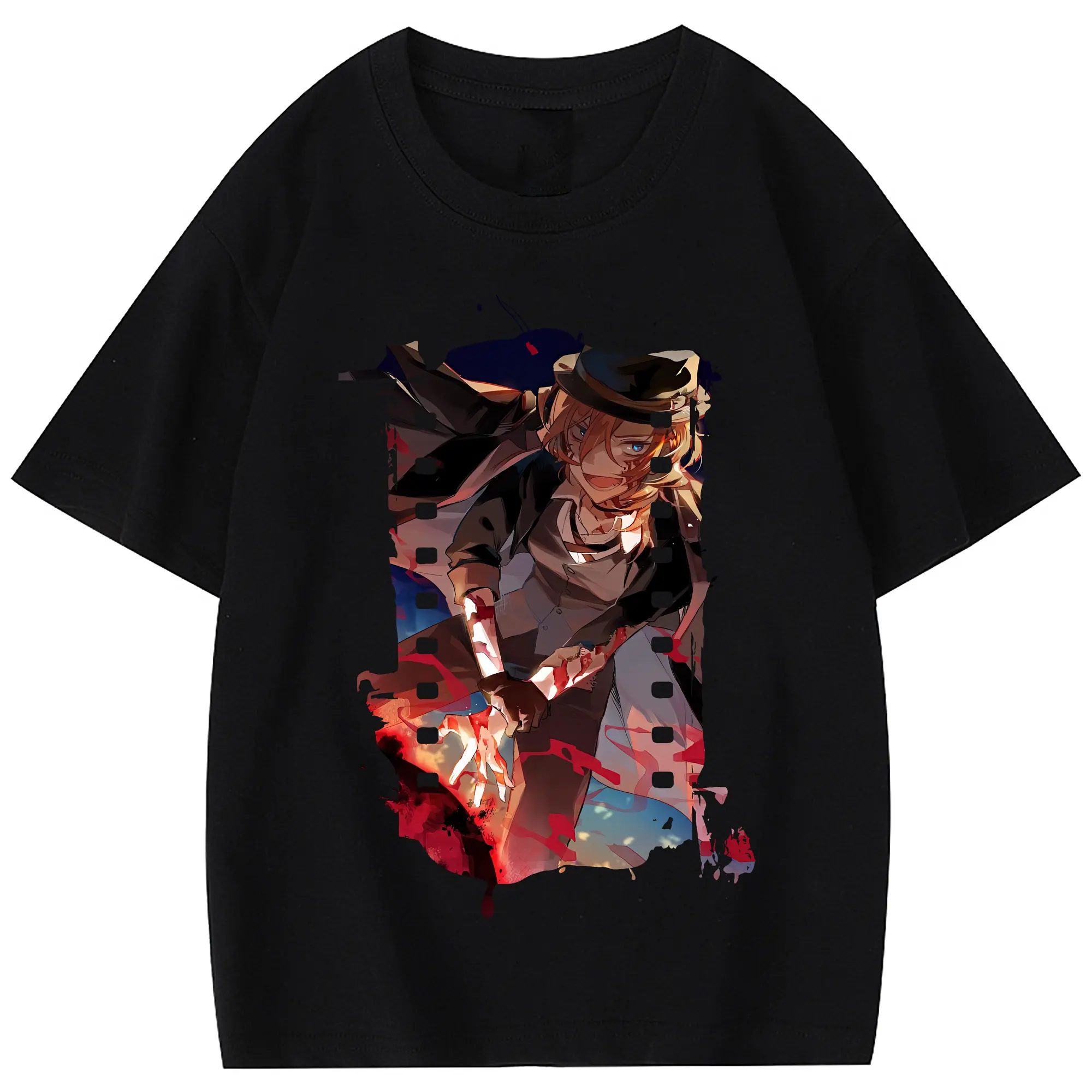 文豪ストレイドッグス グッズ,中原中也 - 綿100% 半袖Tシャツ ・ フロントプリント ・ 快適 通気性 ・ 日常使い 散歩 スポーツ用