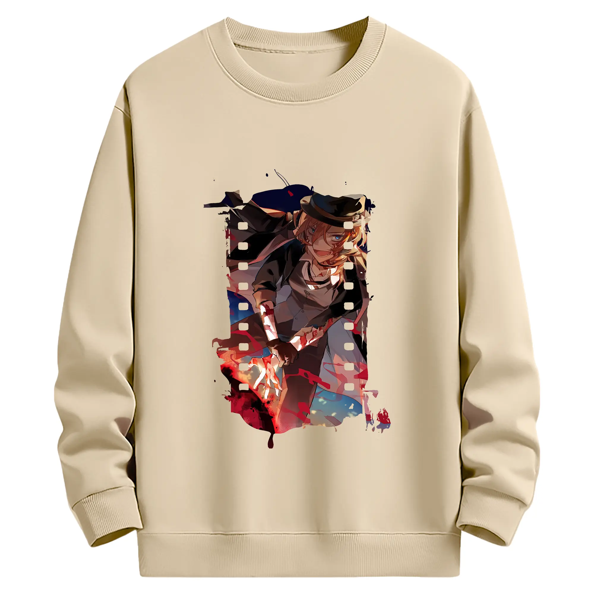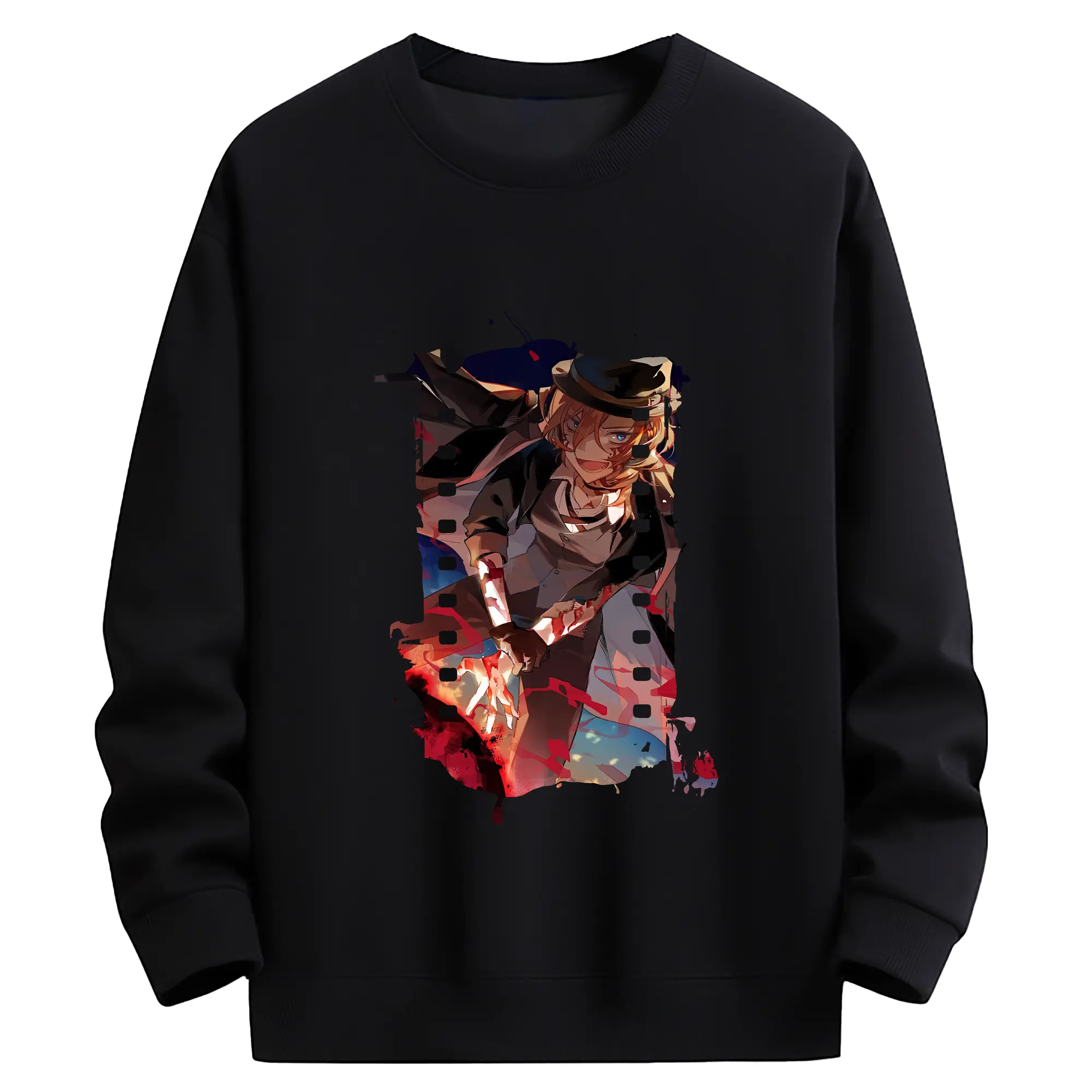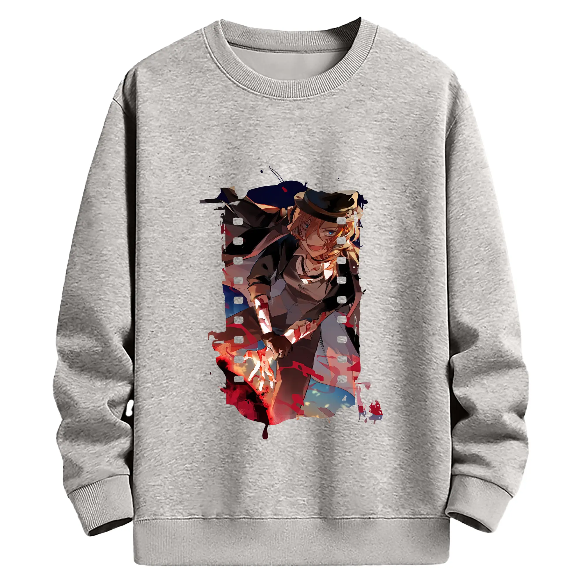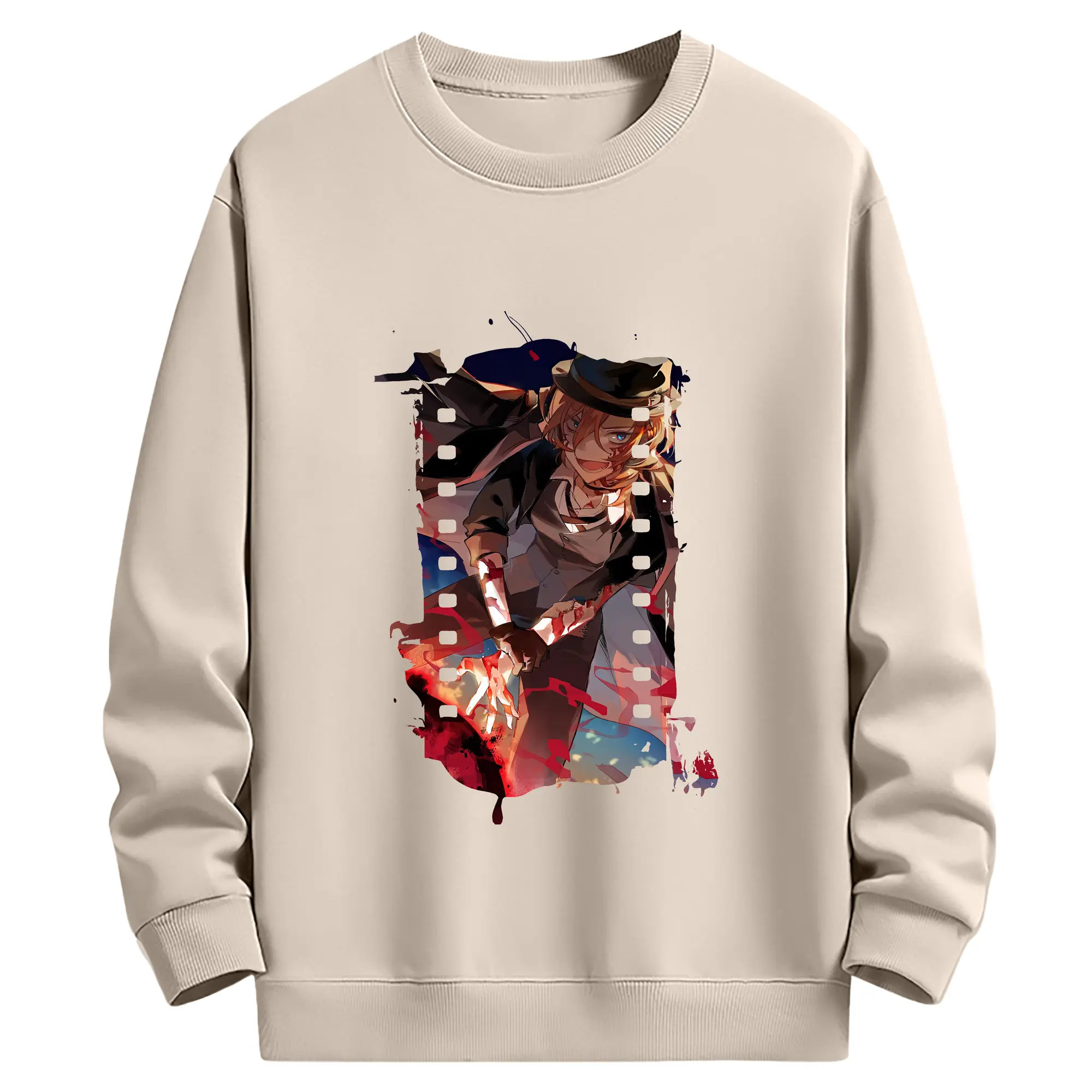 文豪ストレイドッグス グッズ,中原中也 - 薄手 クルーネック スウェット 裏毛260g · ポリエステル 春秋向け カジュアル 男女兼用 · トレーナー デイリー スポーツ 散歩に最適