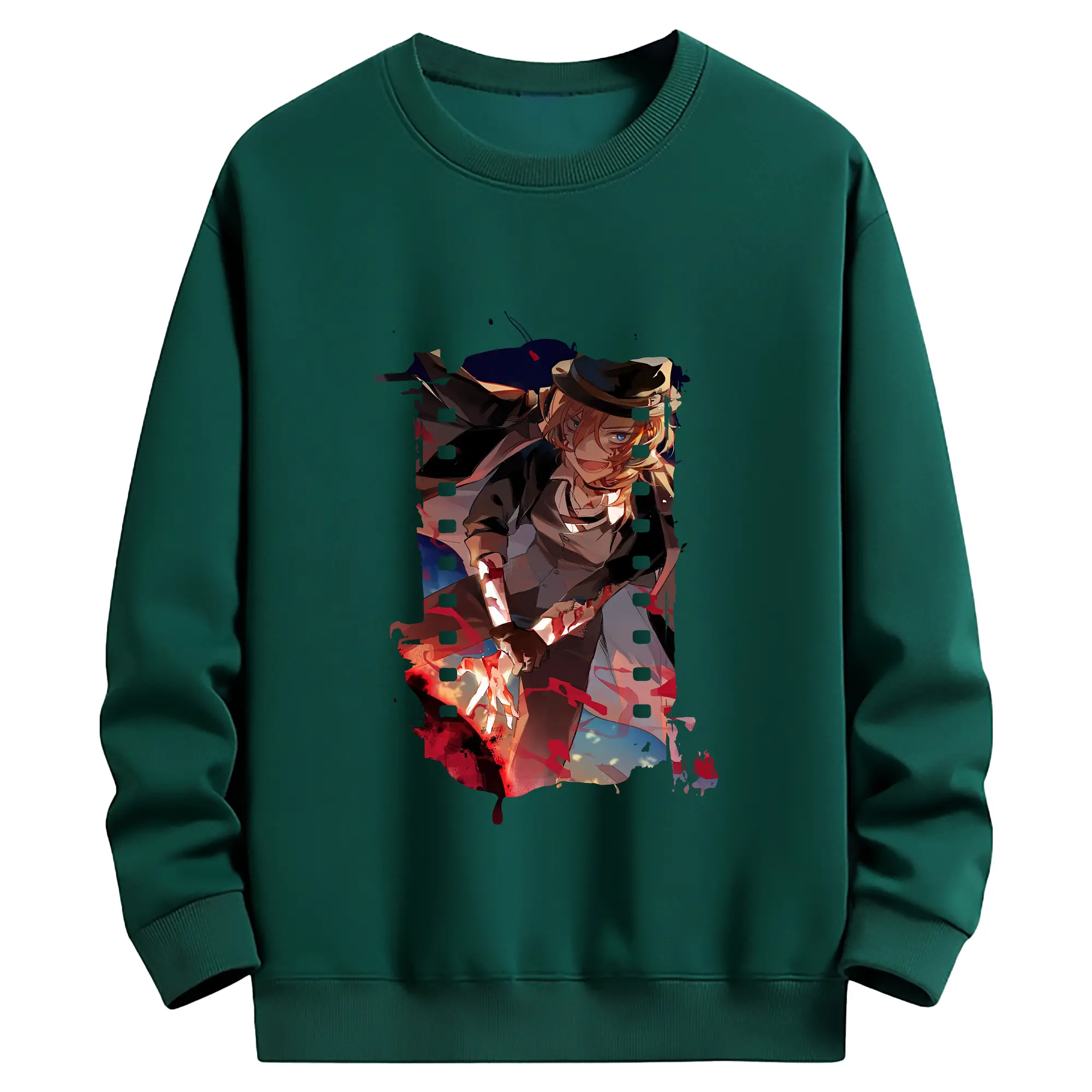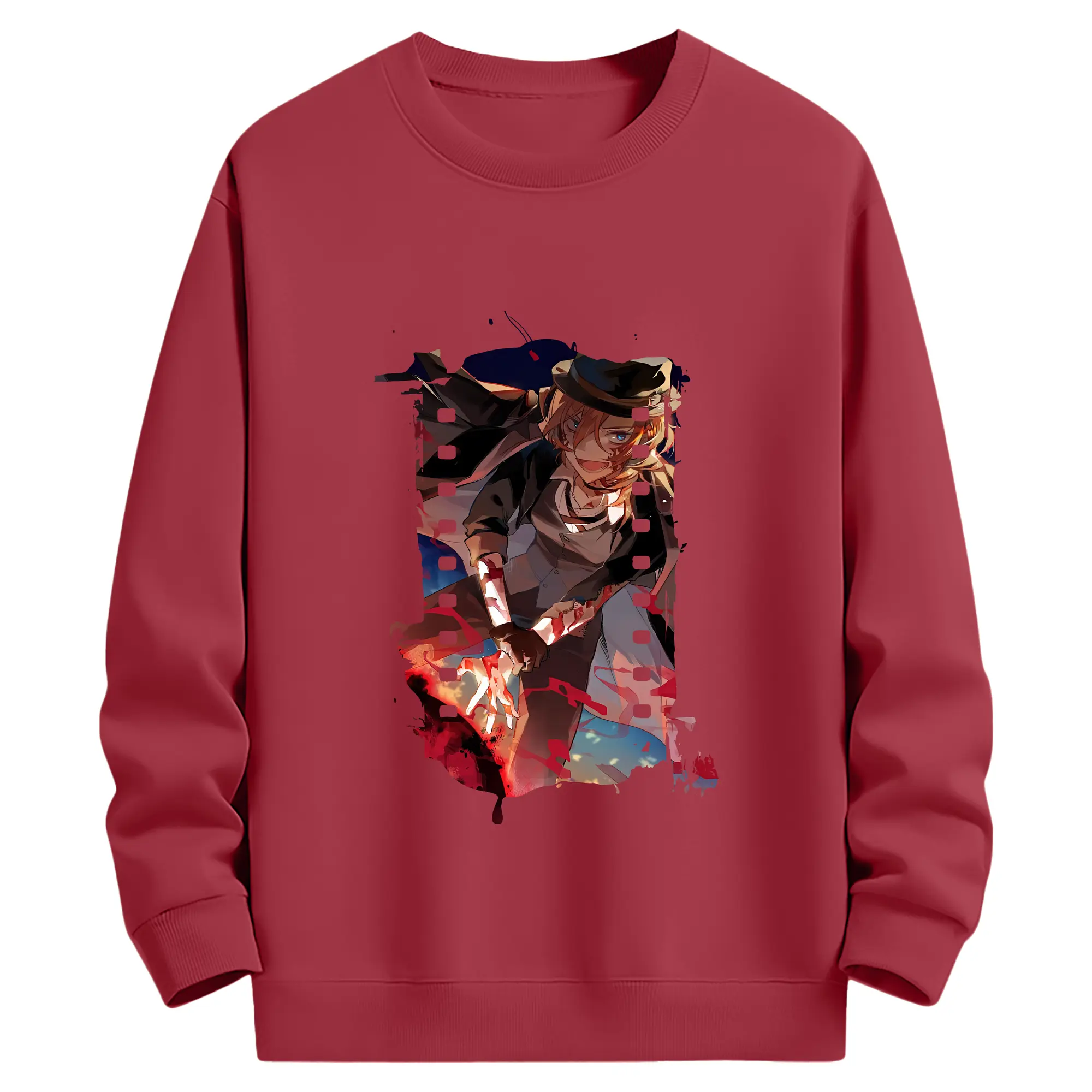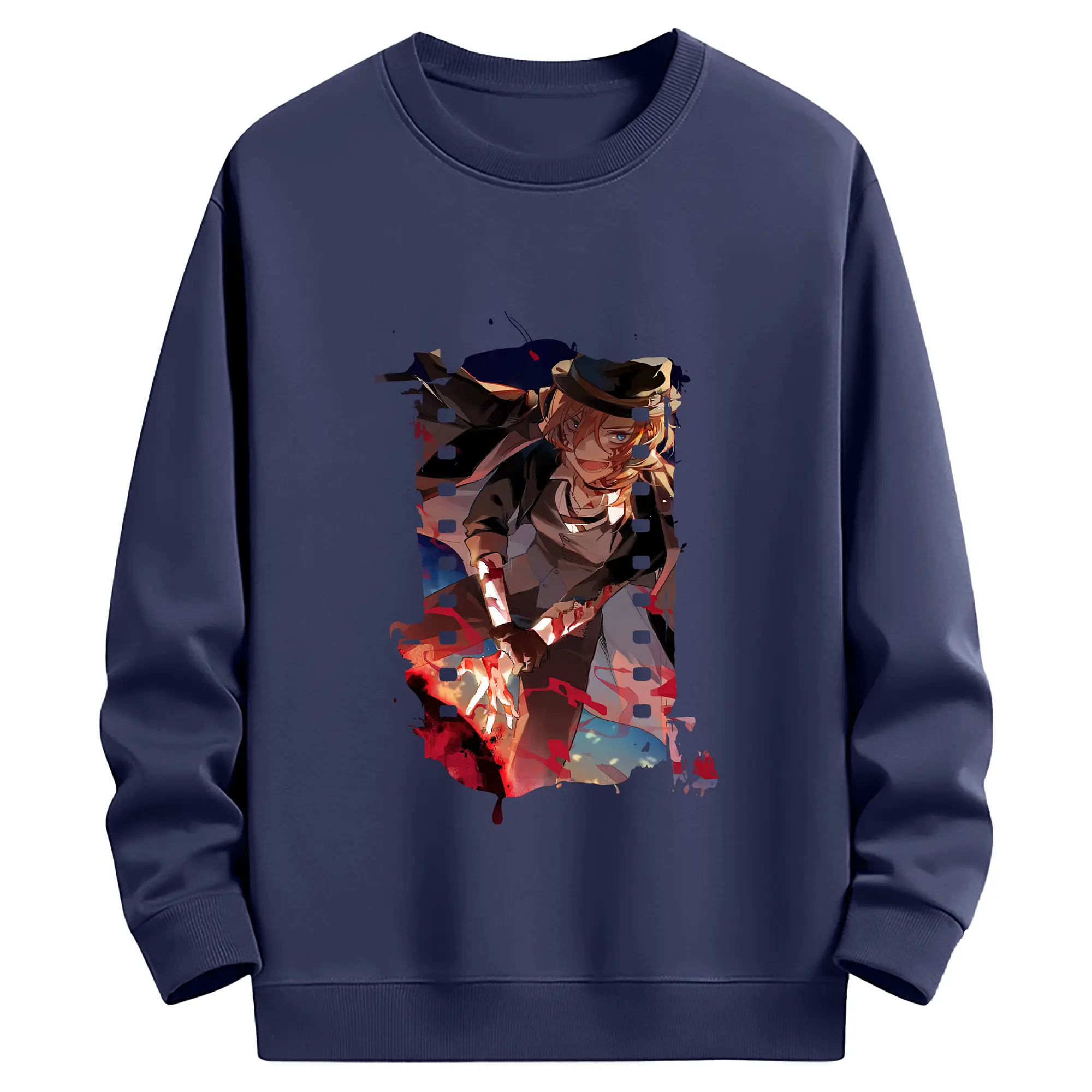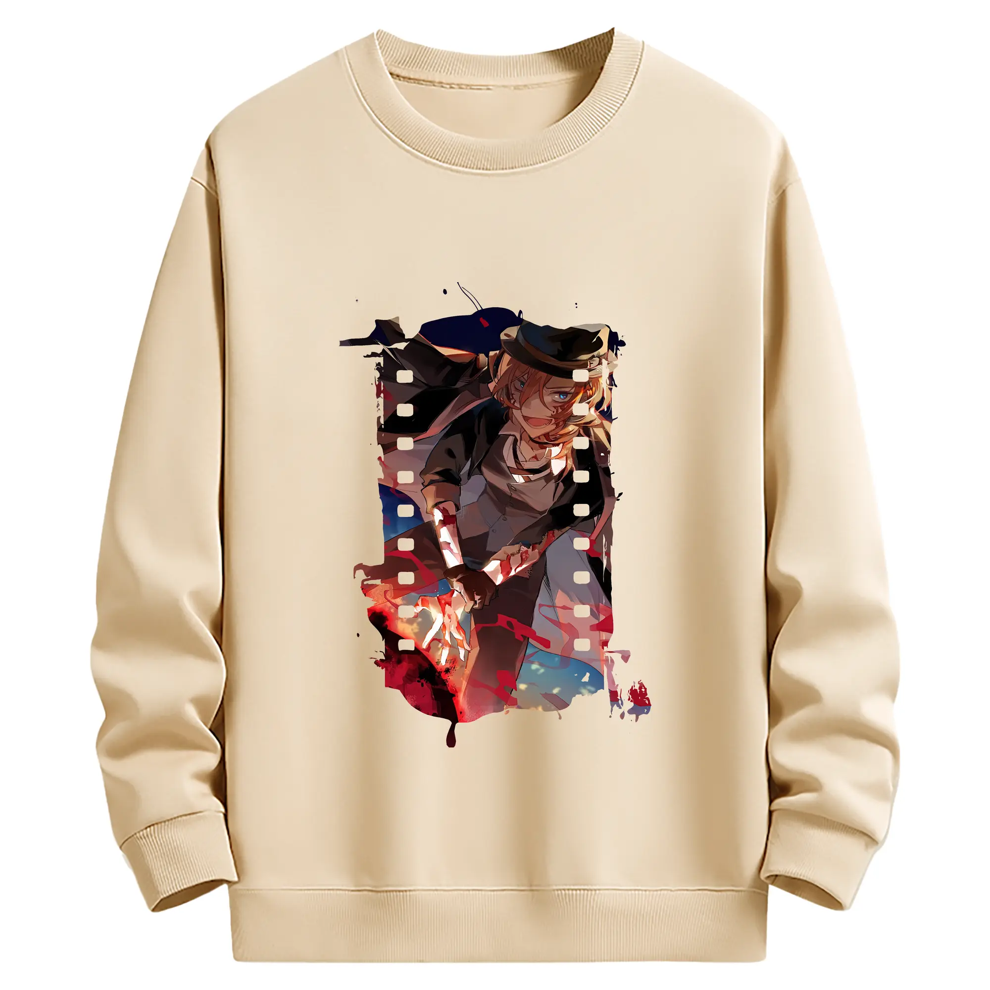 文豪ストレイドッグス グッズ,中原中也 - 薄手 クルーネック スウェット 裏毛260g · ポリエステル 春秋向け カジュアル 男女兼用 · トレーナー デイリー スポーツ 散歩に最適