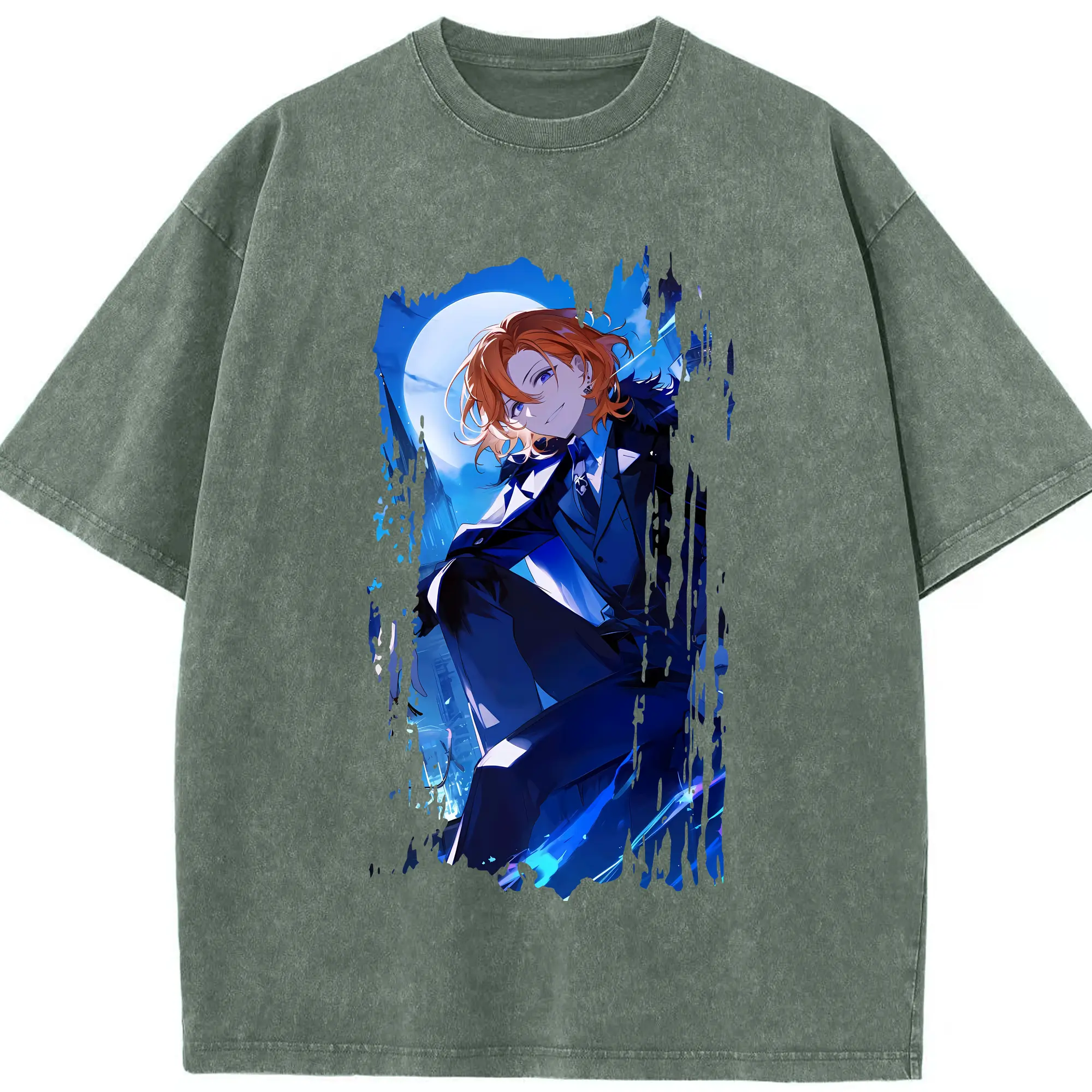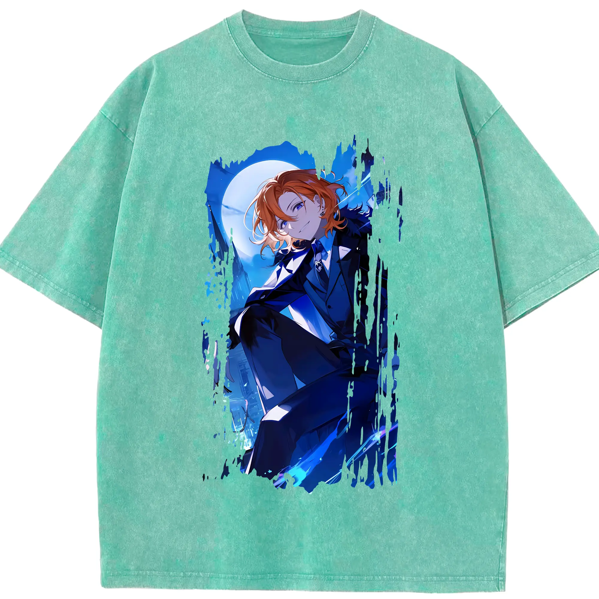 文豪ストレイドッグス グッズ,中原中也 - 綿100% 半袖Tシャツ ・ フロントプリント ・ 快適 通気性 ・ 日常使い 散歩 スポーツ用