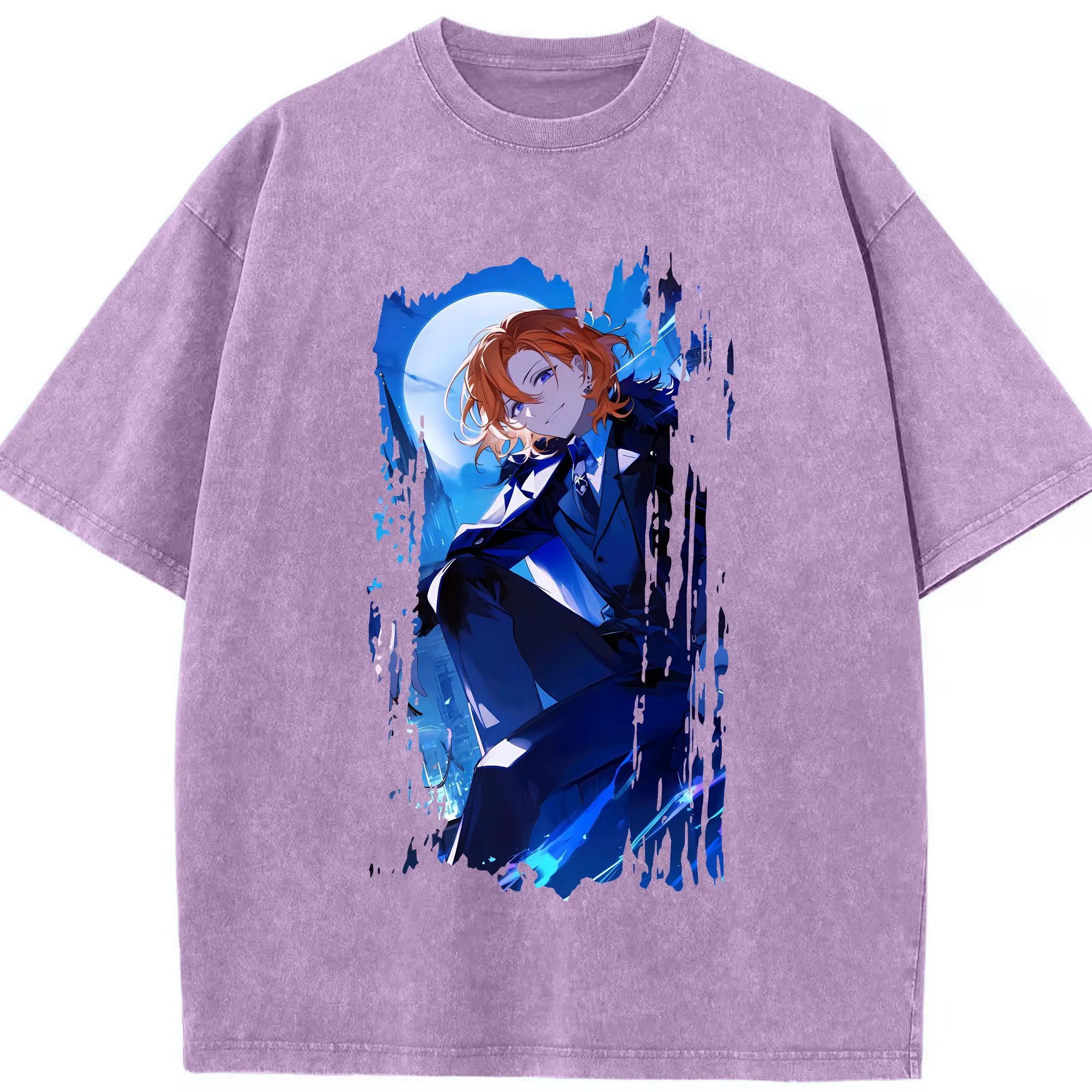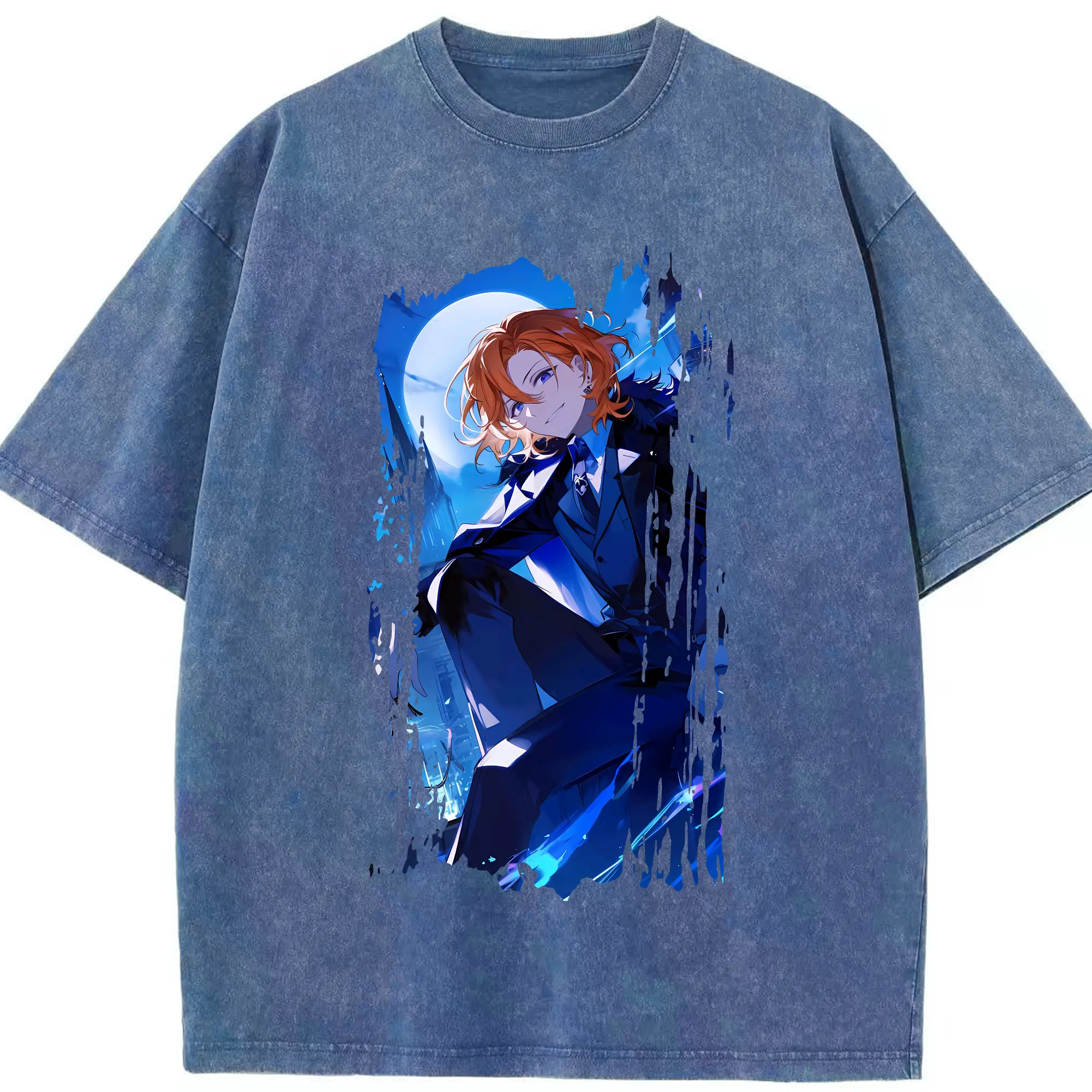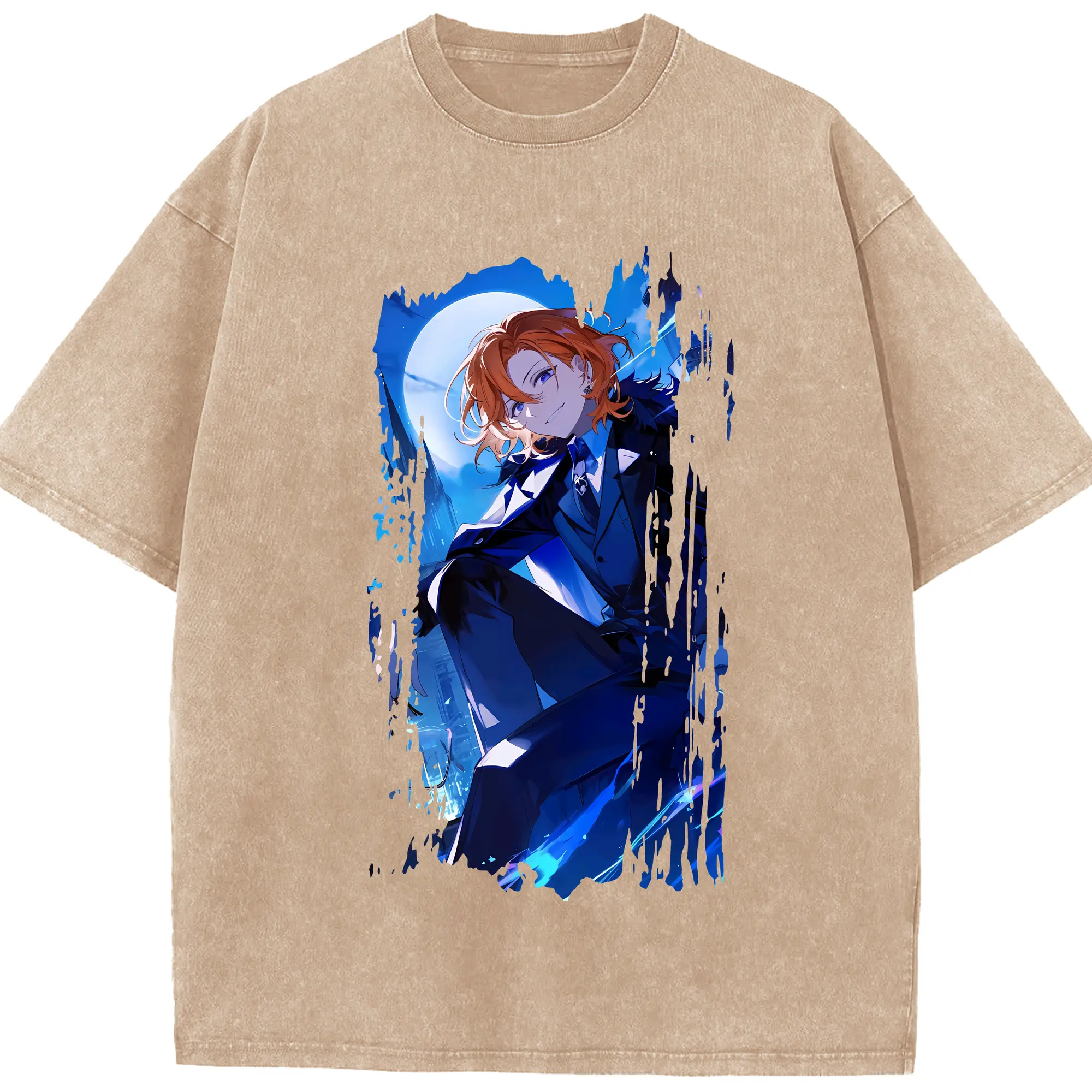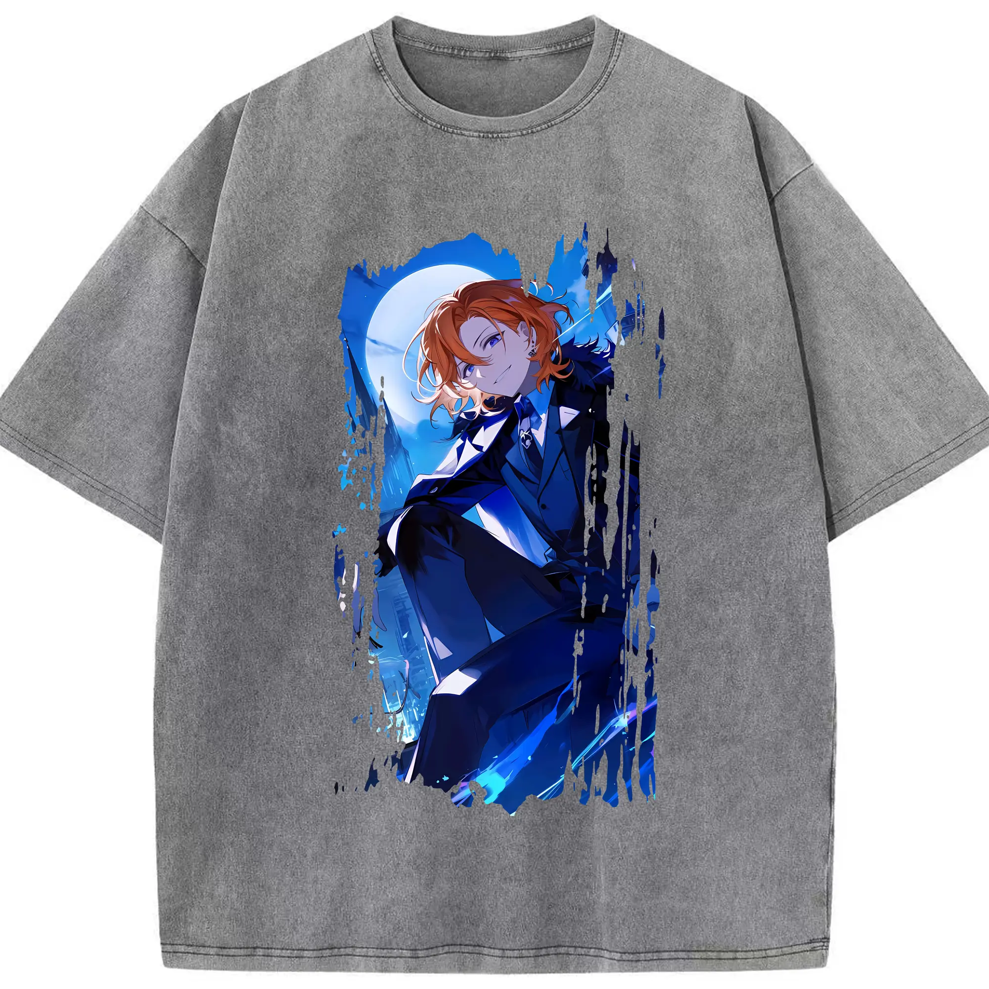 文豪ストレイドッグス グッズ,中原中也 - 綿100% ヴィンテージ風 半袖Tシャツ ・ 背面プリント ・ 柔らか肌触り ・ 通気性 快適 ・ スポーツ カジュアル 外出用