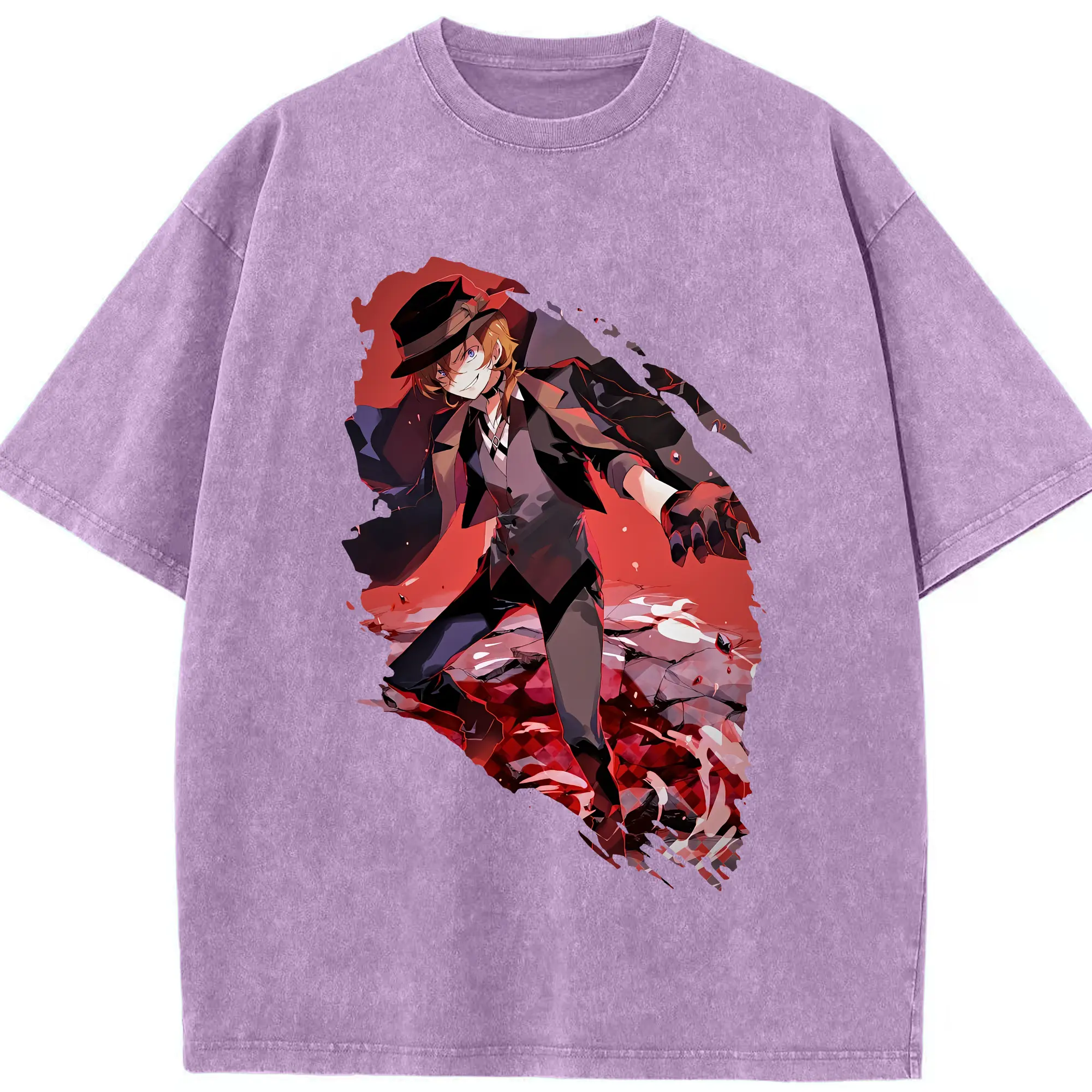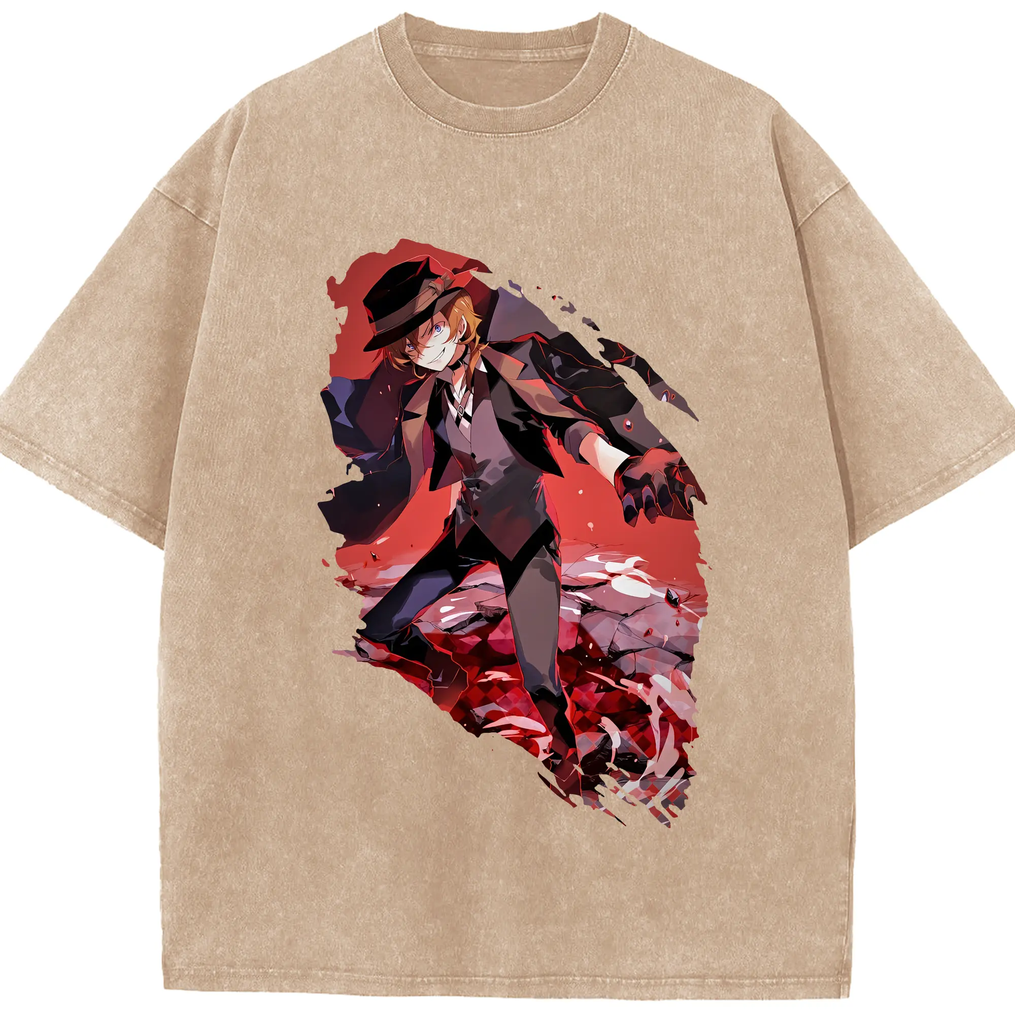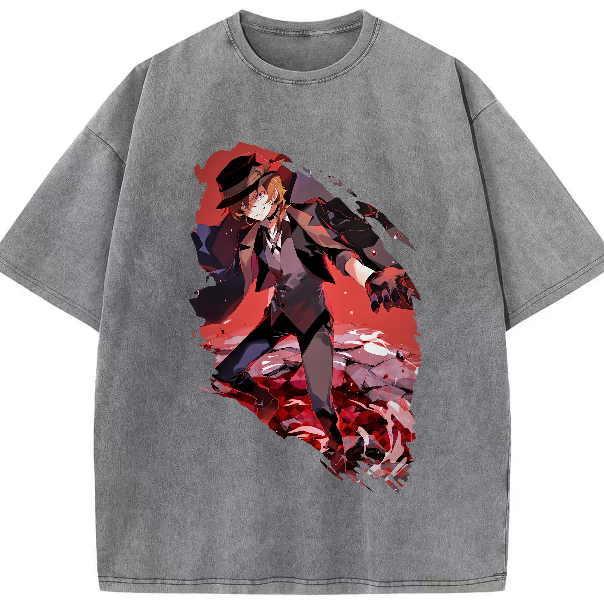 文豪ストレイドッグス グッズ,中原中也 - 綿100% ヴィンテージ風 半袖Tシャツ ・ 背面プリント ・ 柔らか肌触り ・ 通気性 快適 ・ スポーツ カジュアル 外出用