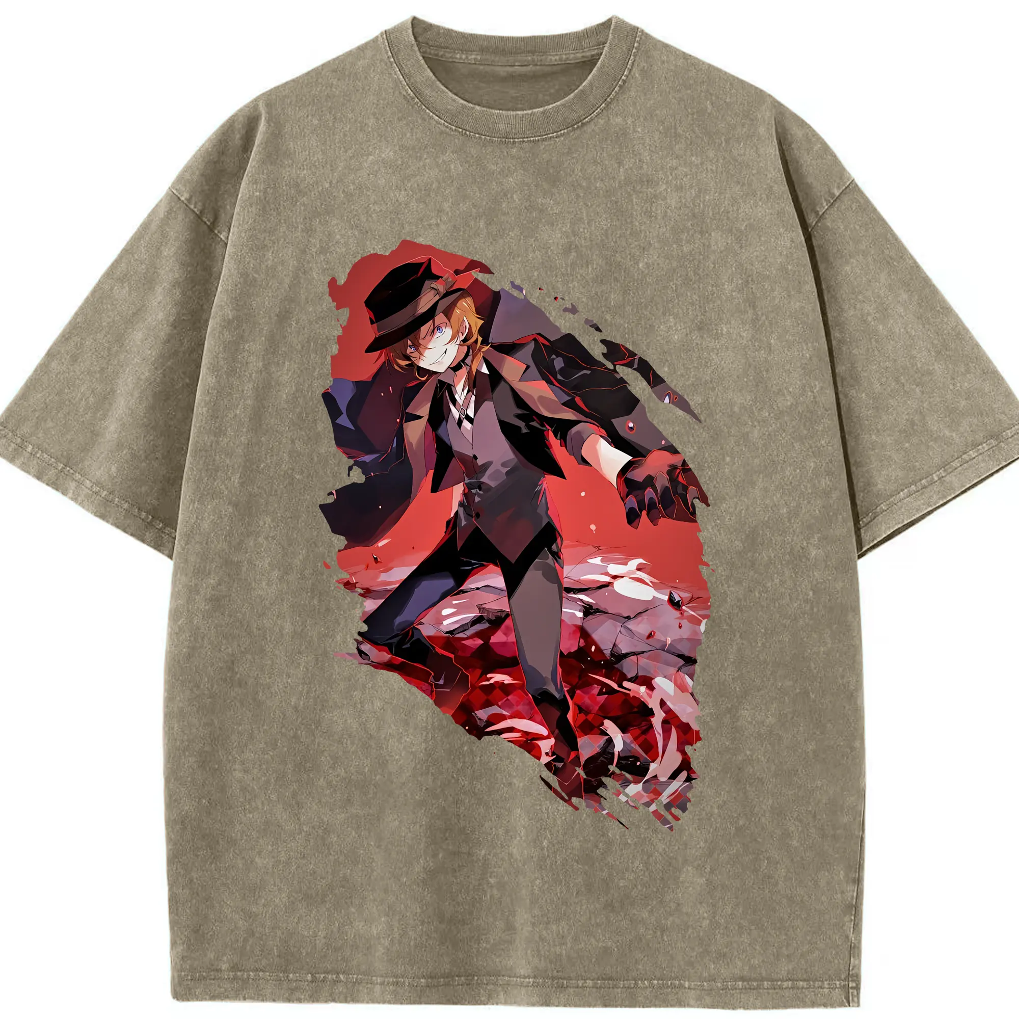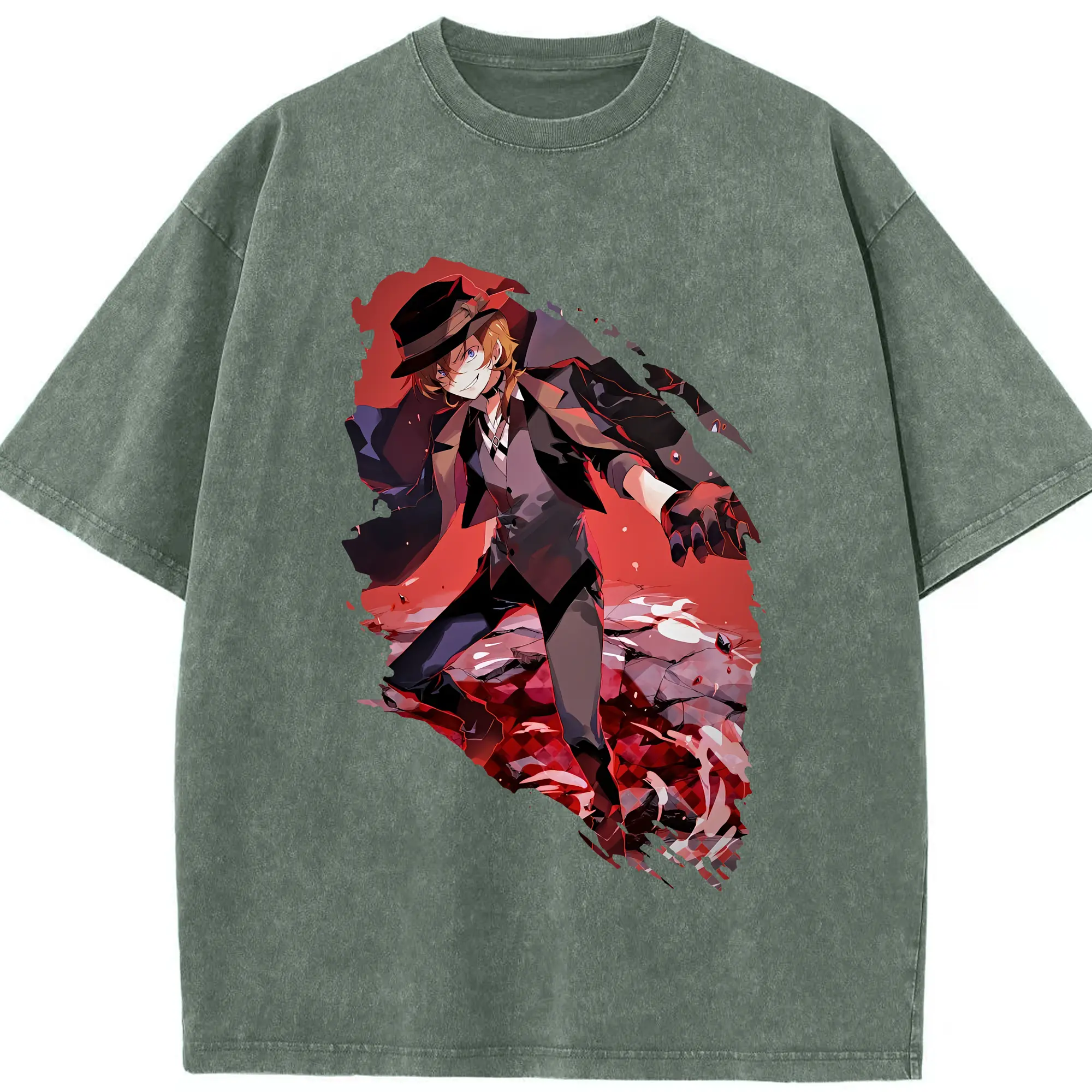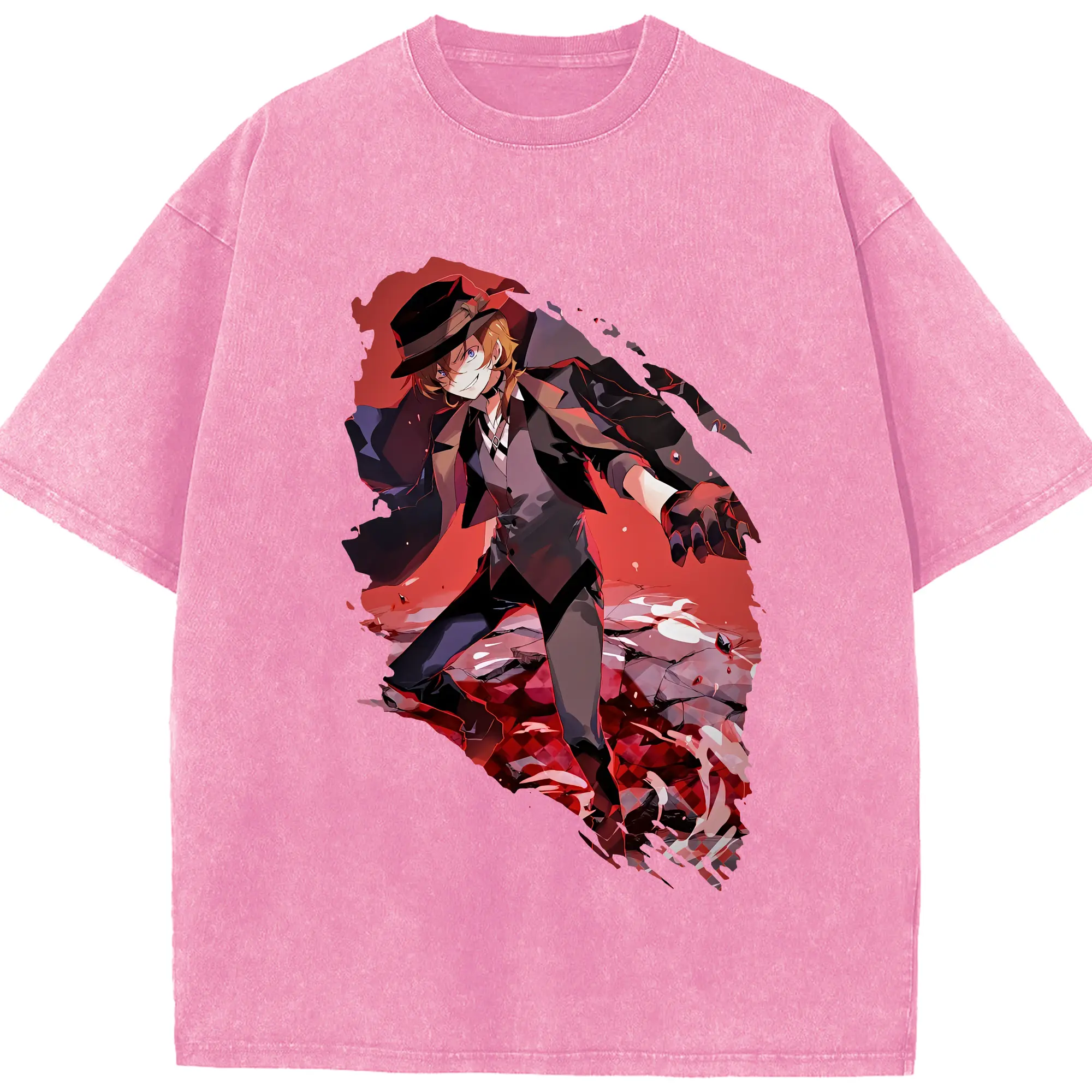文豪ストレイドッグス グッズ,中原中也 - 綿100% ヴィンテージ風 半袖Tシャツ ・ 背面プリント ・ 柔らか肌触り ・ 通気性 快適 ・ スポーツ カジュアル 外出用