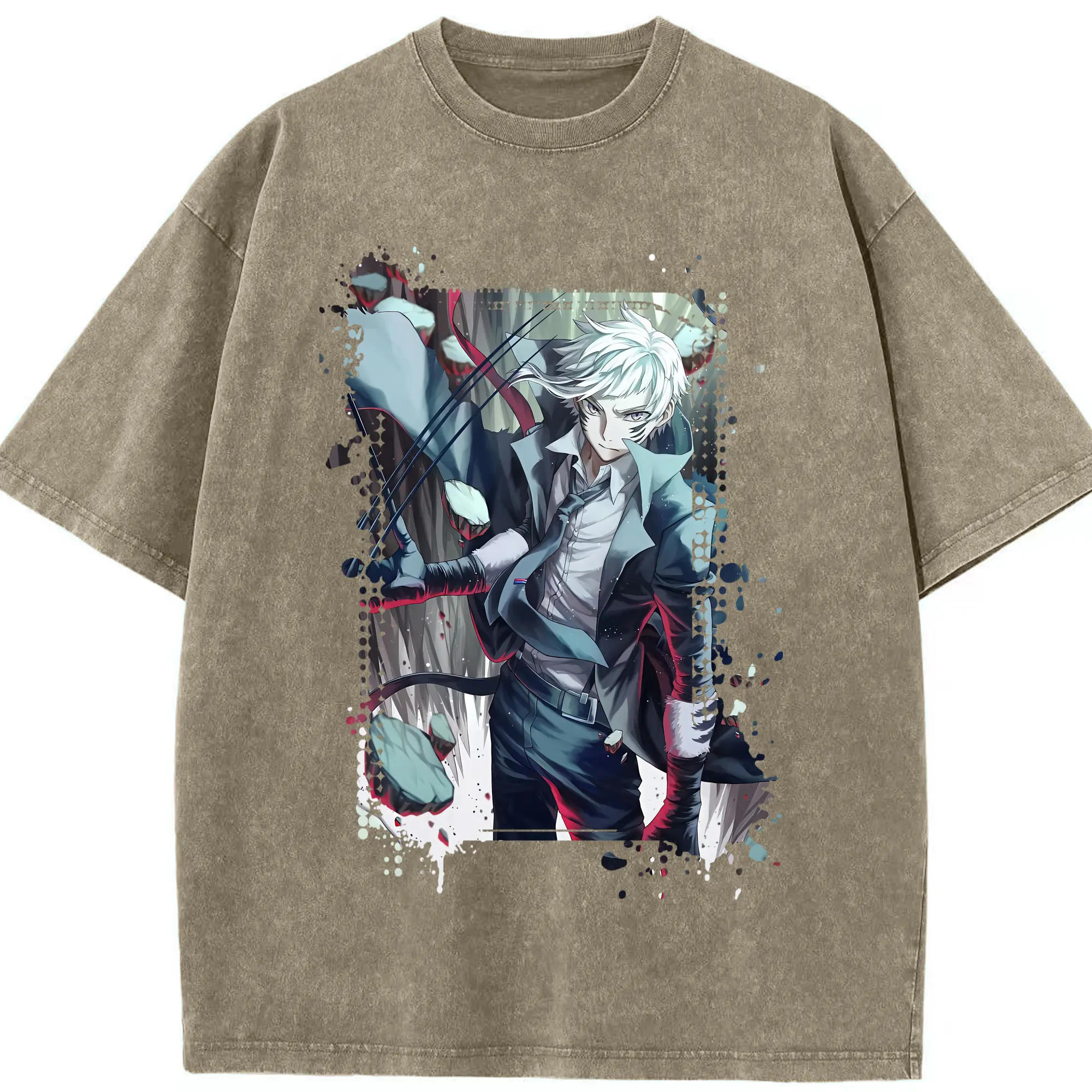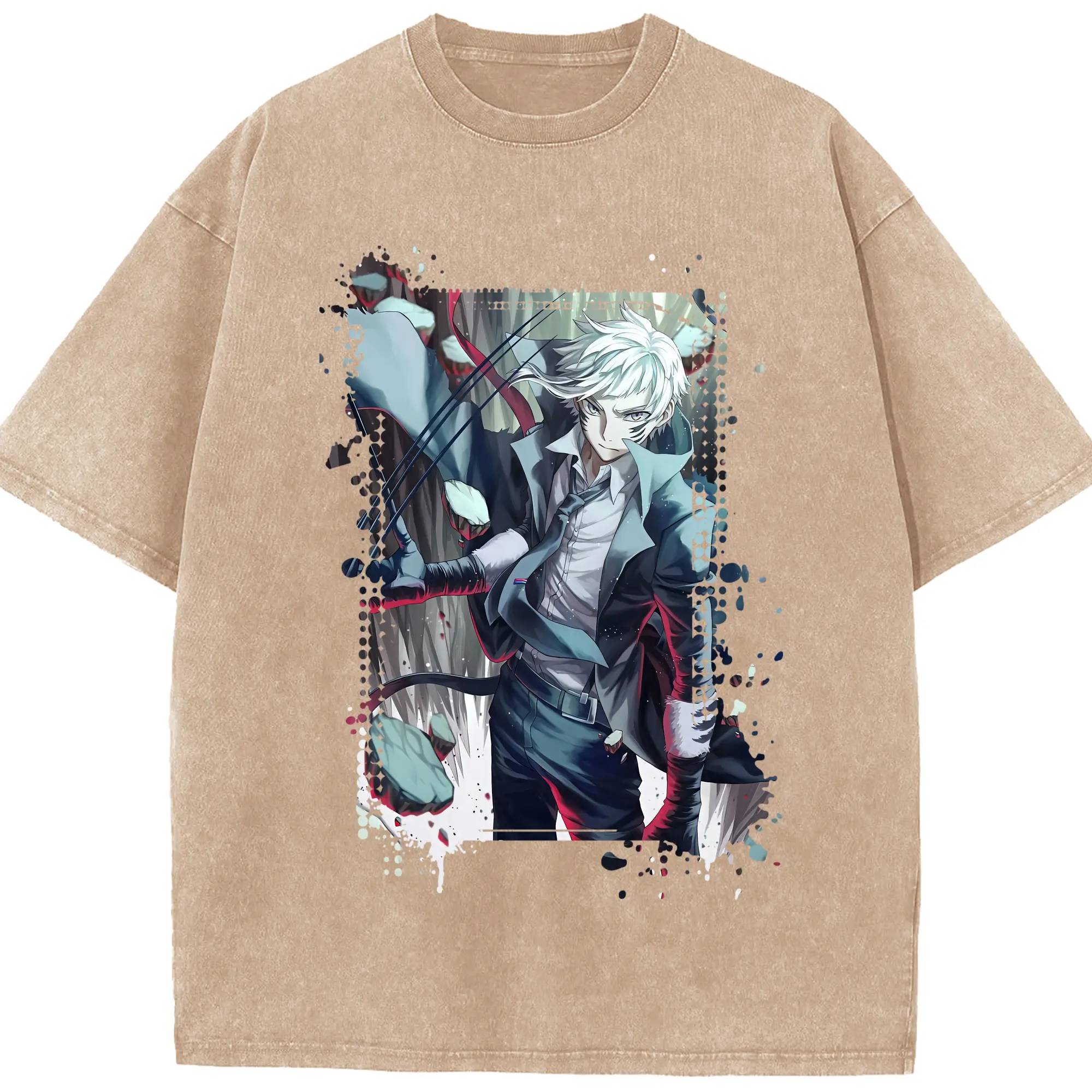 文豪ストレイドッグス グッズ,中島敦 - 綿100% ヴィンテージ風 半袖Tシャツ ・ 背面プリント ・ 柔らか肌触り ・ 通気性 快適 ・ スポーツ カジュアル 外出用