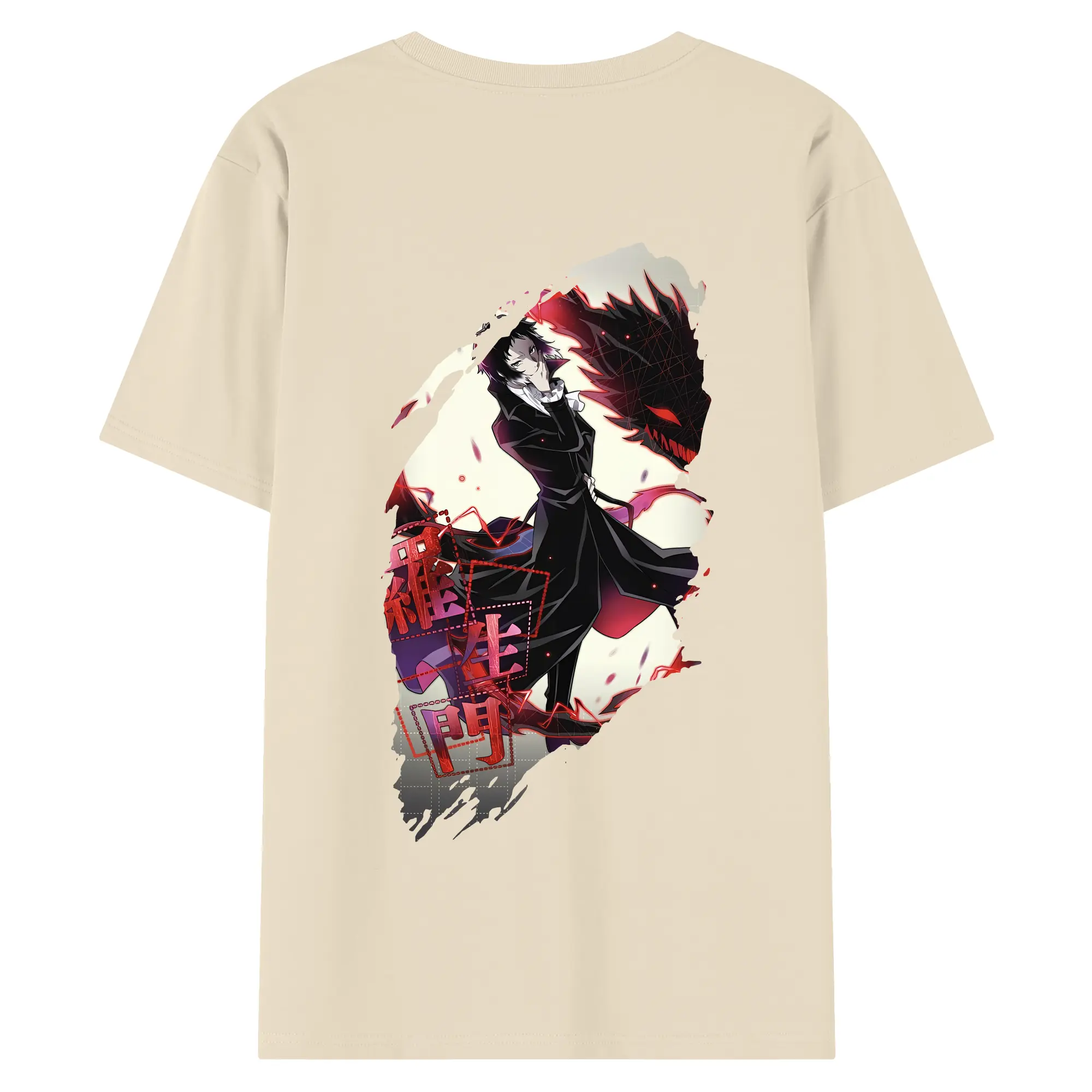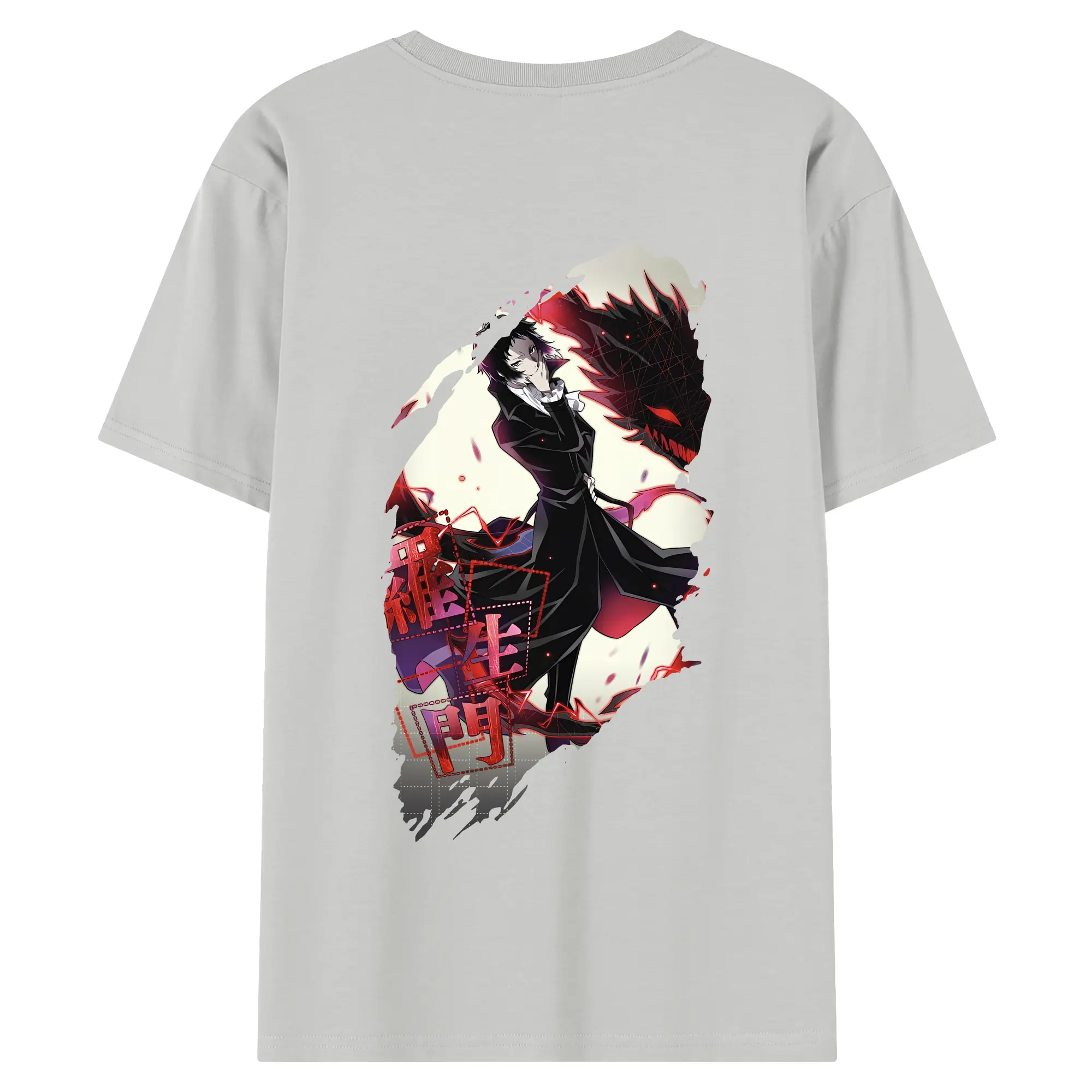文豪ストレイドッグス グッズ,芥川龍之介 - 綿100% ヴィンテージ風 半袖Tシャツ ・ 背面プリント ・ 柔らか肌触り ・ 通気性 快適 ・ スポーツ カジュアル 外出用