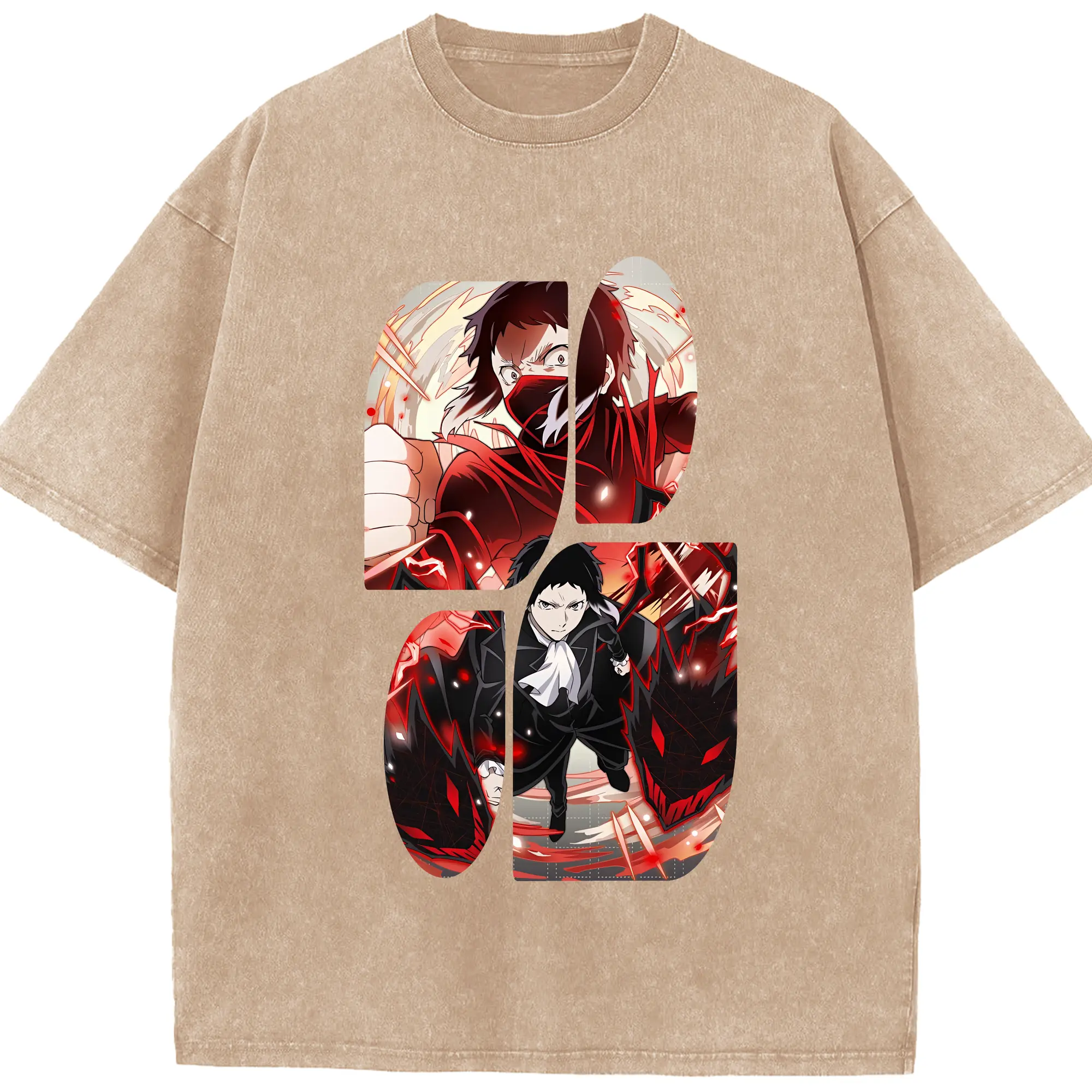 文豪ストレイドッグス グッズ,芥川龍之介 - 綿100% ヴィンテージ風 半袖Tシャツ ・ 背面プリント ・ 柔らか肌触り ・ 通気性 快適 ・ スポーツ カジュアル 外出用