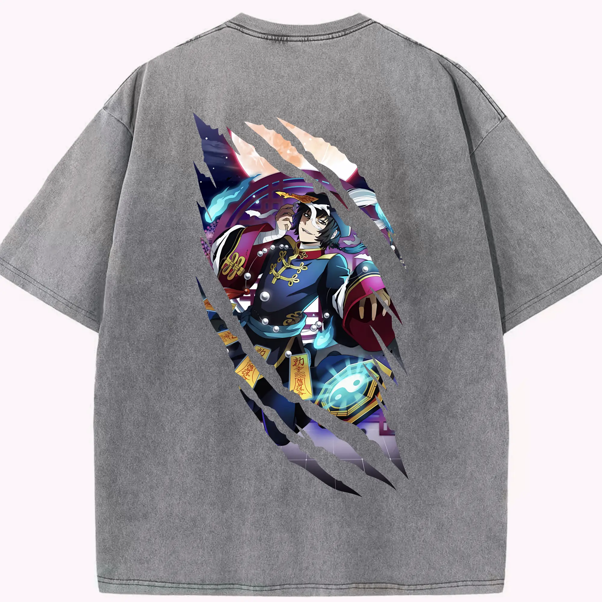 文豪ストレイドッグス グッズ,芥川龍之介 - 綿100% ヴィンテージ風 半袖Tシャツ ・ フロントプリント ・ 柔らか肌触り ・ 通気性 快適 ・ スポーツ カジュアル 外出用