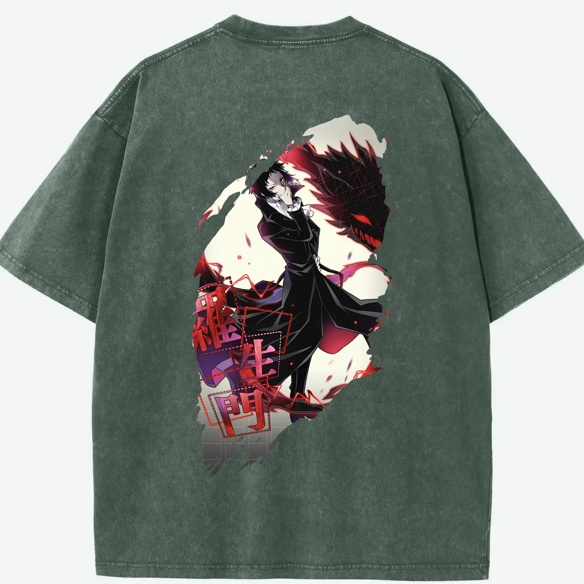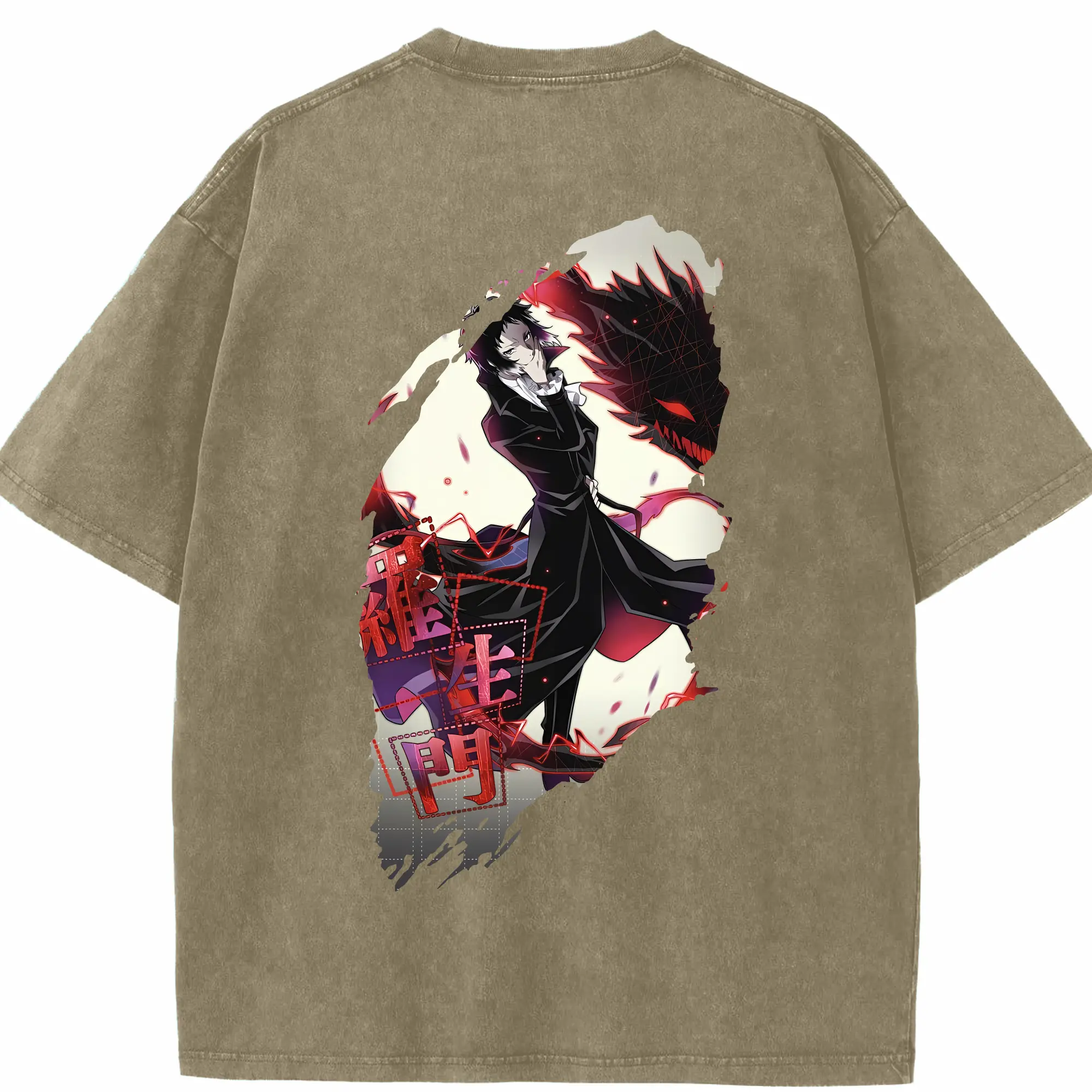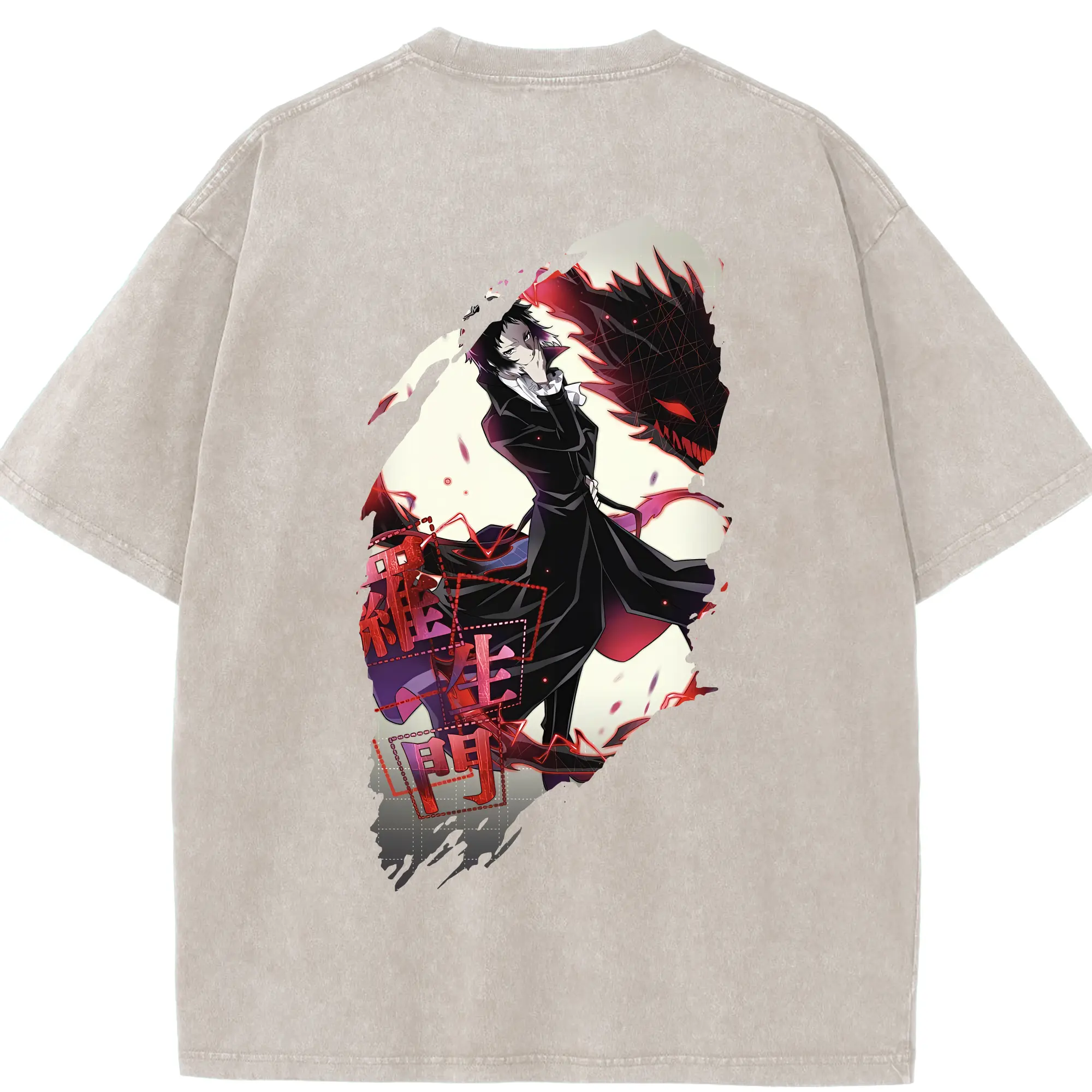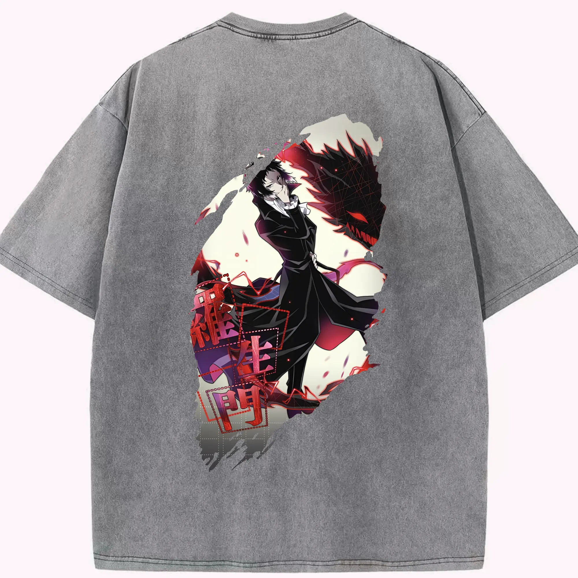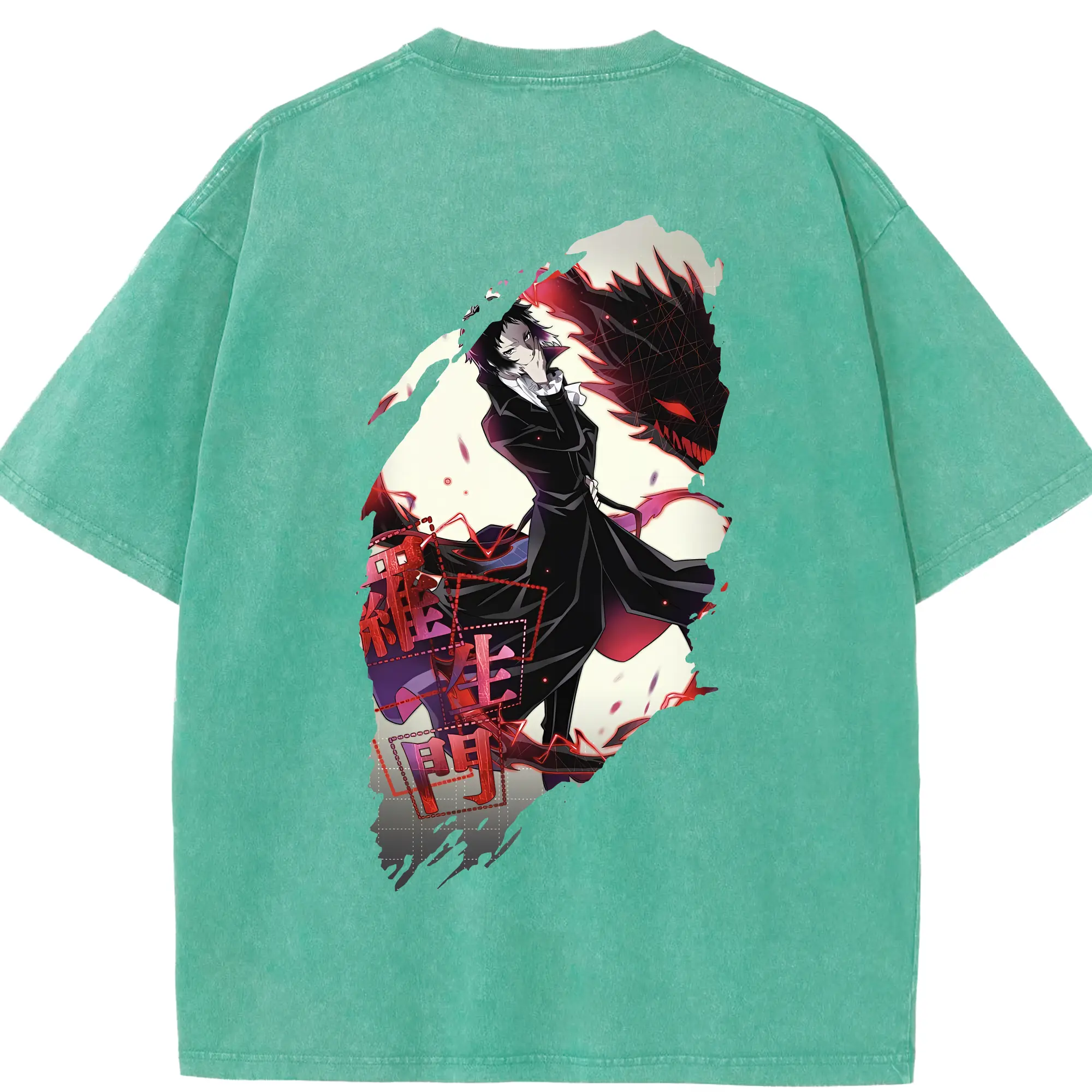 文豪ストレイドッグス グッズ,芥川龍之介 - 綿100% ヴィンテージ風 半袖Tシャツ ・ フロントプリント ・ 柔らか肌触り ・ 通気性 快適 ・ スポーツ カジュアル 外出用