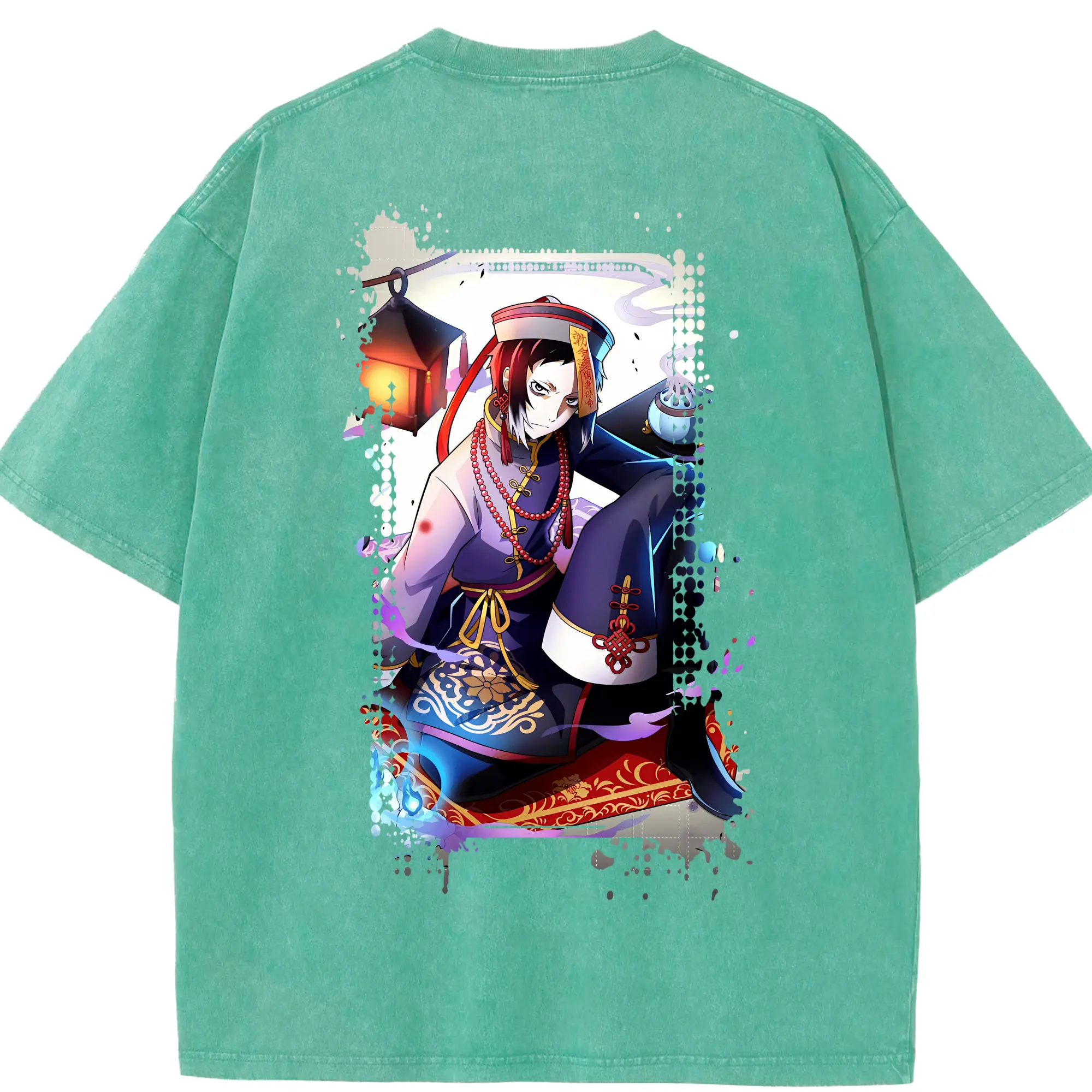 あんさん ぶる グッズ UNDEAD 朔間零 - 綿100% ヴィンテージ風 半袖Tシャツ ・ 背面プリント ・ 柔らか肌触り ・ 通気性 快適 ・ スポーツ カジュアル 外出用