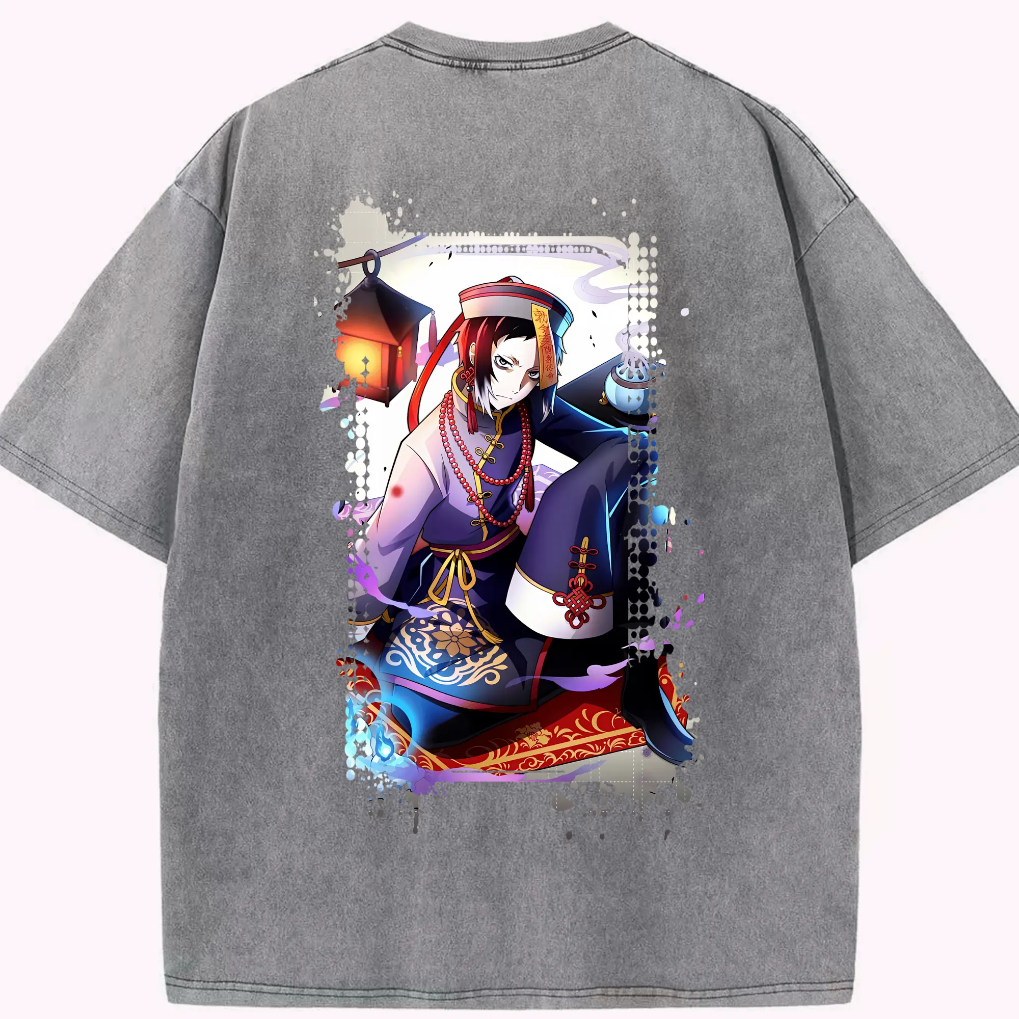 文豪ストレイドッグス グッズ,芥川龍之介 - 綿100% ヴィンテージ風 半袖Tシャツ ・ フロントプリント ・ 柔らか肌触り ・ 通気性 快適 ・ スポーツ カジュアル 外出用