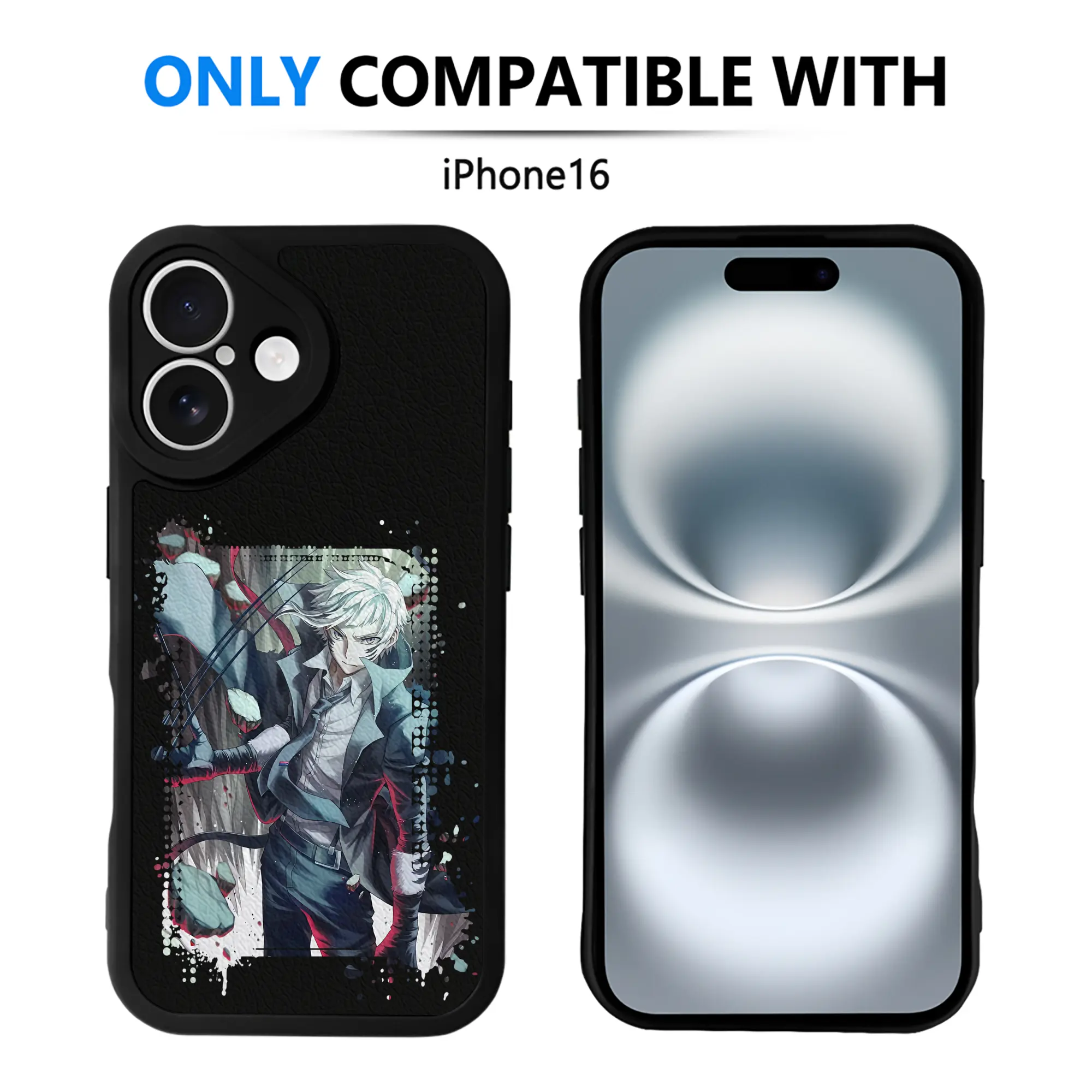 文豪ストレイドッグス グッズ,中島敦 - IPhone 16シリーズ対応 ・ シリコンスマホケース ・ レザー調 ・ 高精度フィット ・ 耐衝撃 ・ ワイヤレス充電対応 ・ 精密カット