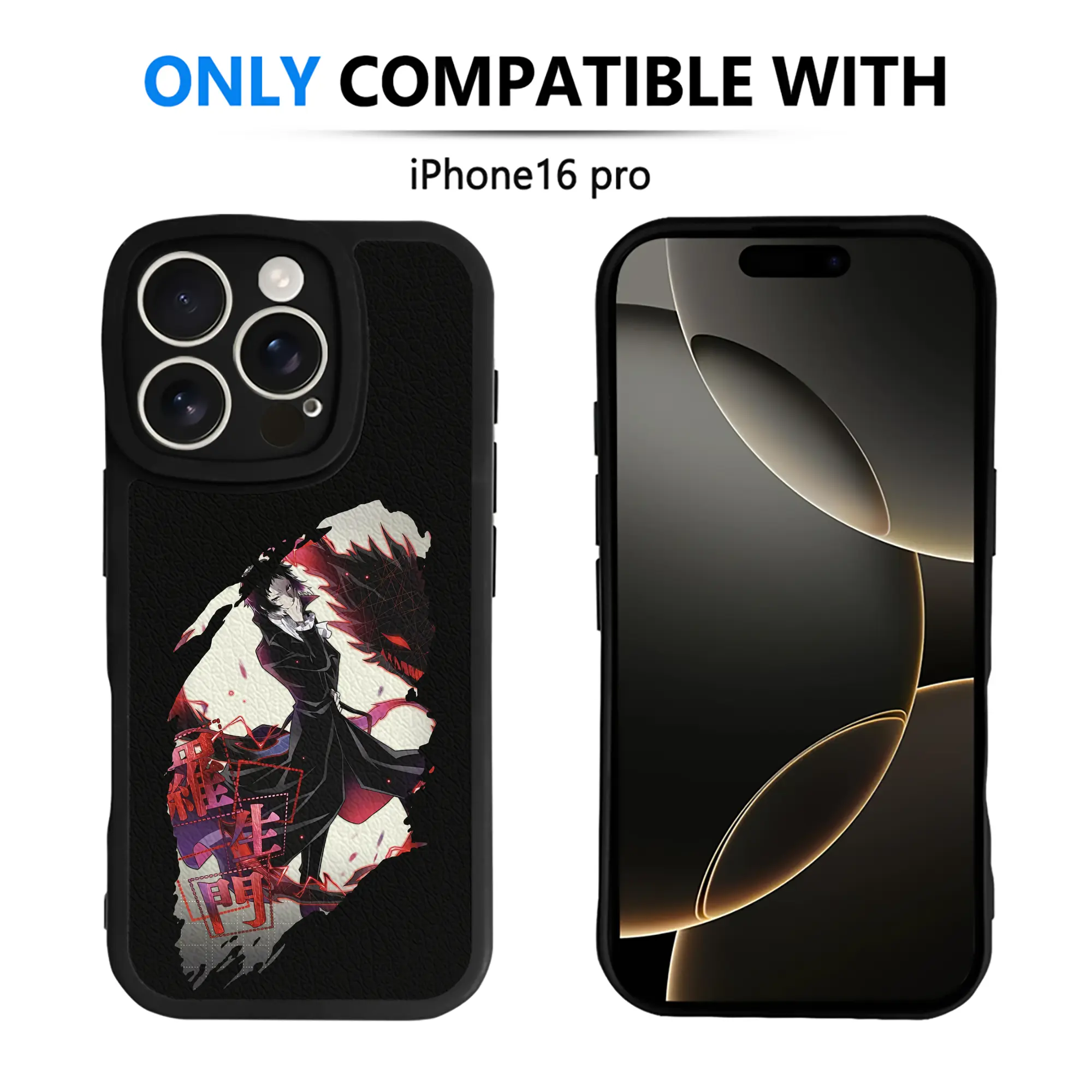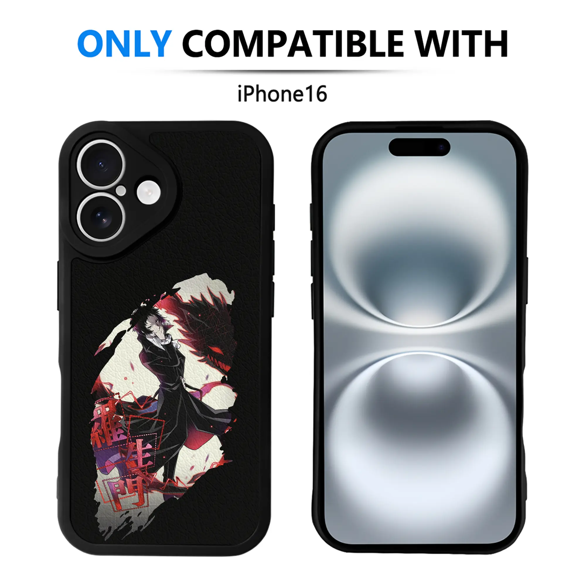 文豪ストレイドッグス グッズ,芥川龍之介 - IPhone 16シリーズ対応 ・ シリコンスマホケース ・ レザー調 ・ 高精度フィット ・ 耐衝撃 ・ ワイヤレス充電対応 ・ 精密カット