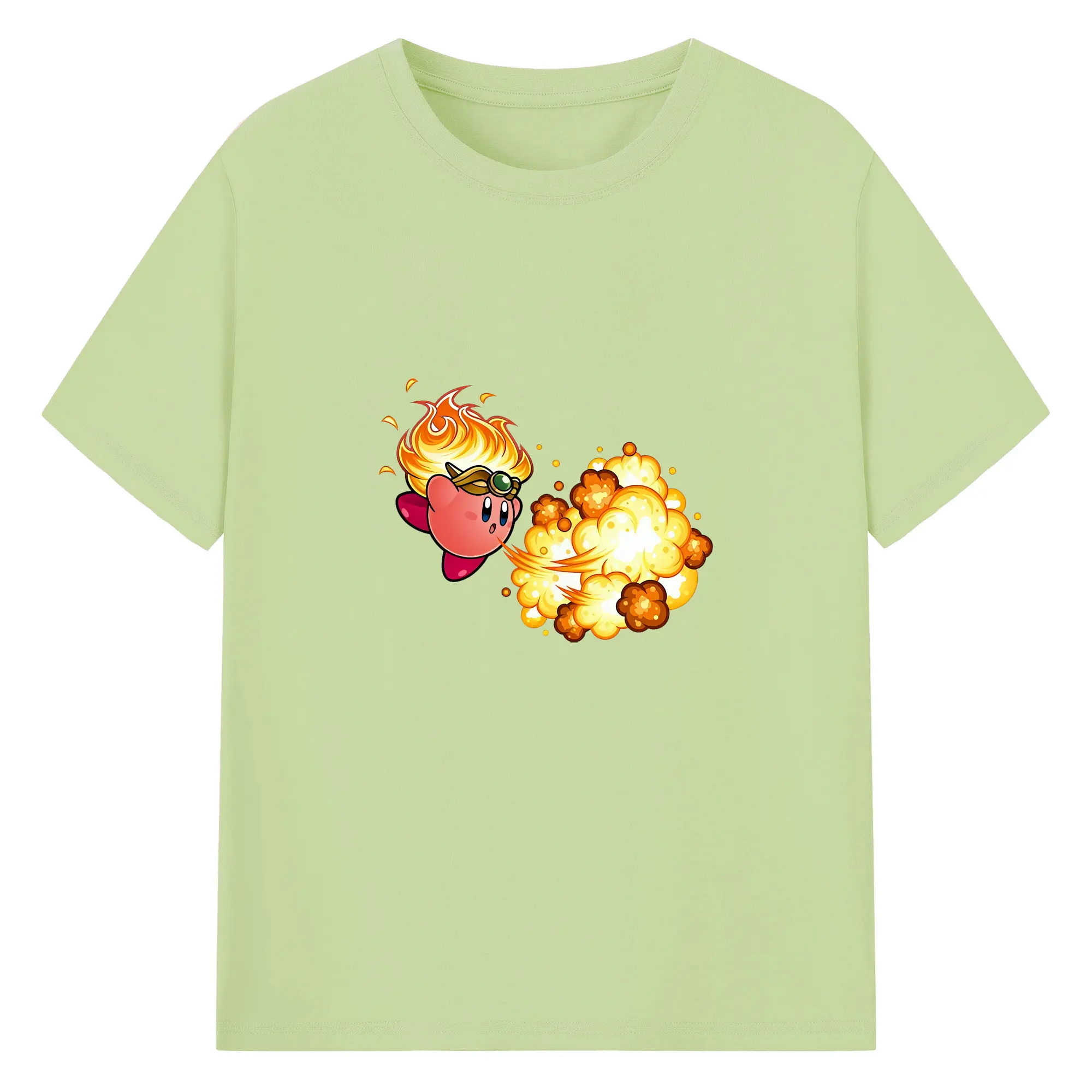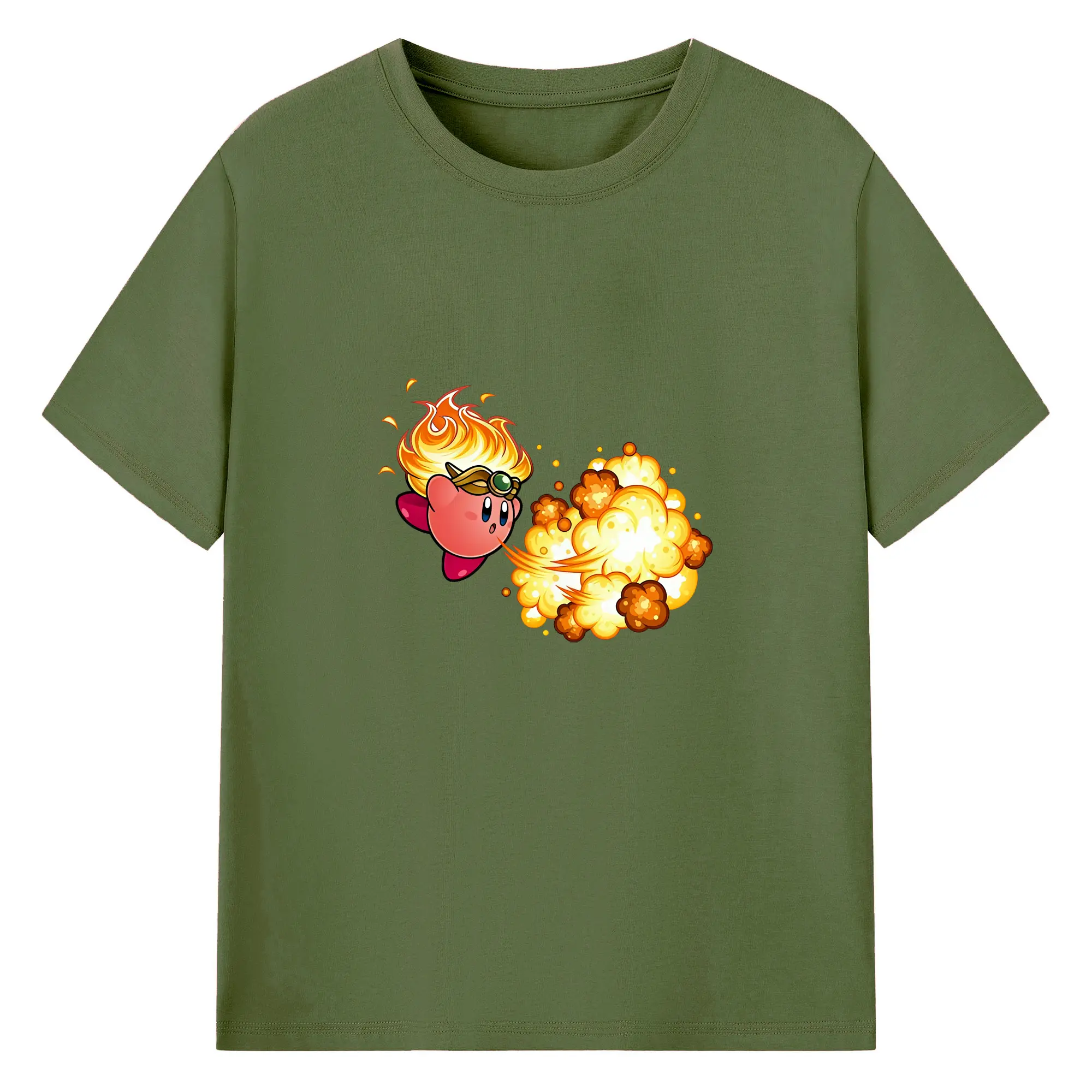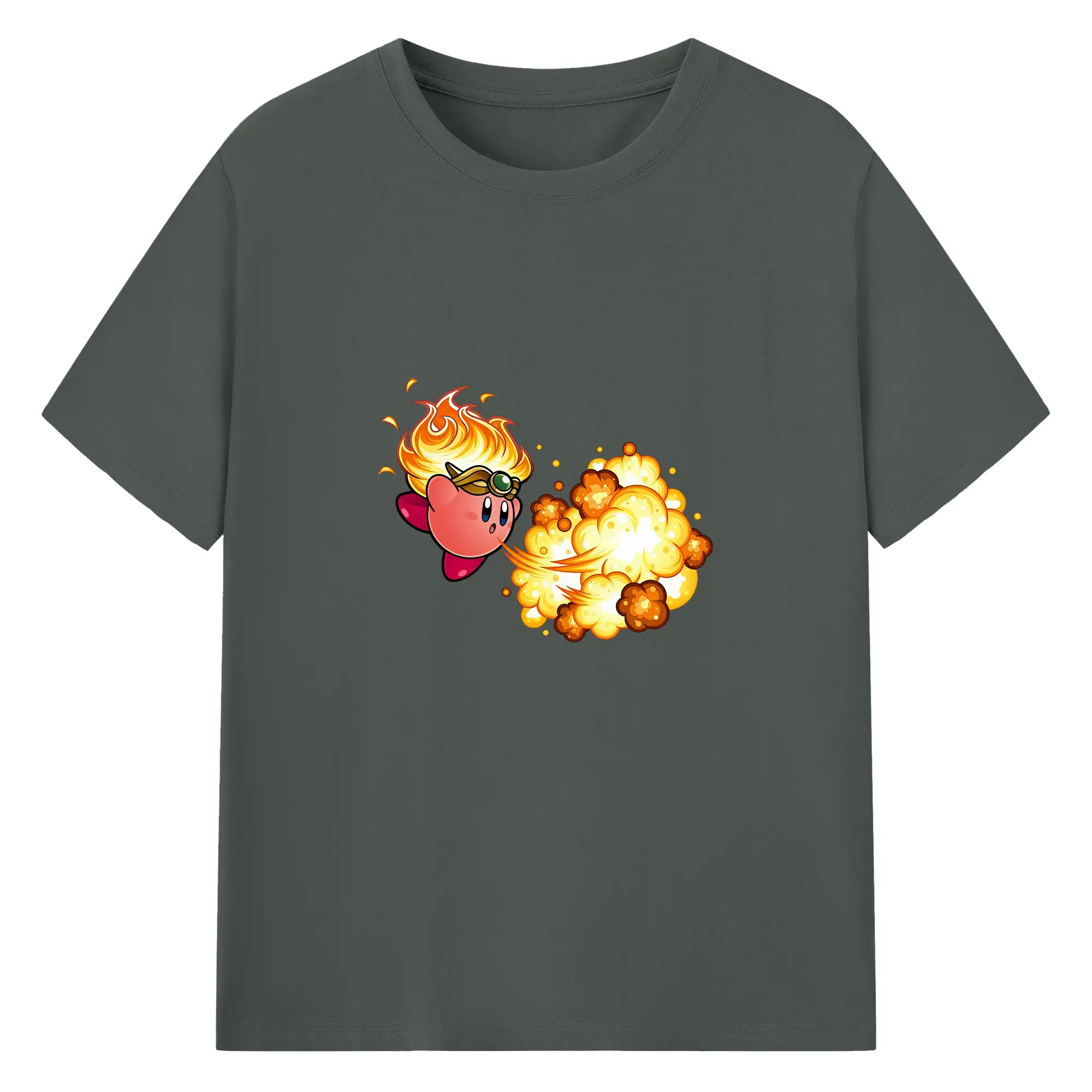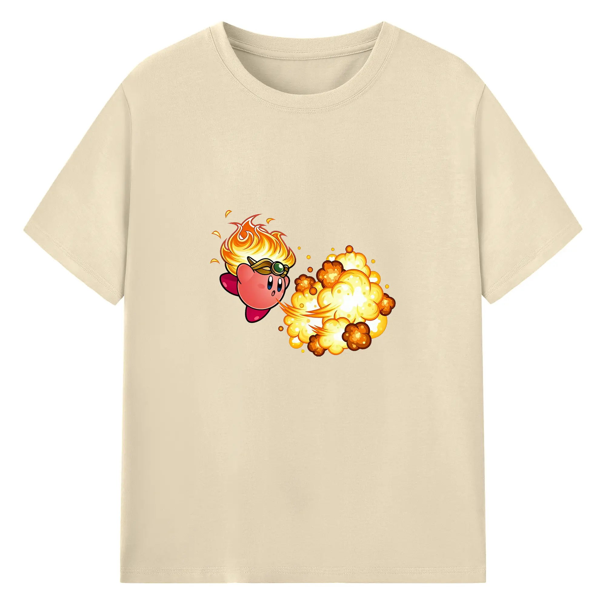 星のカービィ グッズ カービィ - 綿100% ヴィンテージ風 半袖Tシャツ ・ フロントプリント ・ 柔らか肌触り ・ 通気性 快適 ・ スポーツ カジュアル 外出用