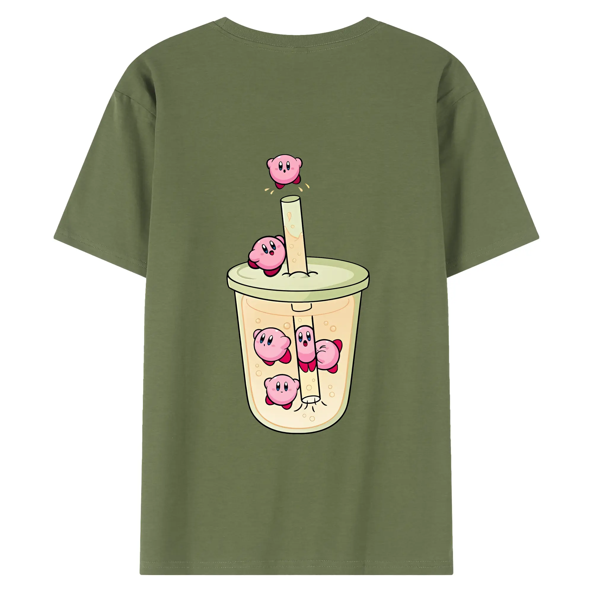 星のカービィ グッズ カービィ - 綿100% 半袖Tシャツ ・ フロントプリント ・ 快適 通気性 ・ 日常使い 散歩 スポーツ用