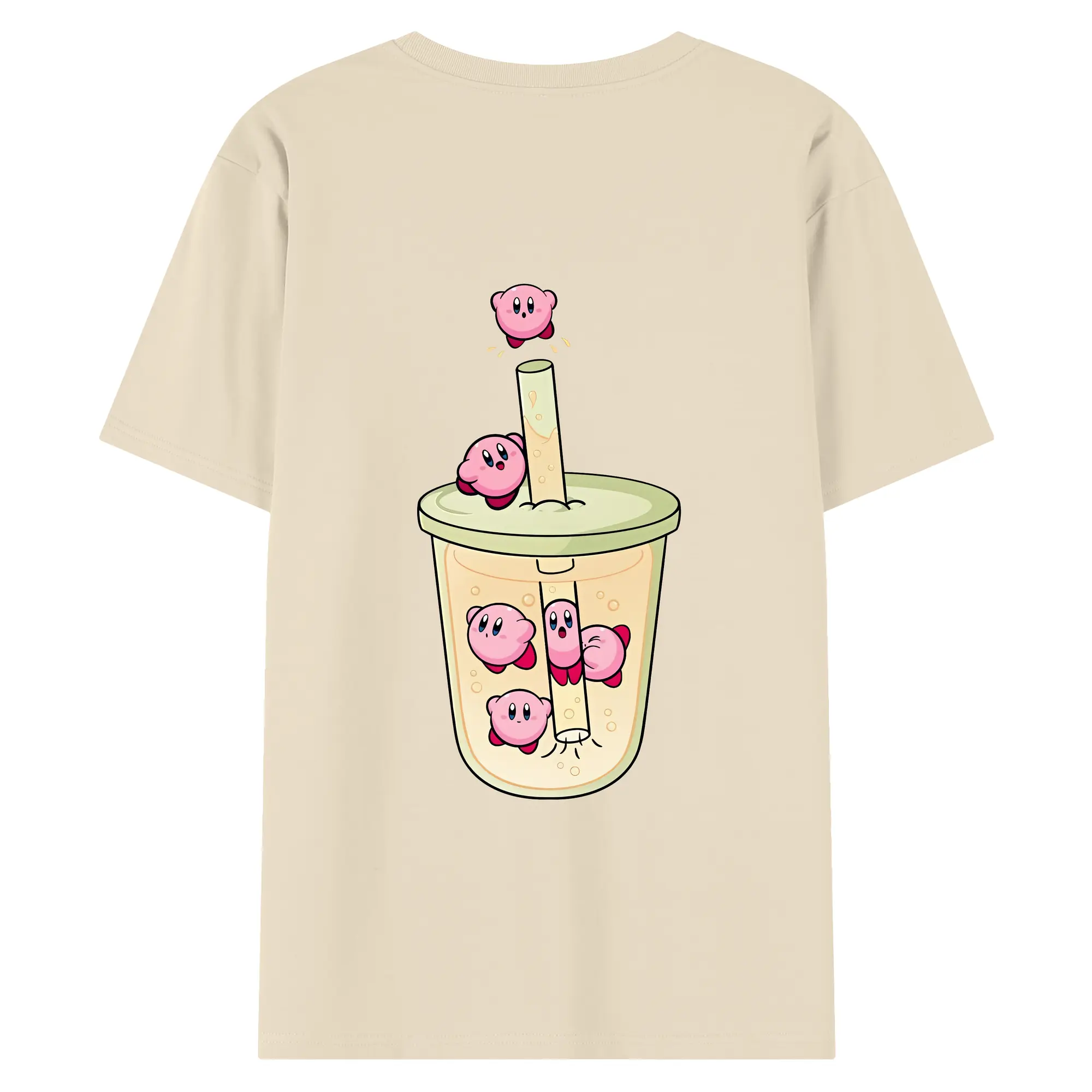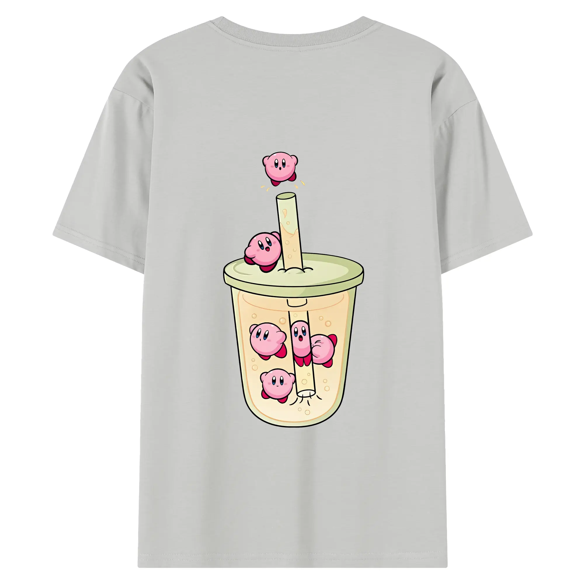 星のカービィ グッズ カービィ - 綿100% ヴィンテージ風 半袖Tシャツ ・ 背面プリント ・ 柔らか肌触り ・ 通気性 快適 ・ スポーツ カジュアル 外出用