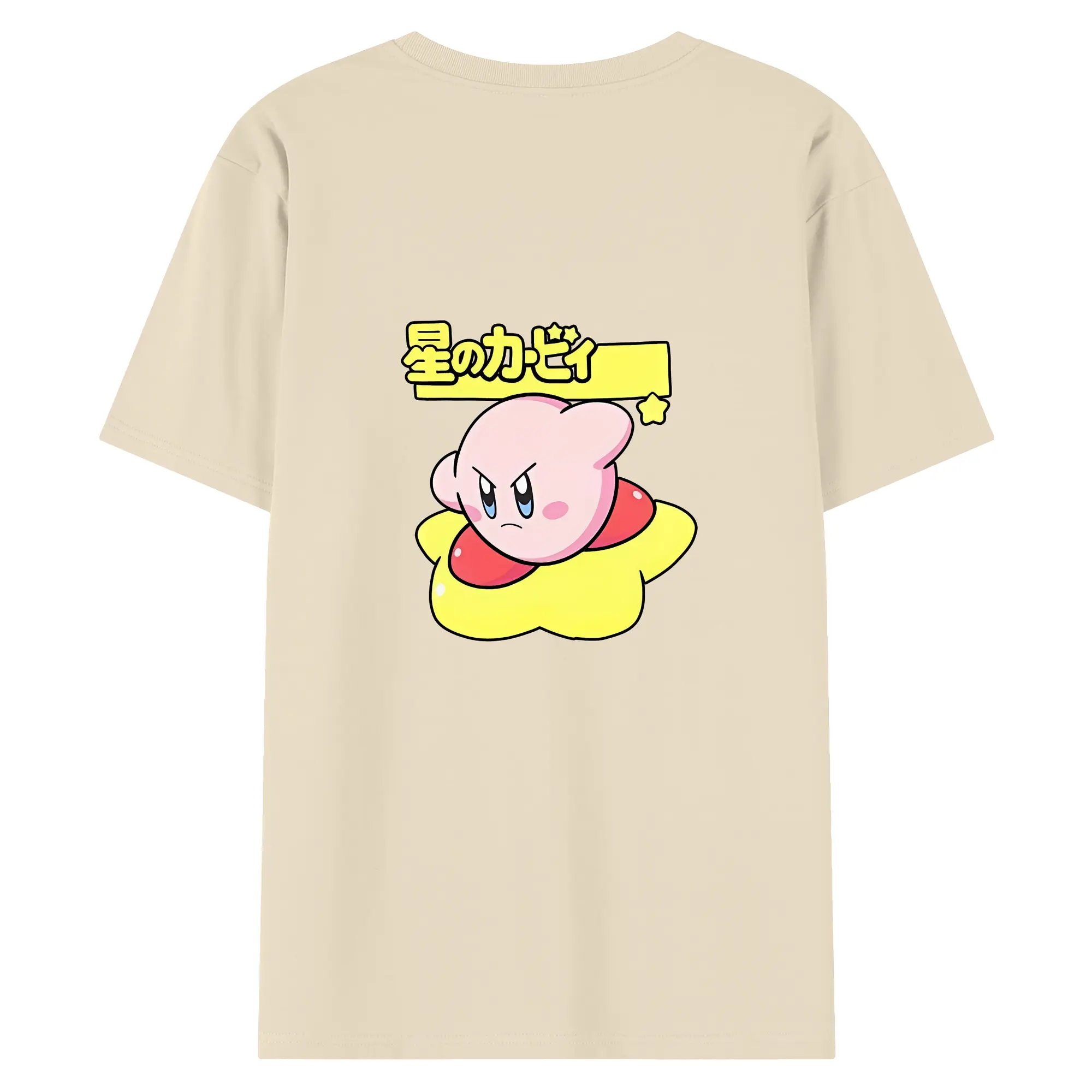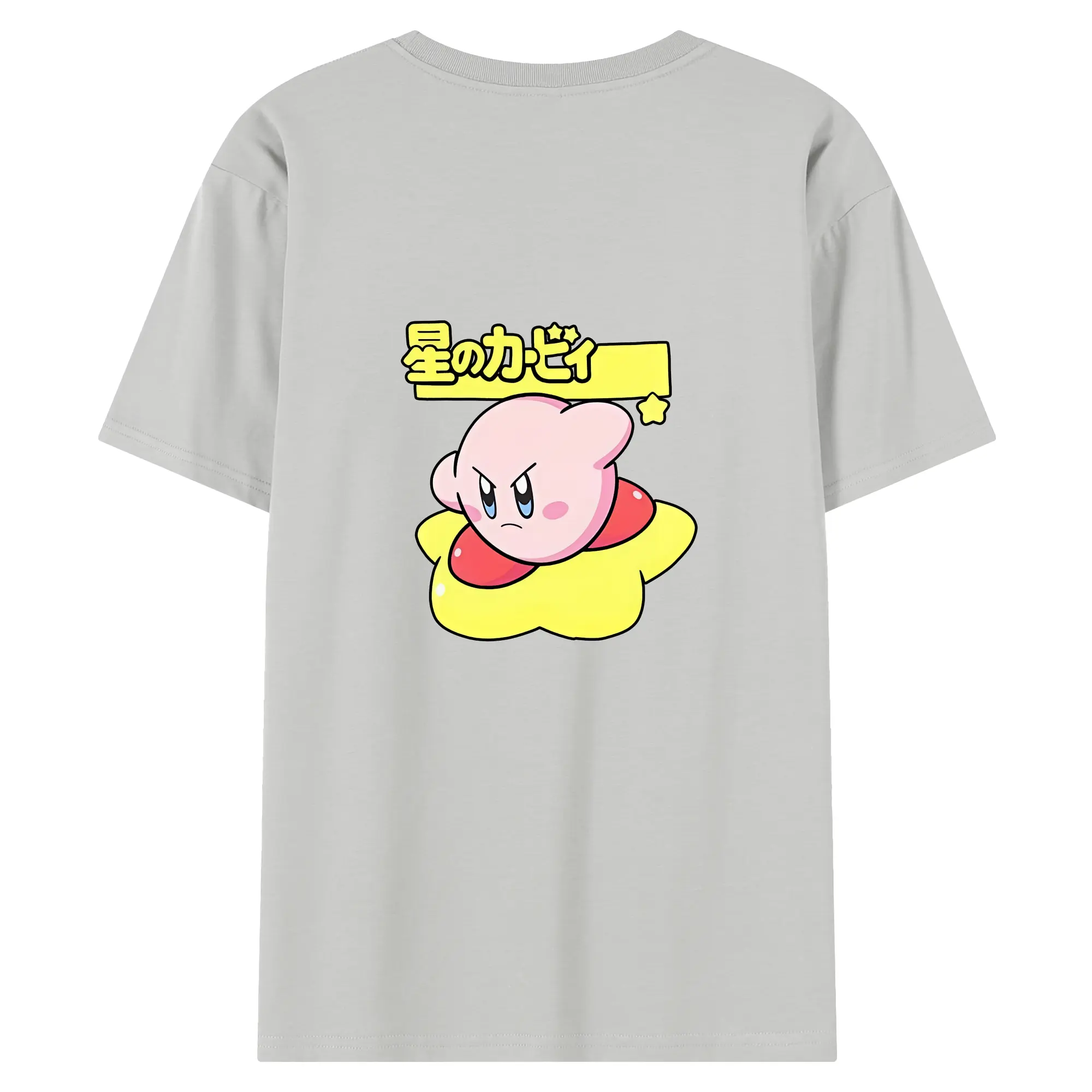 星のカービィ グッズ カービィ - 綿100% ヴィンテージ風 半袖Tシャツ ・ 背面プリント ・ 柔らか肌触り ・ 通気性 快適 ・ スポーツ カジュアル 外出用
