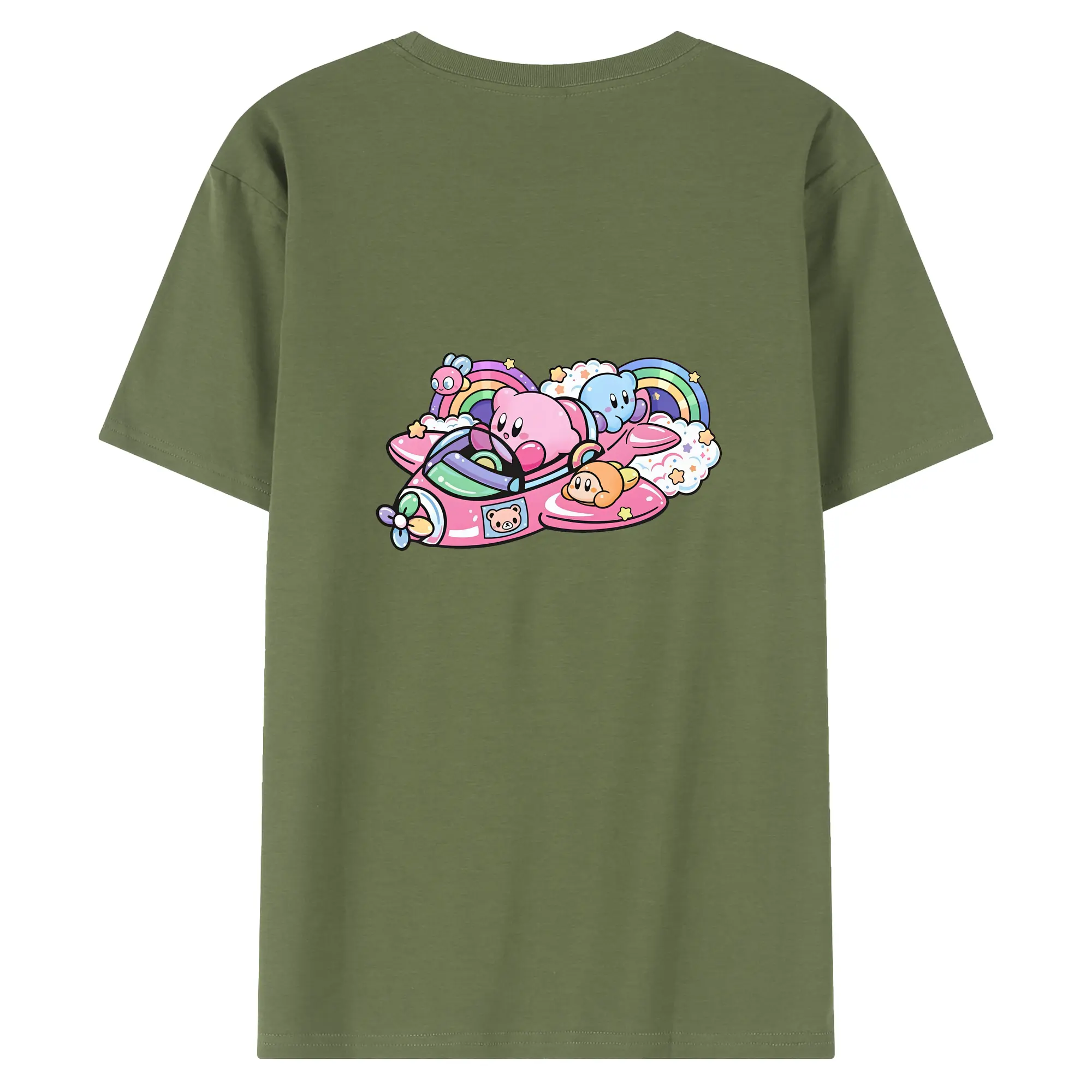 星のカービィ グッズ カービィ - 綿100% 半袖Tシャツ ・ フロントプリント ・ 快適 通気性 ・ 日常使い 散歩 スポーツ用