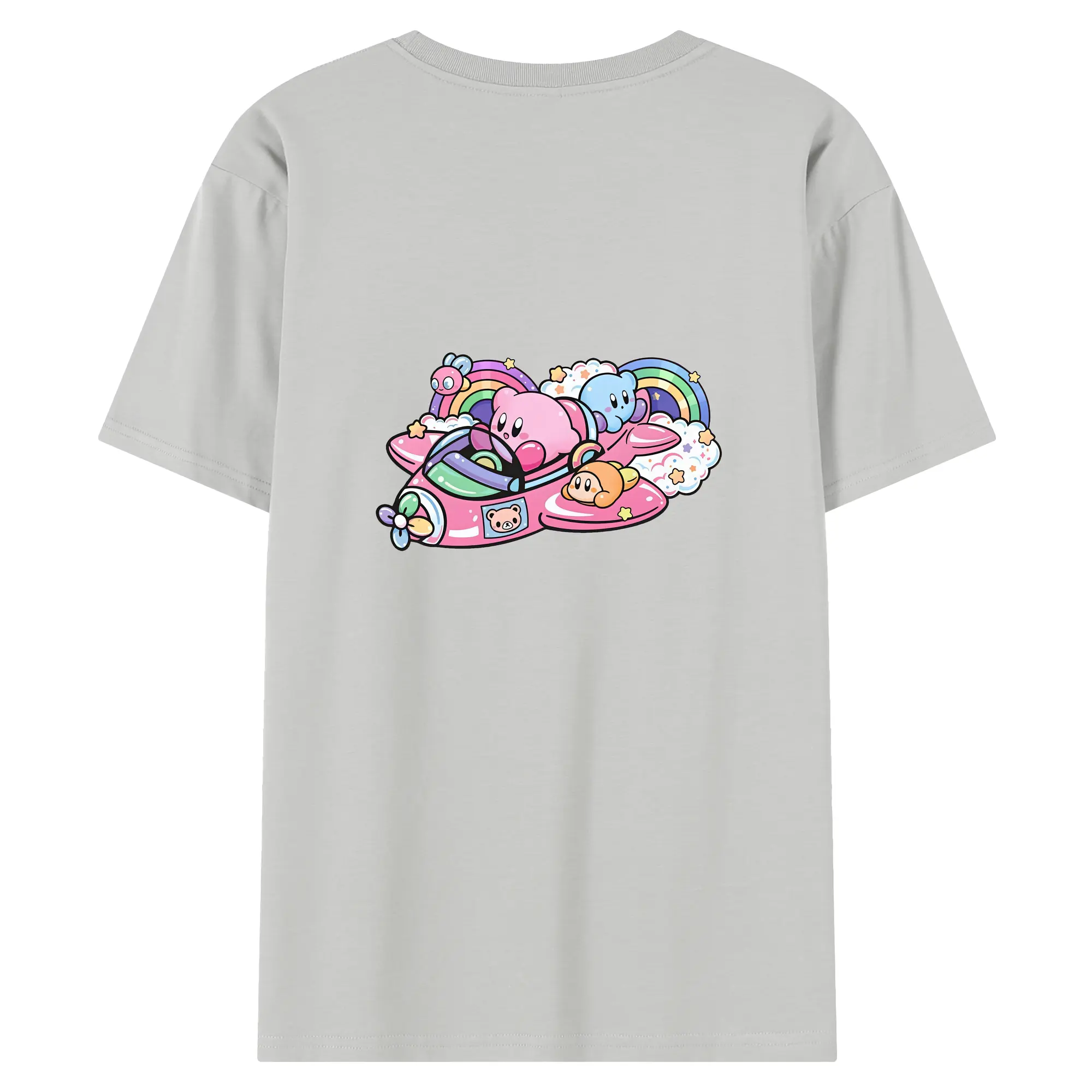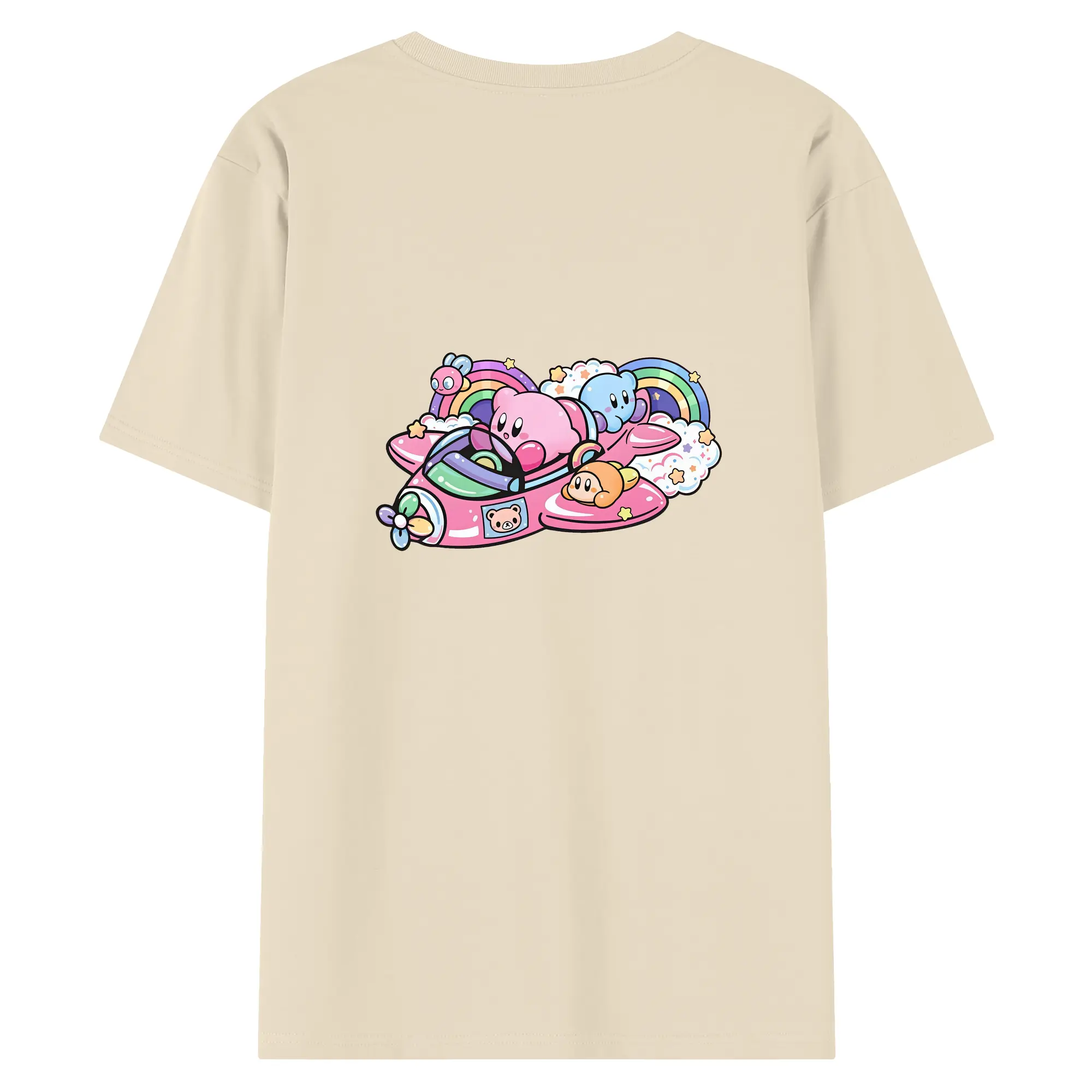 星のカービィ グッズ カービィ - 綿100% ヴィンテージ風 半袖Tシャツ ・ 背面プリント ・ 柔らか肌触り ・ 通気性 快適 ・ スポーツ カジュアル 外出用