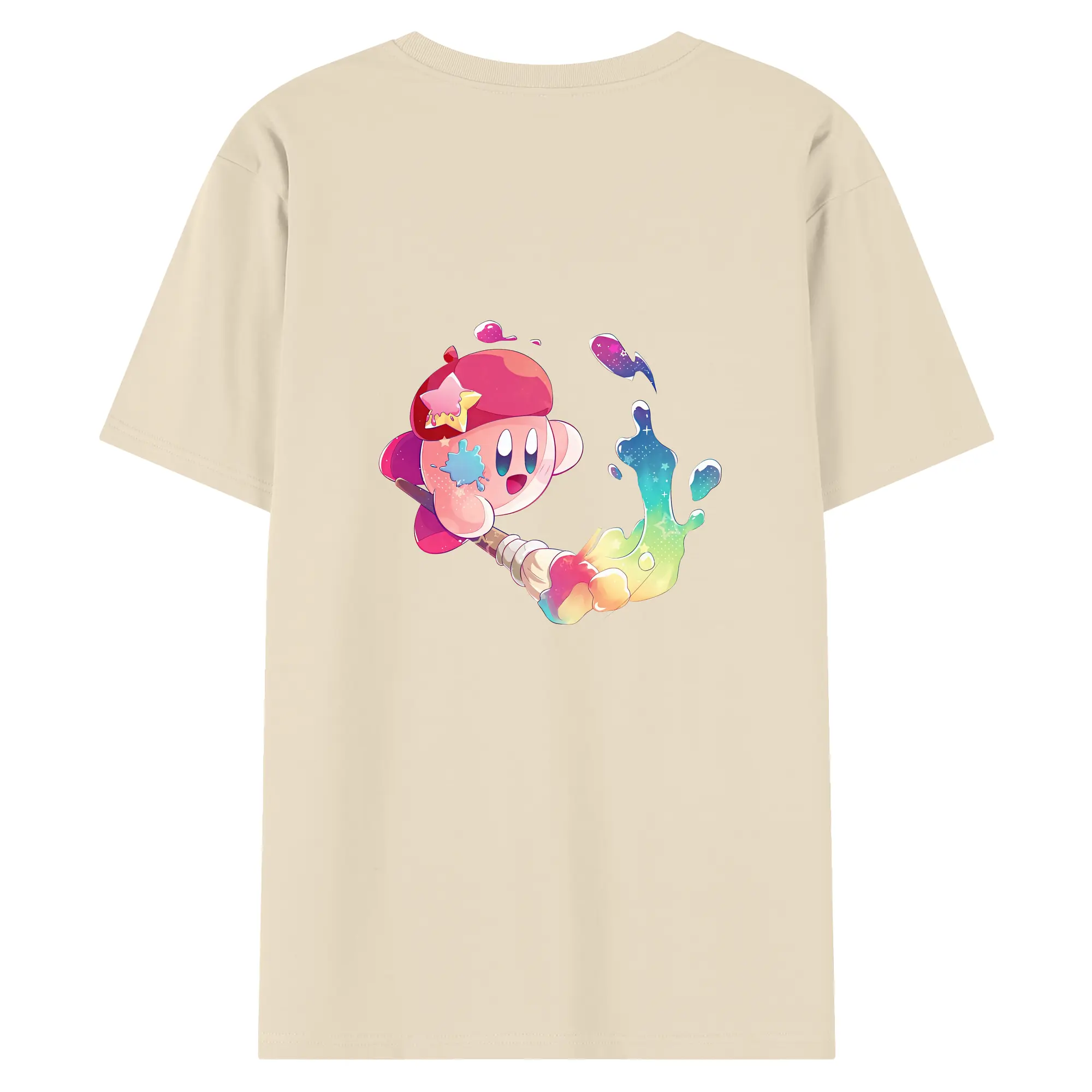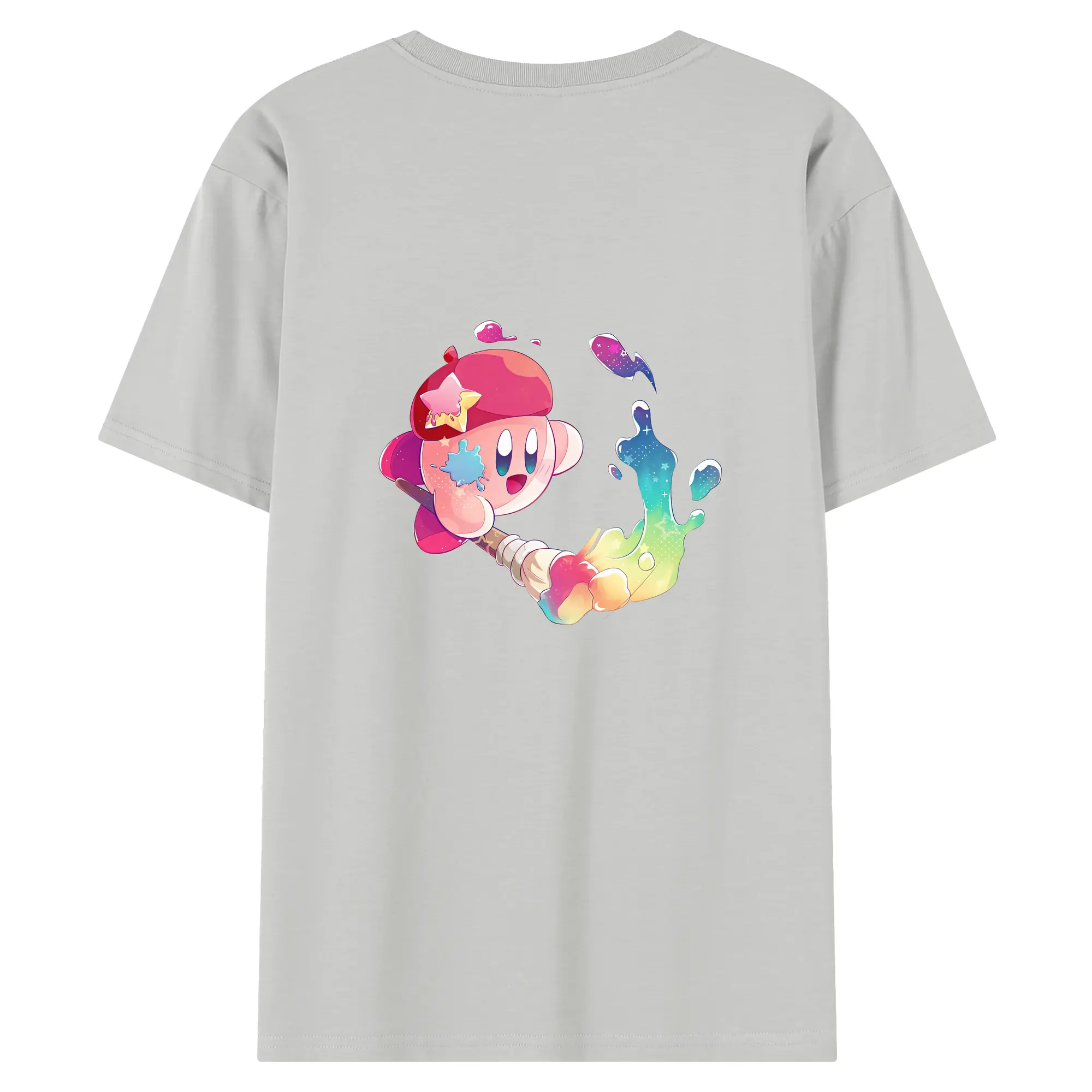 星のカービィ グッズ カービィ - 綿100% ヴィンテージ風 半袖Tシャツ ・ 背面プリント ・ 柔らか肌触り ・ 通気性 快適 ・ スポーツ カジュアル 外出用