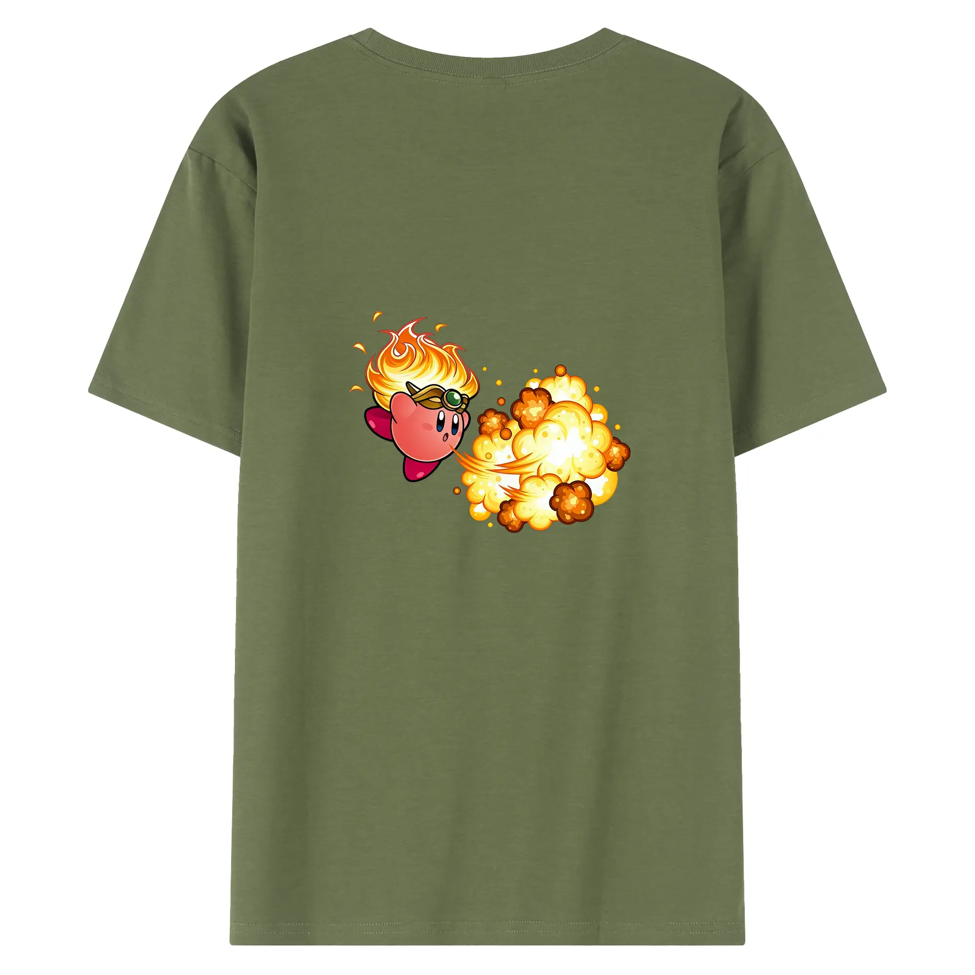 星のカービィ グッズ カービィ - 綿100% 半袖Tシャツ ・ フロントプリント ・ 快適 通気性 ・ 日常使い 散歩 スポーツ用