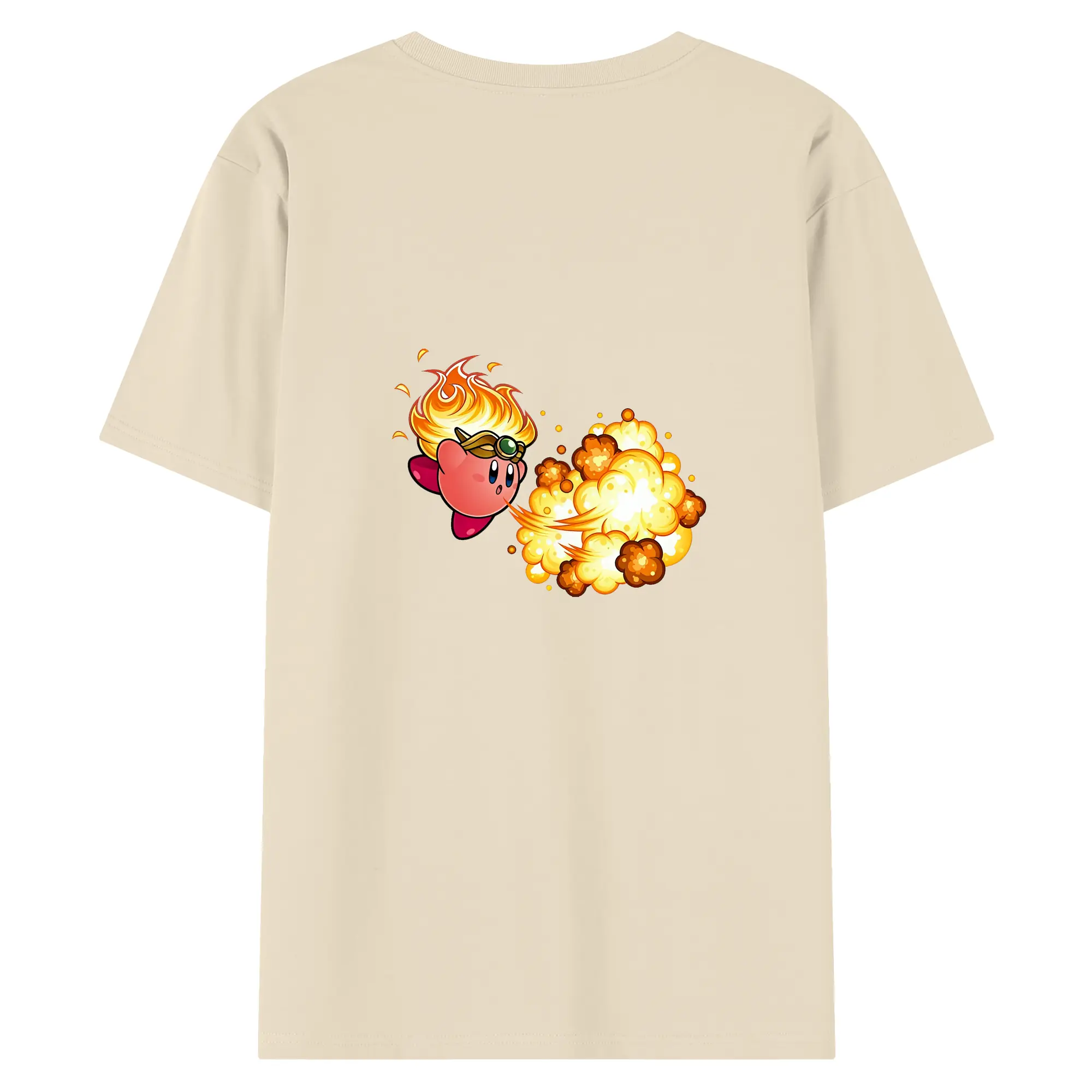 星のカービィ グッズ カービィ - 綿100% ヴィンテージ風 半袖Tシャツ ・ 背面プリント ・ 柔らか肌触り ・ 通気性 快適 ・ スポーツ カジュアル 外出用