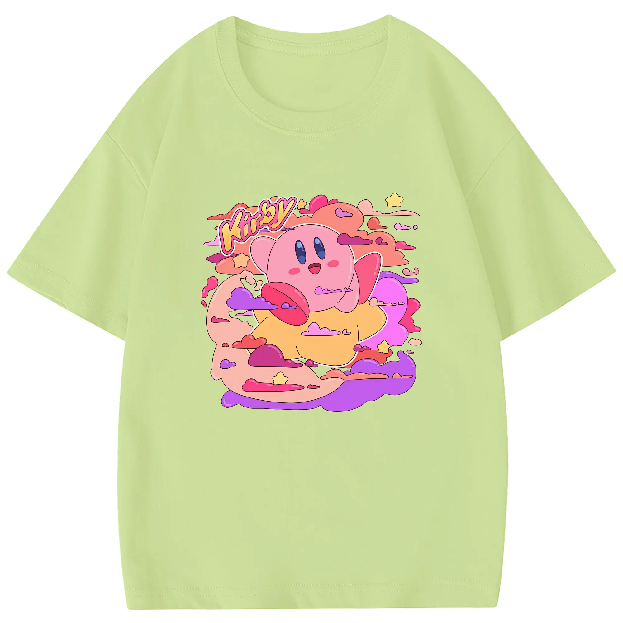星のカービィ グッズ カービィ - 綿100% キッズTシャツ ・ フロントプリント ・ 快適 通気性 ・ スポーツ カジュアル 散歩用