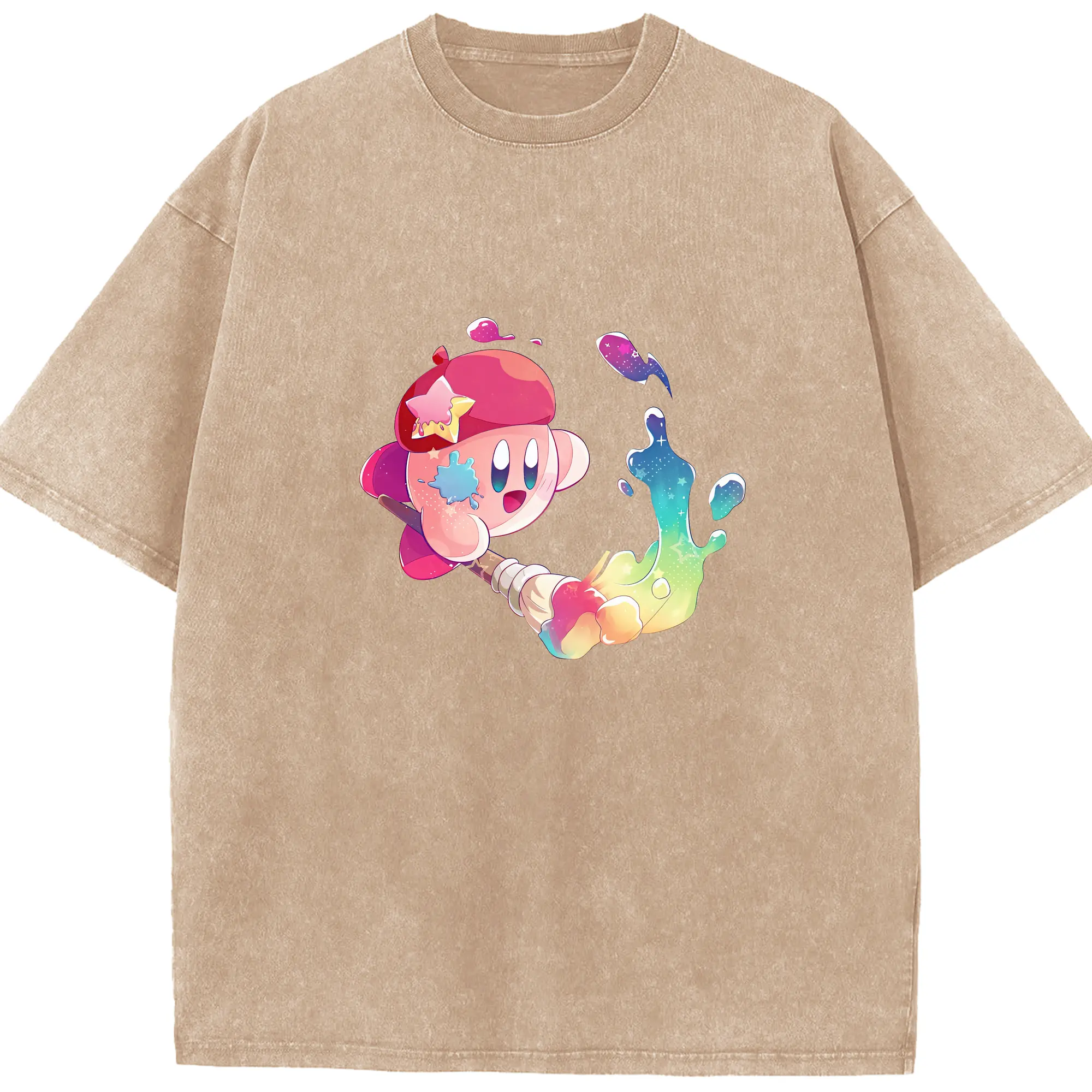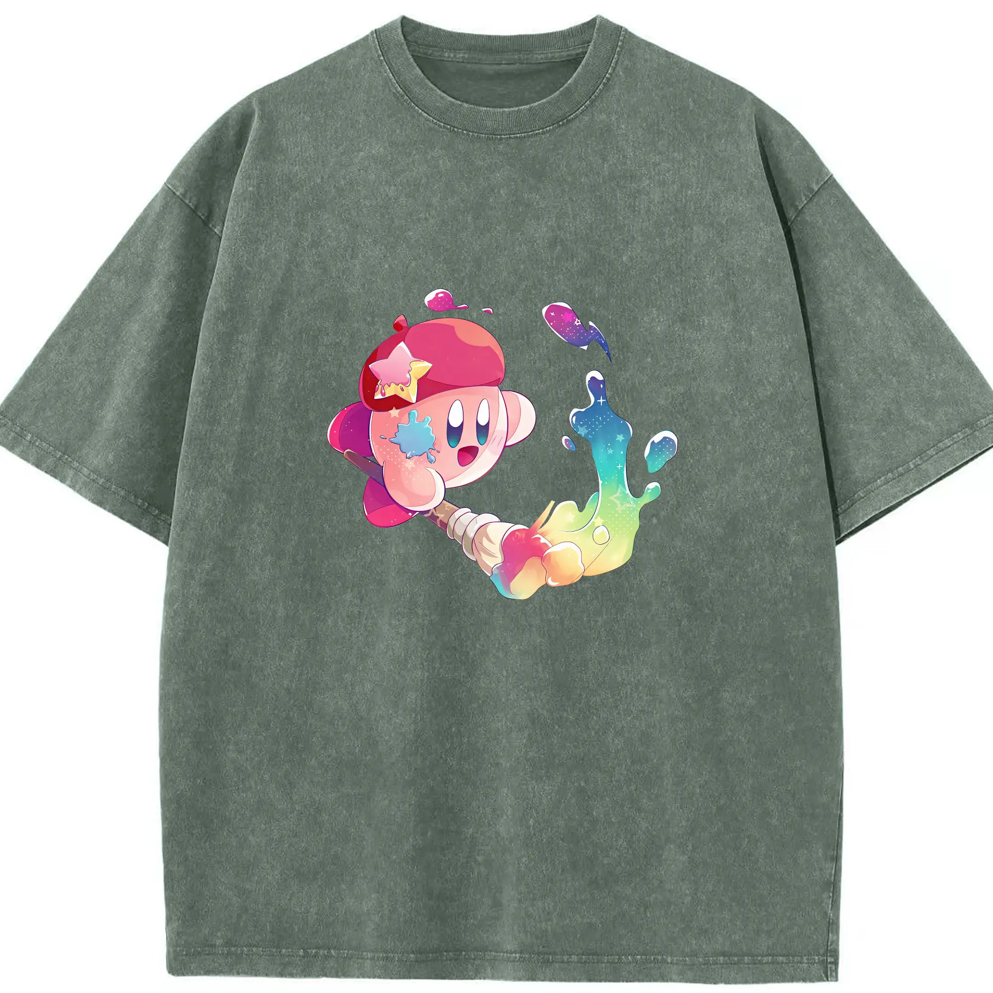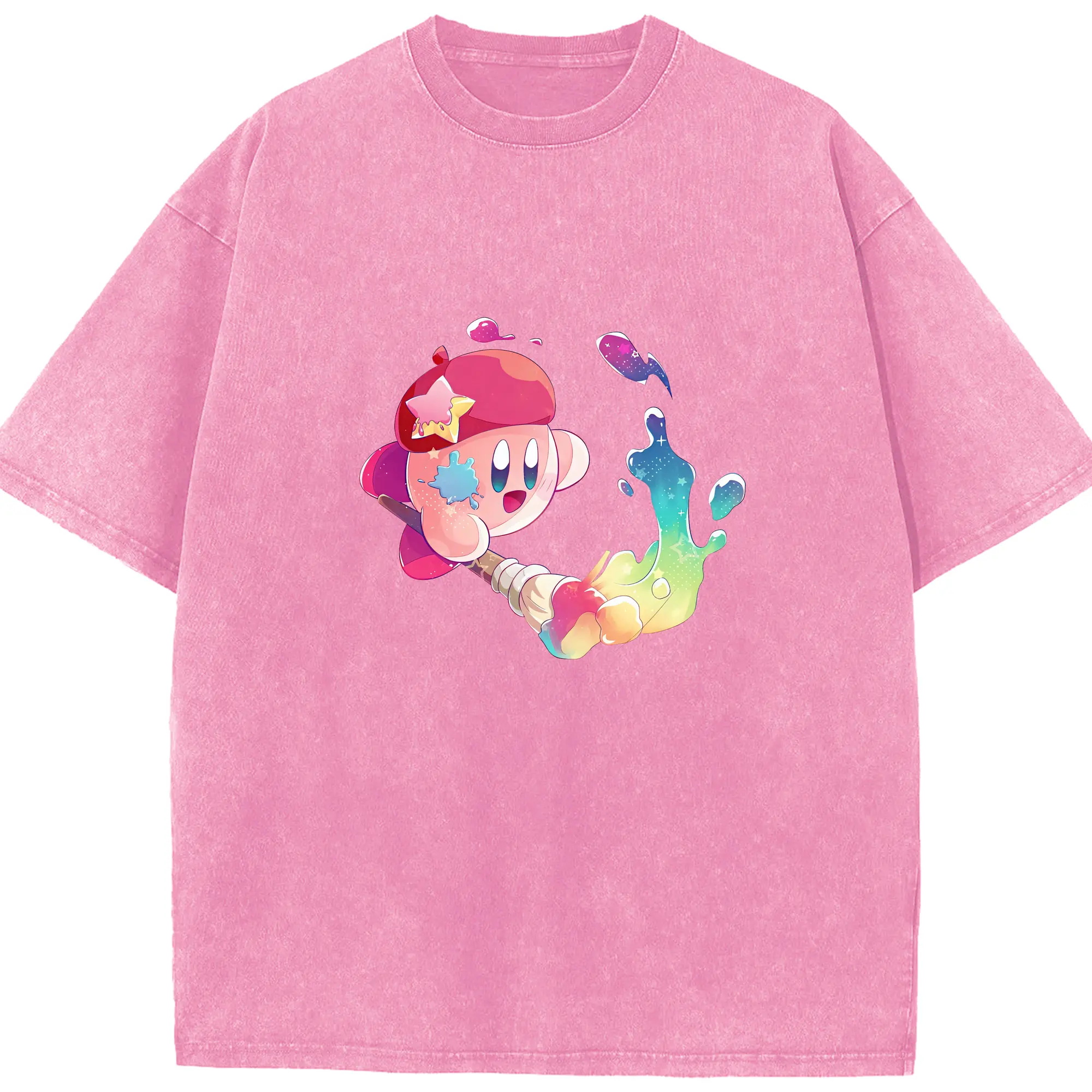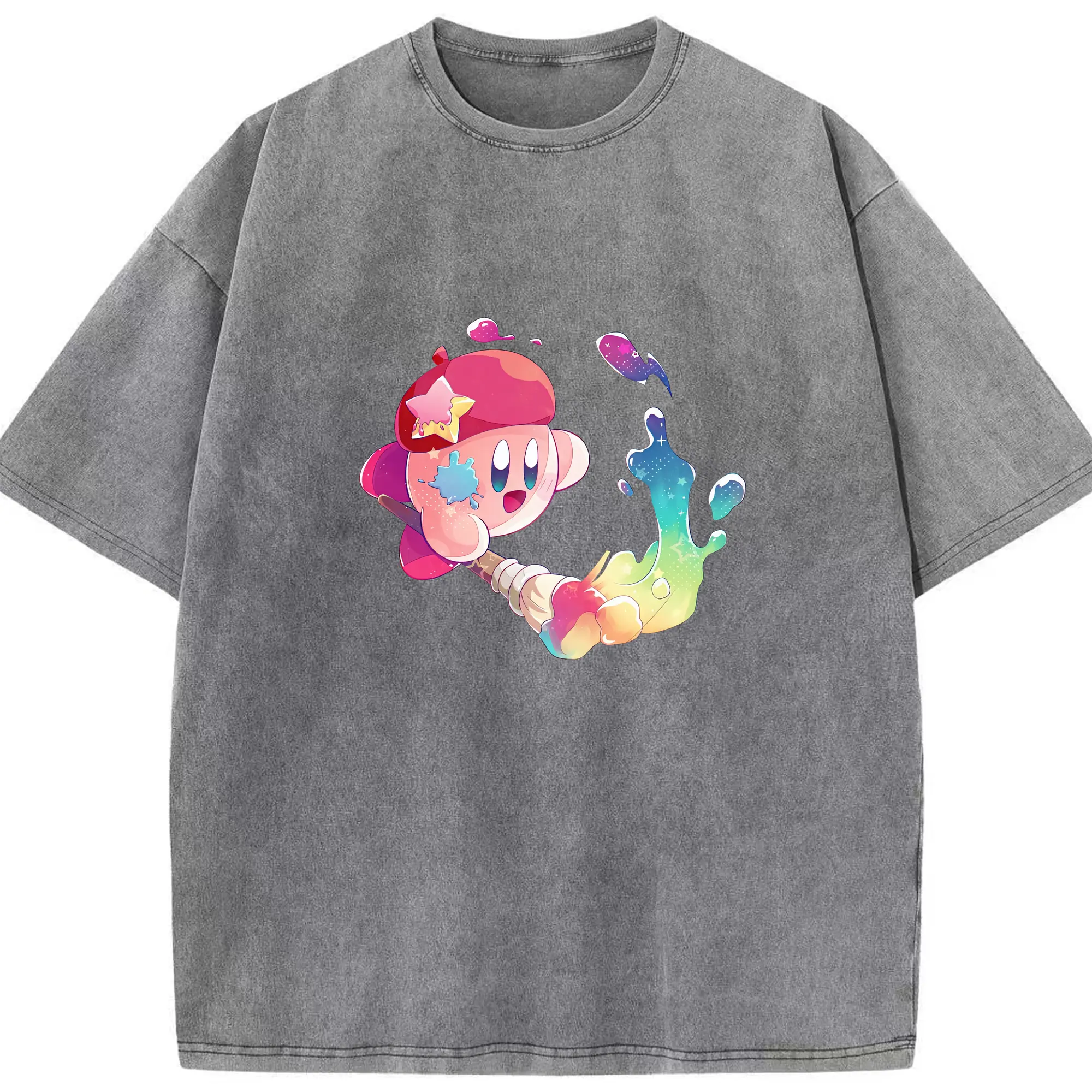 星のカービィ グッズ カービィ - 綿100% ヴィンテージ風 半袖Tシャツ ・ 背面プリント ・ 柔らか肌触り ・ 通気性 快適 ・ スポーツ カジュアル 外出用