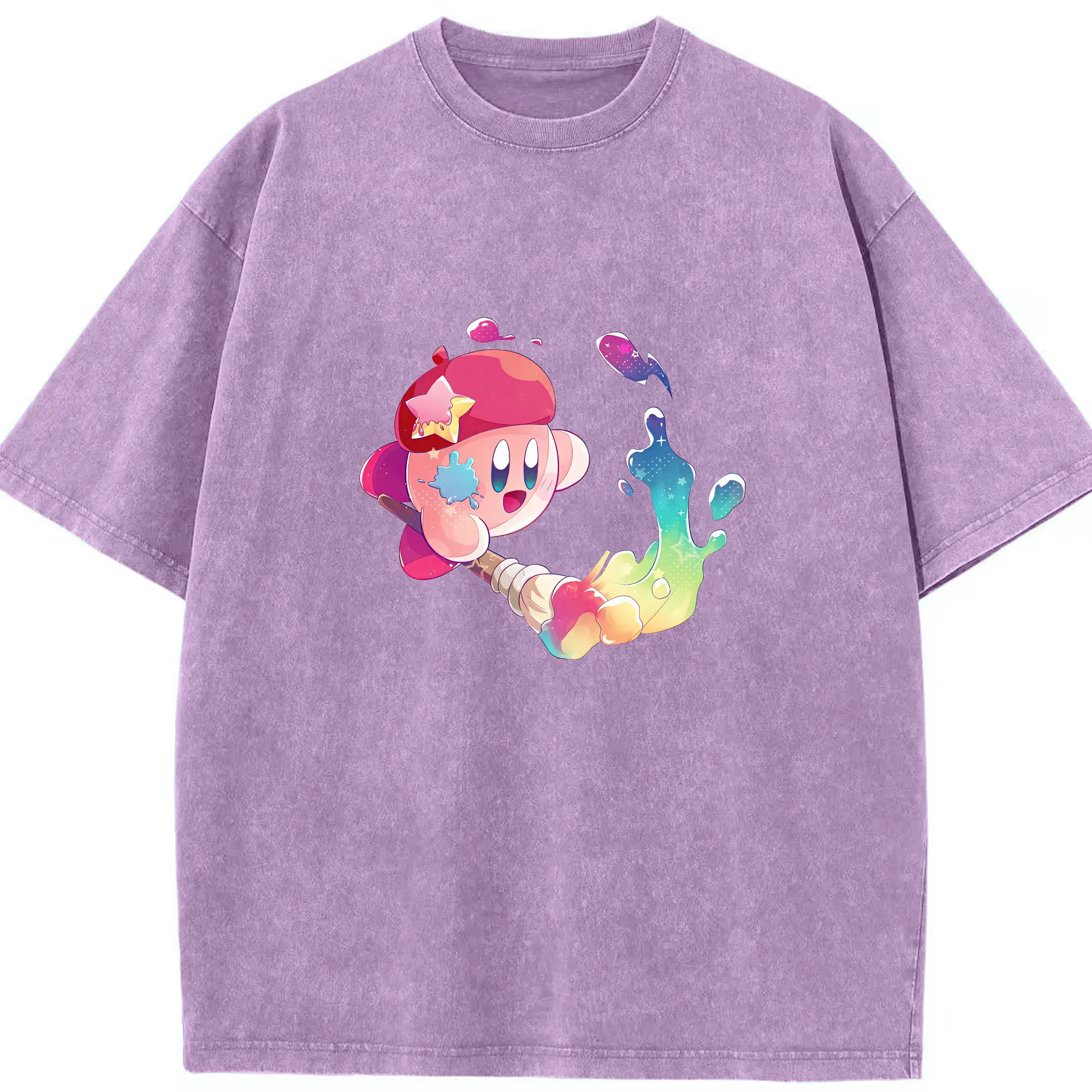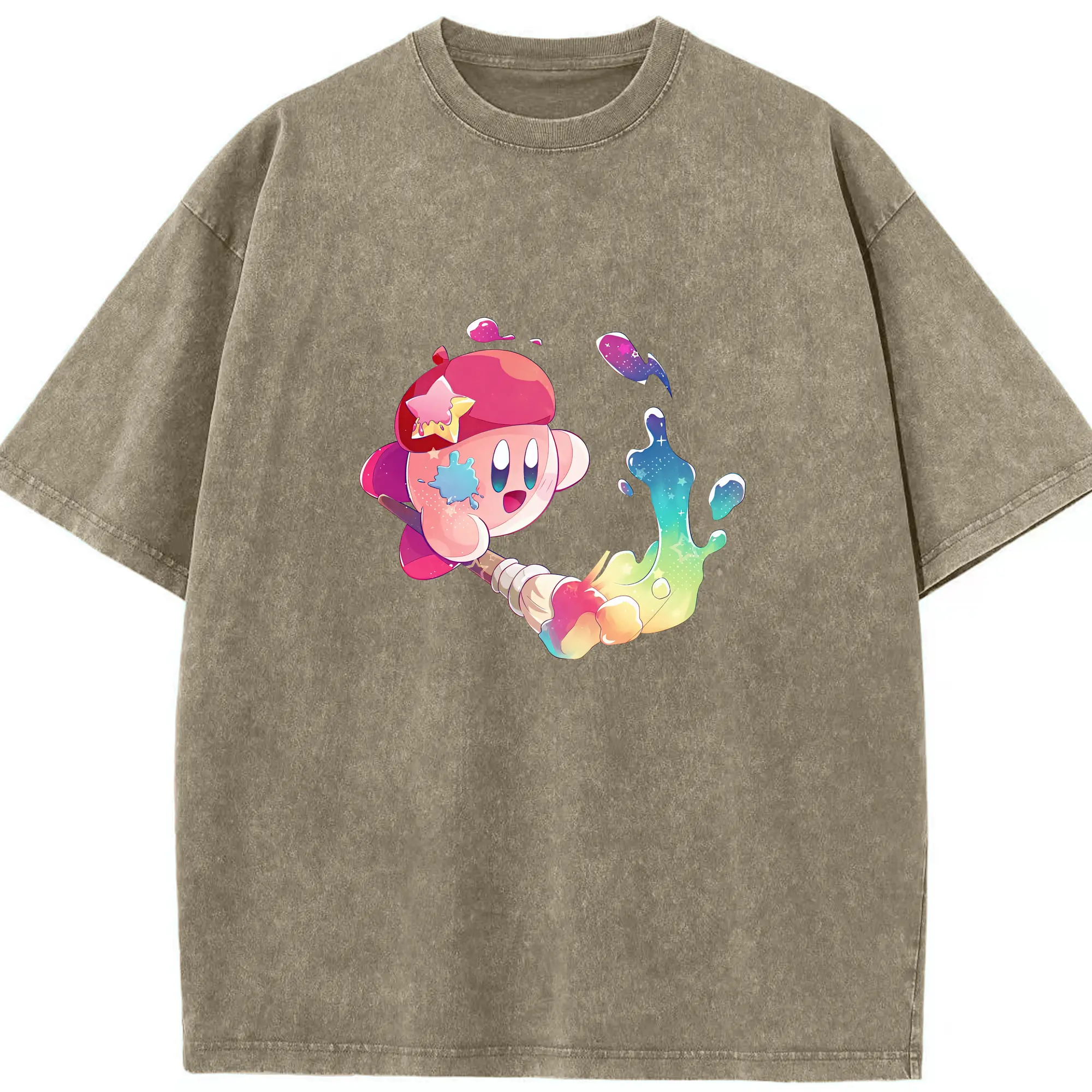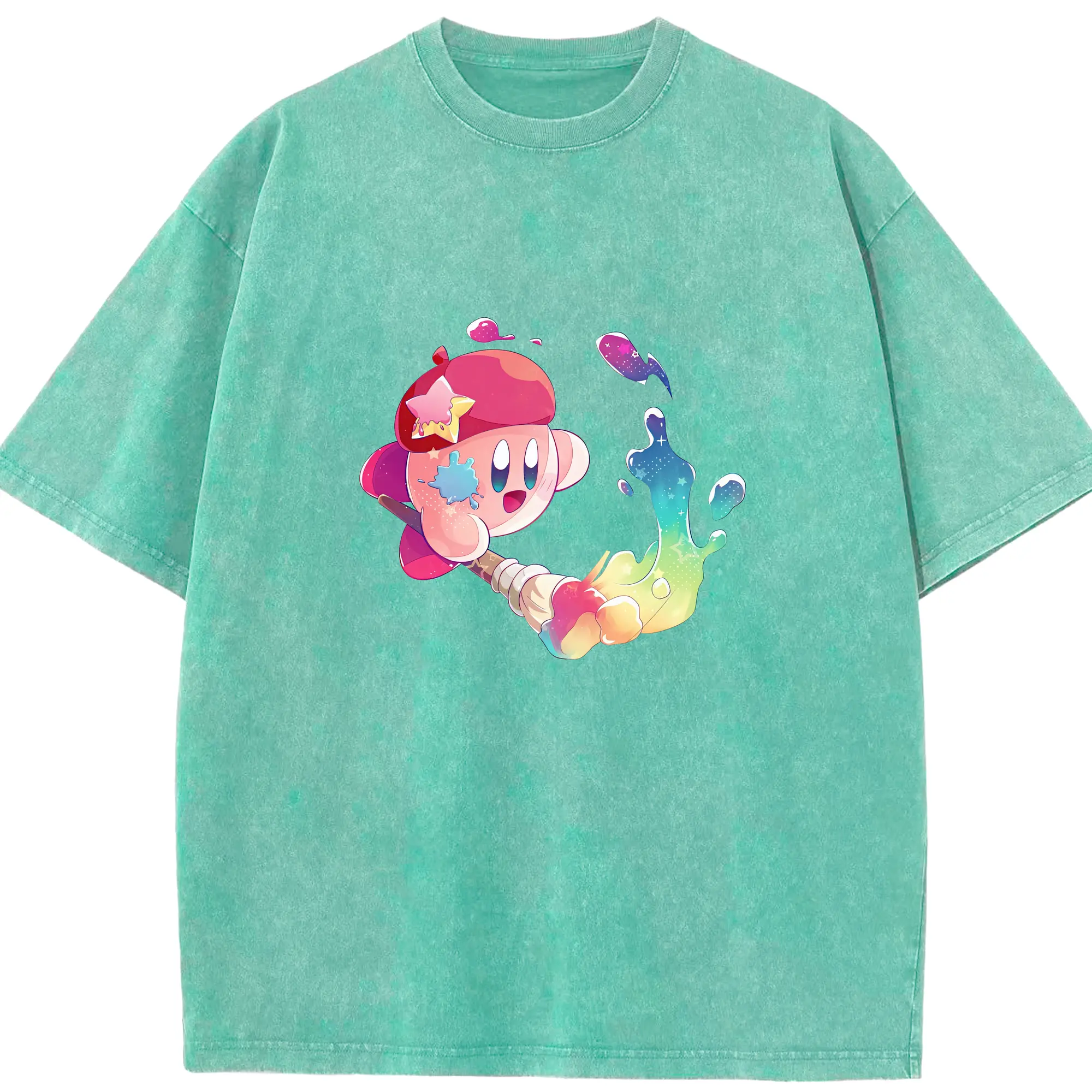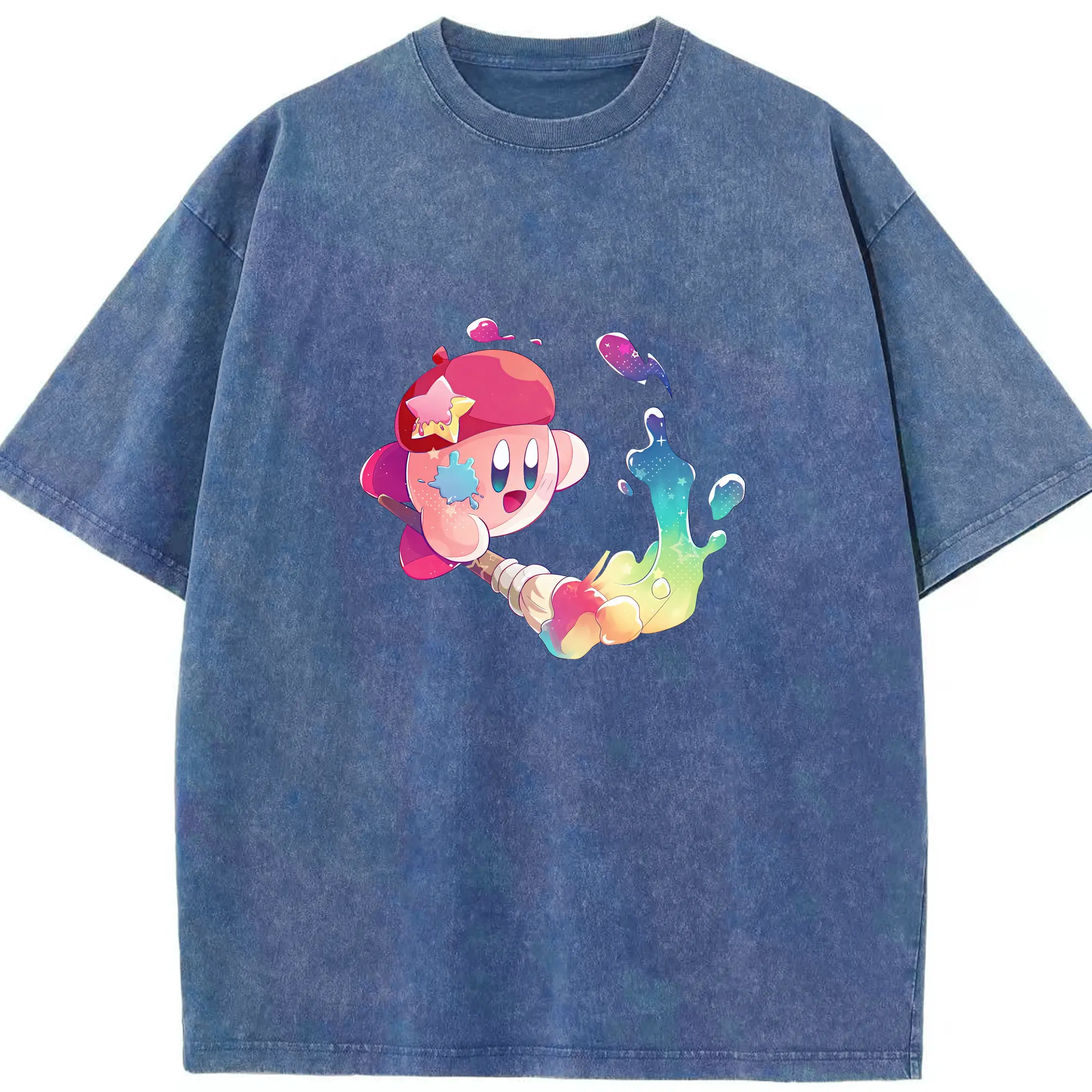 星のカービィ グッズ カービィ - 綿100% ヴィンテージ風 半袖Tシャツ ・ 背面プリント ・ 柔らか肌触り ・ 通気性 快適 ・ スポーツ カジュアル 外出用
