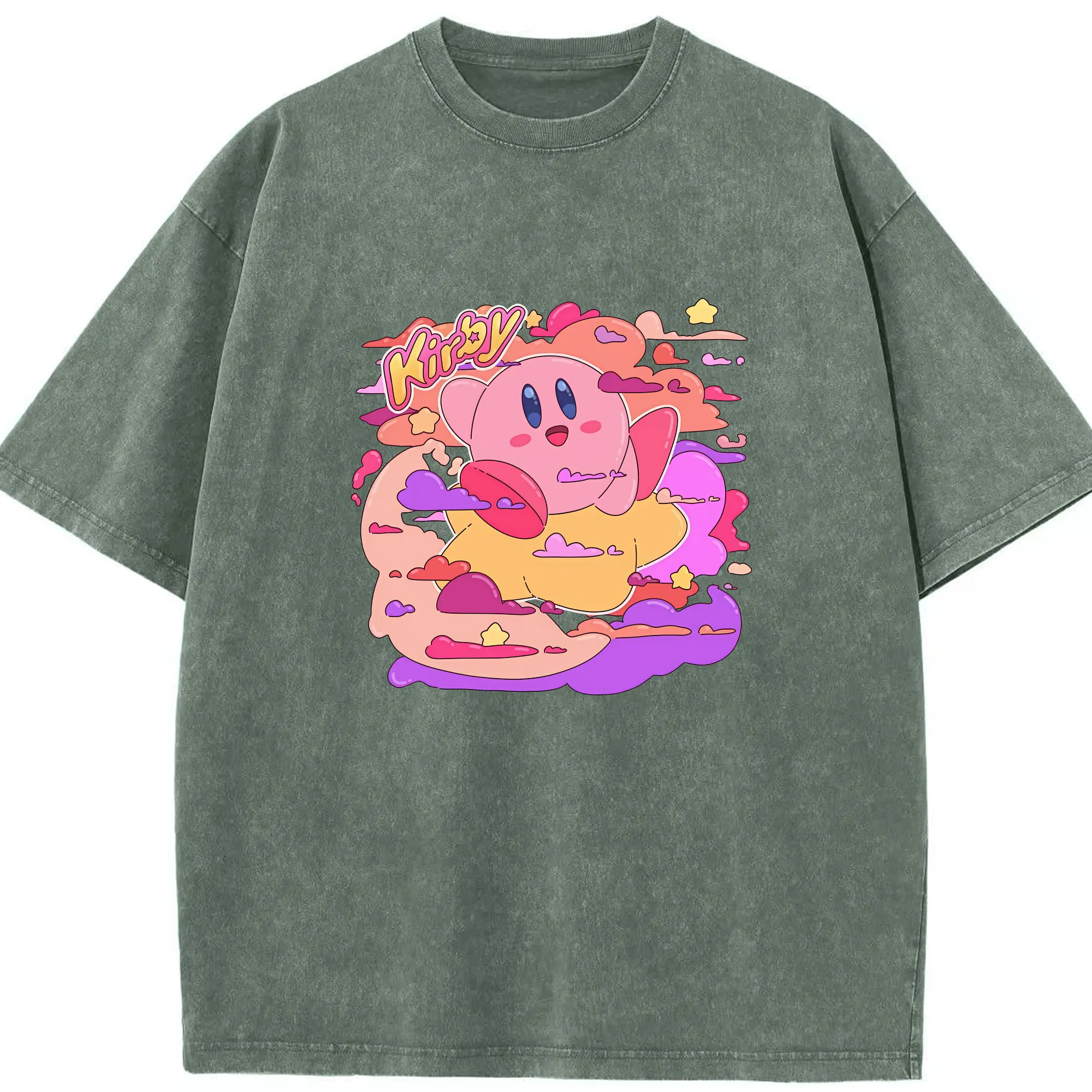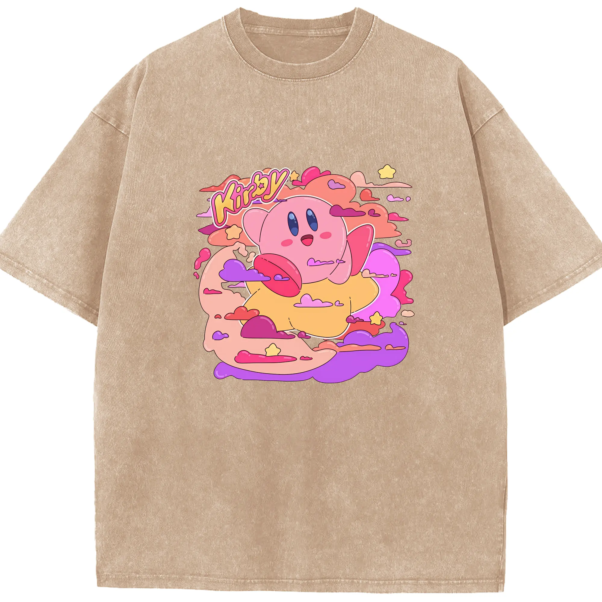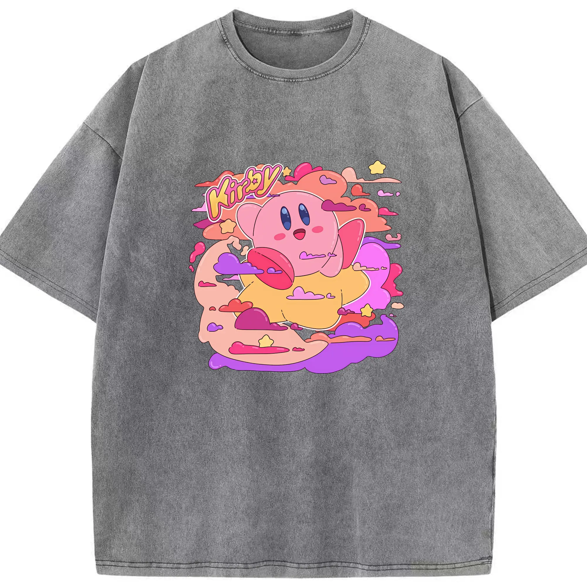 星のカービィ グッズ カービィ - 綿100% ヴィンテージ風 半袖Tシャツ ・ 背面プリント ・ 柔らか肌触り ・ 通気性 快適 ・ スポーツ カジュアル 外出用