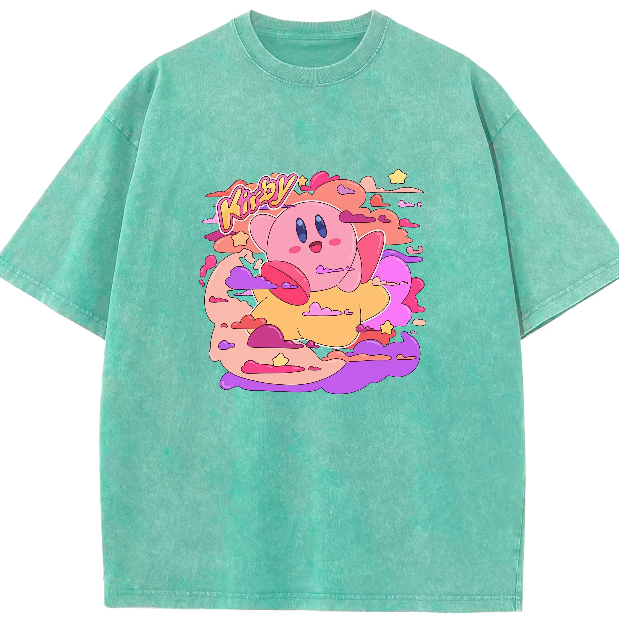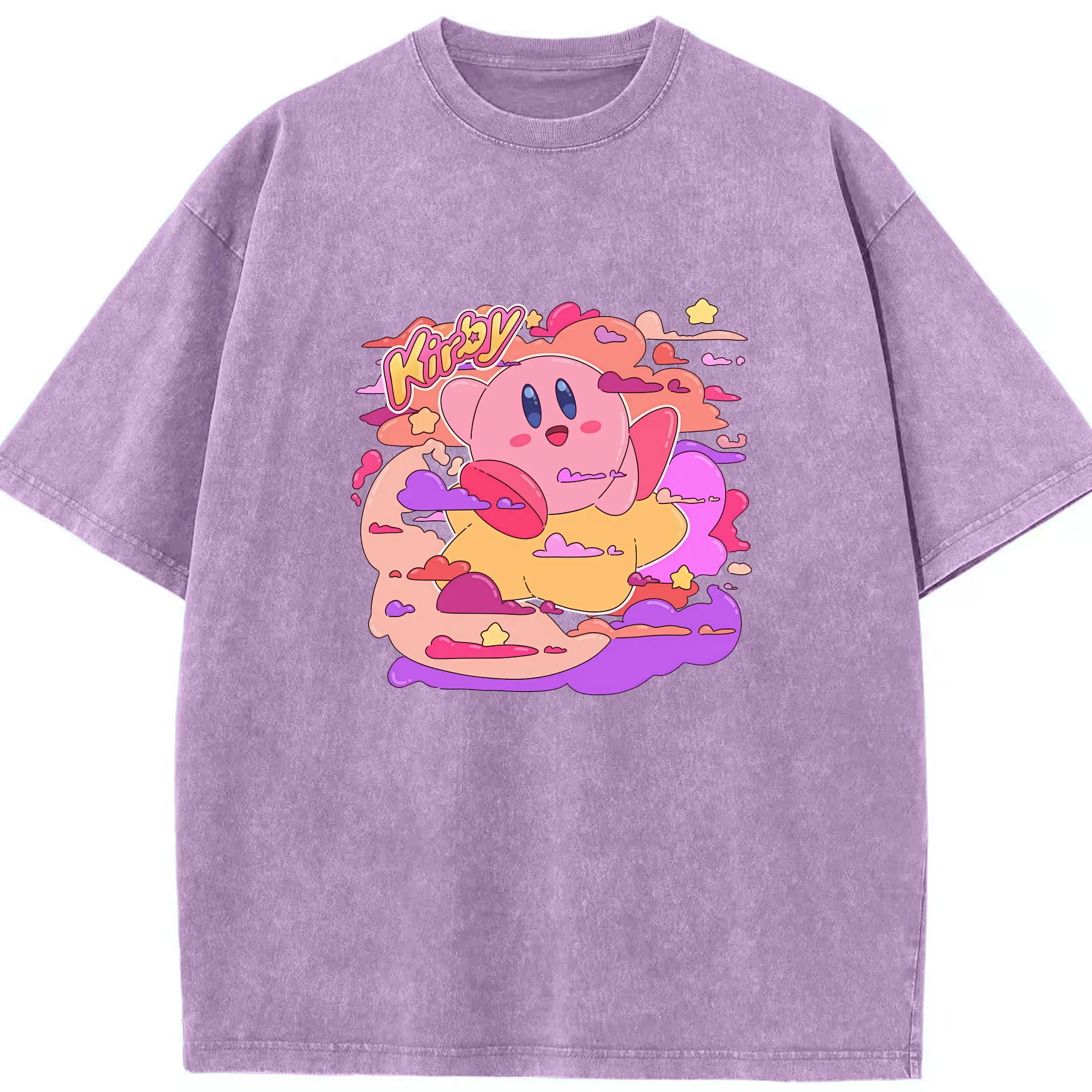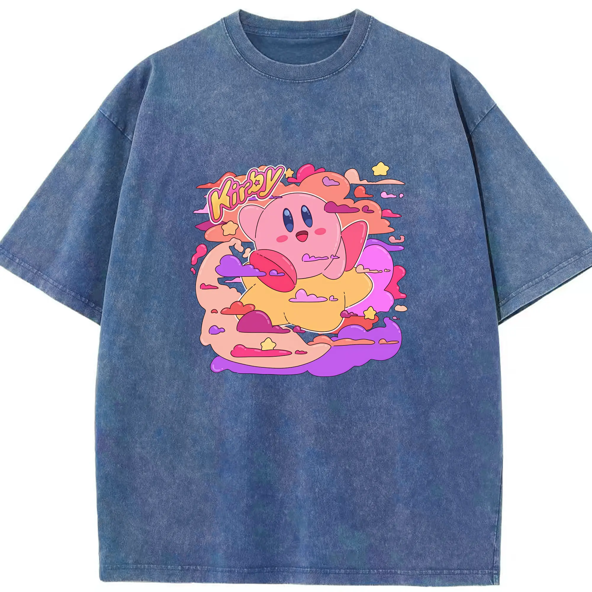 星のカービィ グッズ カービィ - 綿100% ヴィンテージ風 半袖Tシャツ ・ 背面プリント ・ 柔らか肌触り ・ 通気性 快適 ・ スポーツ カジュアル 外出用