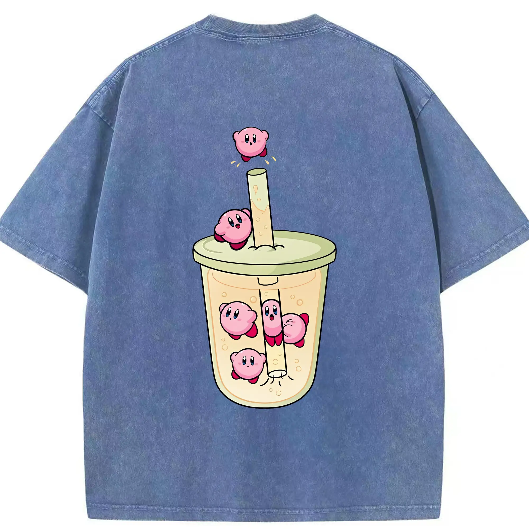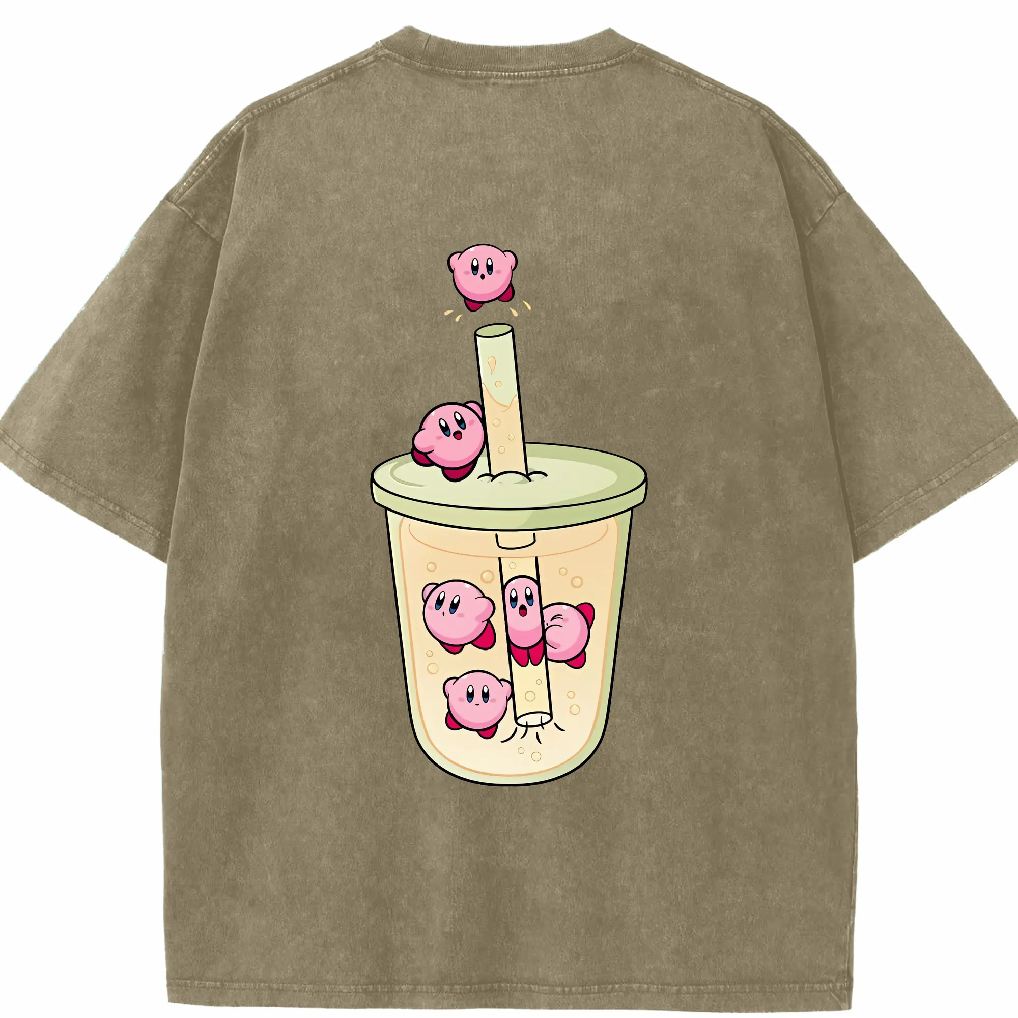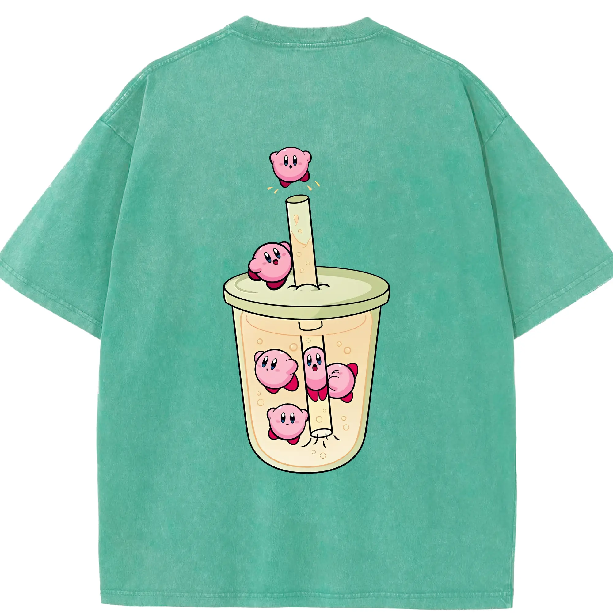 星のカービィ グッズ カービィ - 綿100% ヴィンテージ風 半袖Tシャツ ・ フロントプリント ・ 柔らか肌触り ・ 通気性 快適 ・ スポーツ カジュアル 外出用