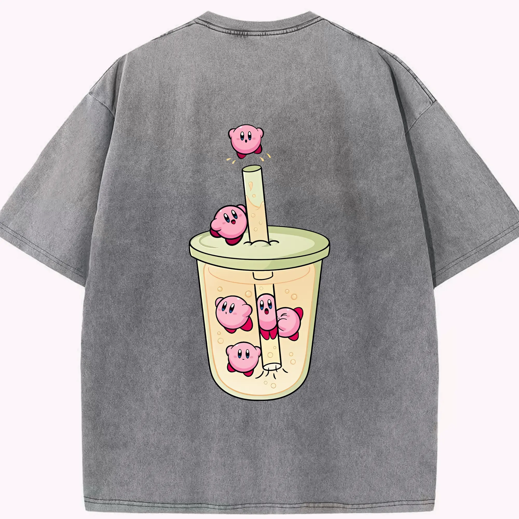 星のカービィ グッズ カービィ - 綿100% 半袖Tシャツ ・ バックプリント ・ 快適 通気性 ・ 日常使い 散歩 スポーツ用