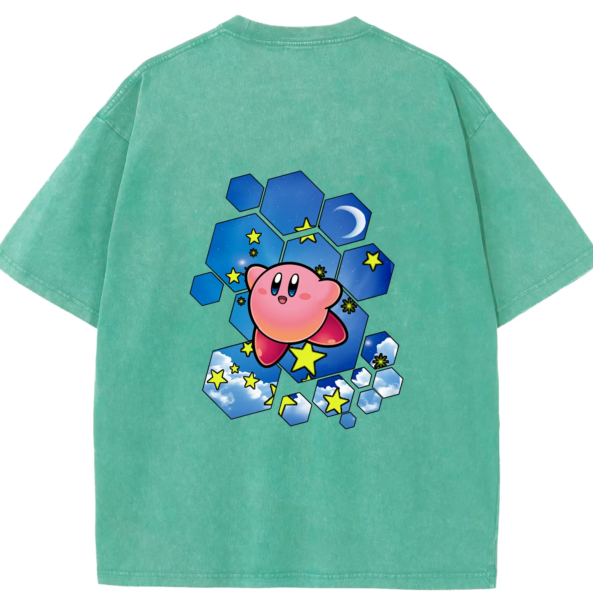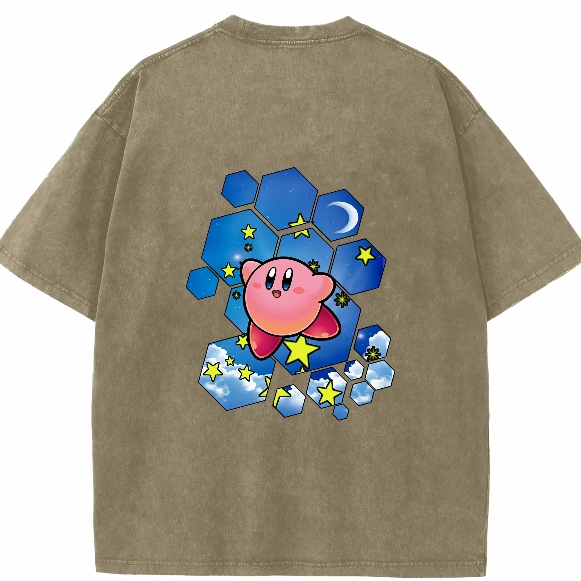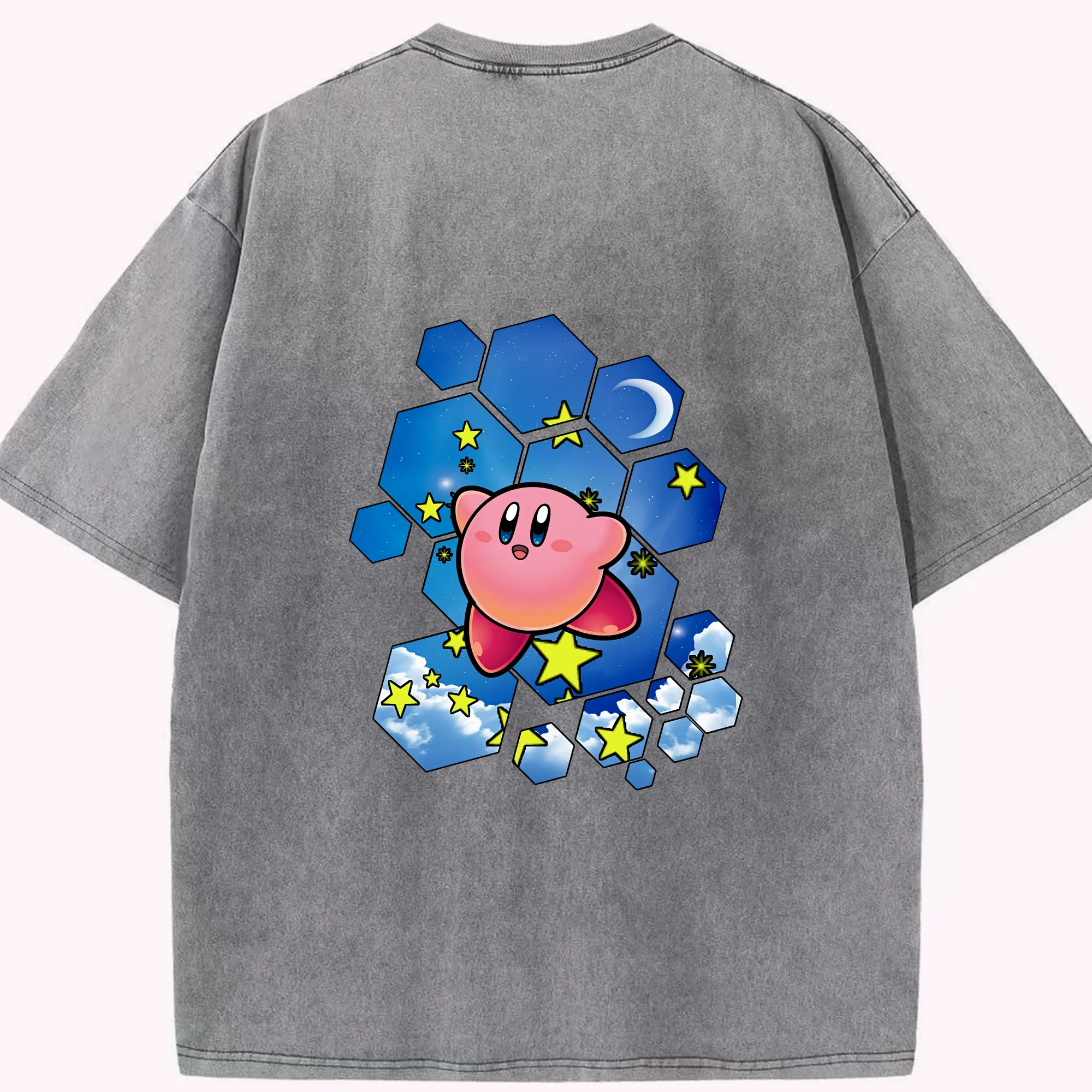 星のカービィ グッズ カービィ - 綿100% ヴィンテージ風 半袖Tシャツ ・ フロントプリント ・ 柔らか肌触り ・ 通気性 快適 ・ スポーツ カジュアル 外出用