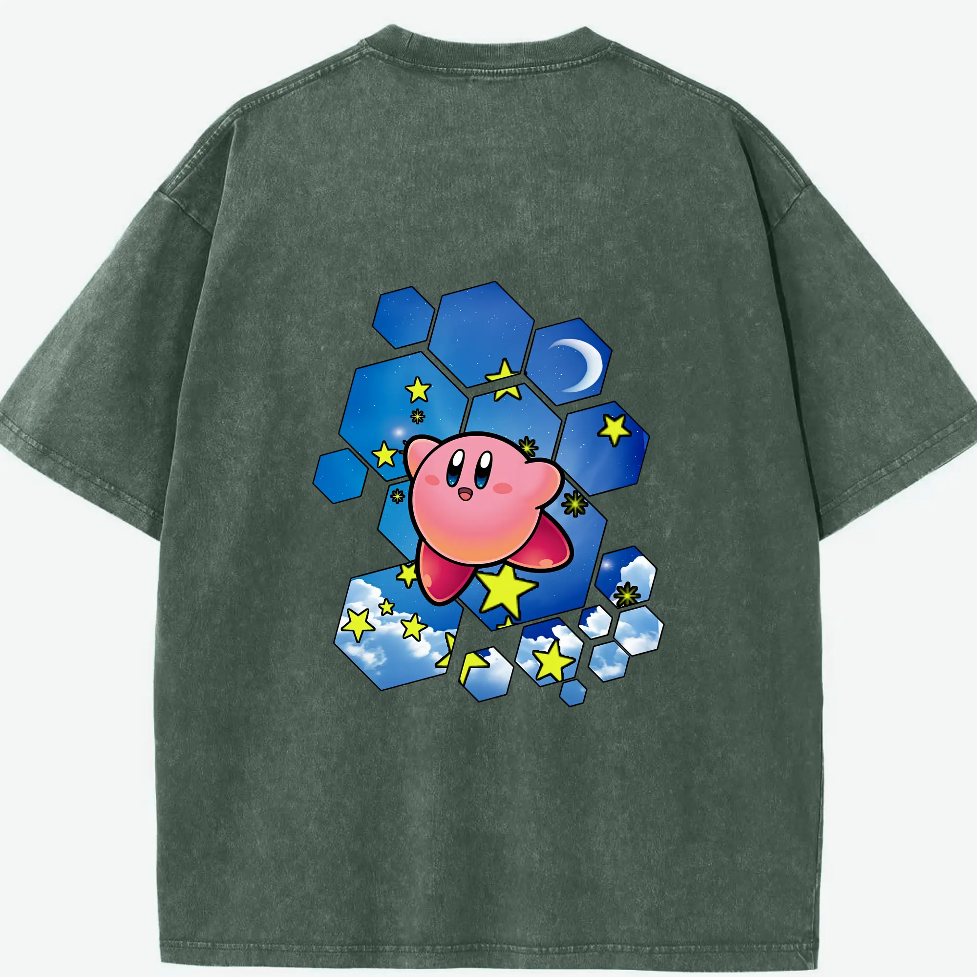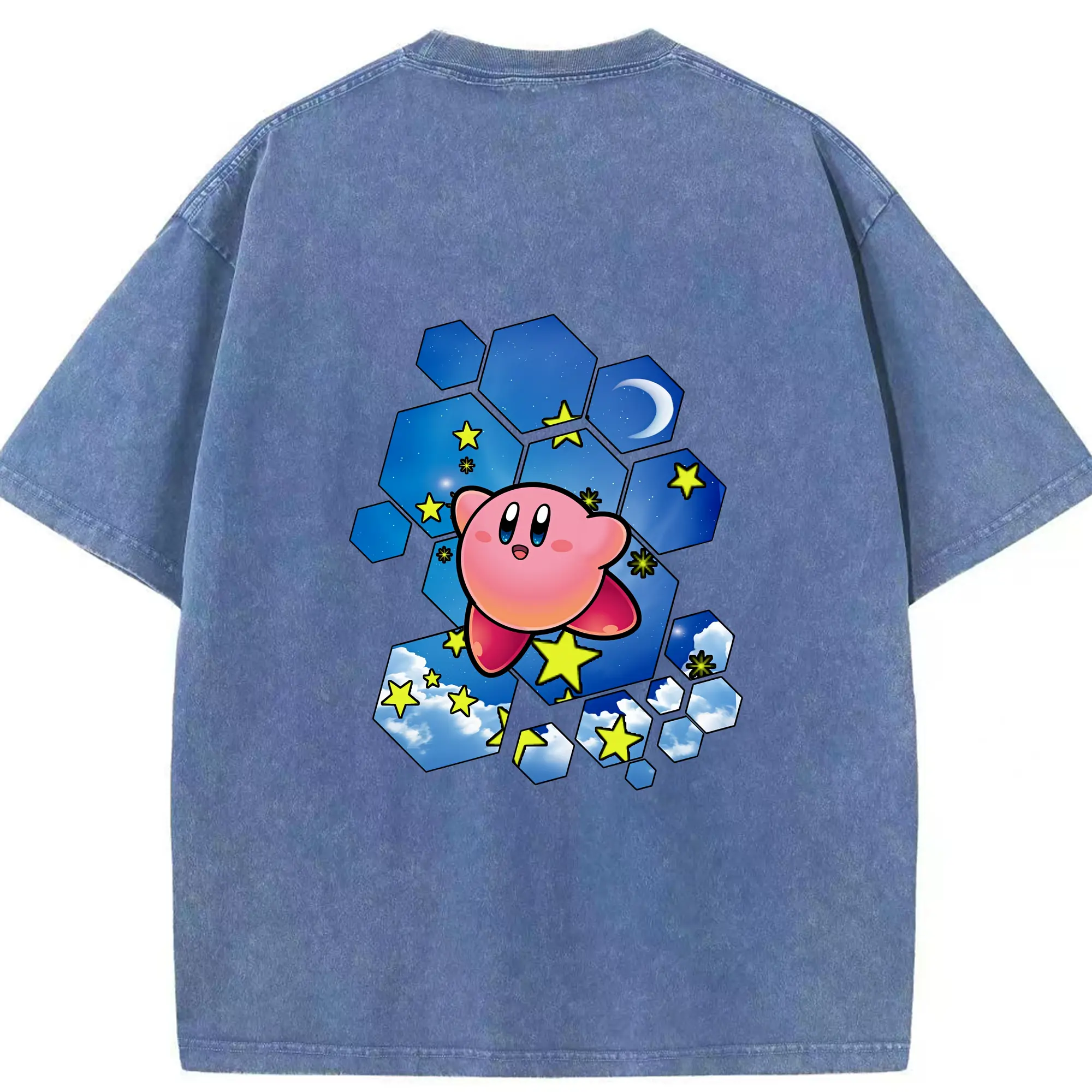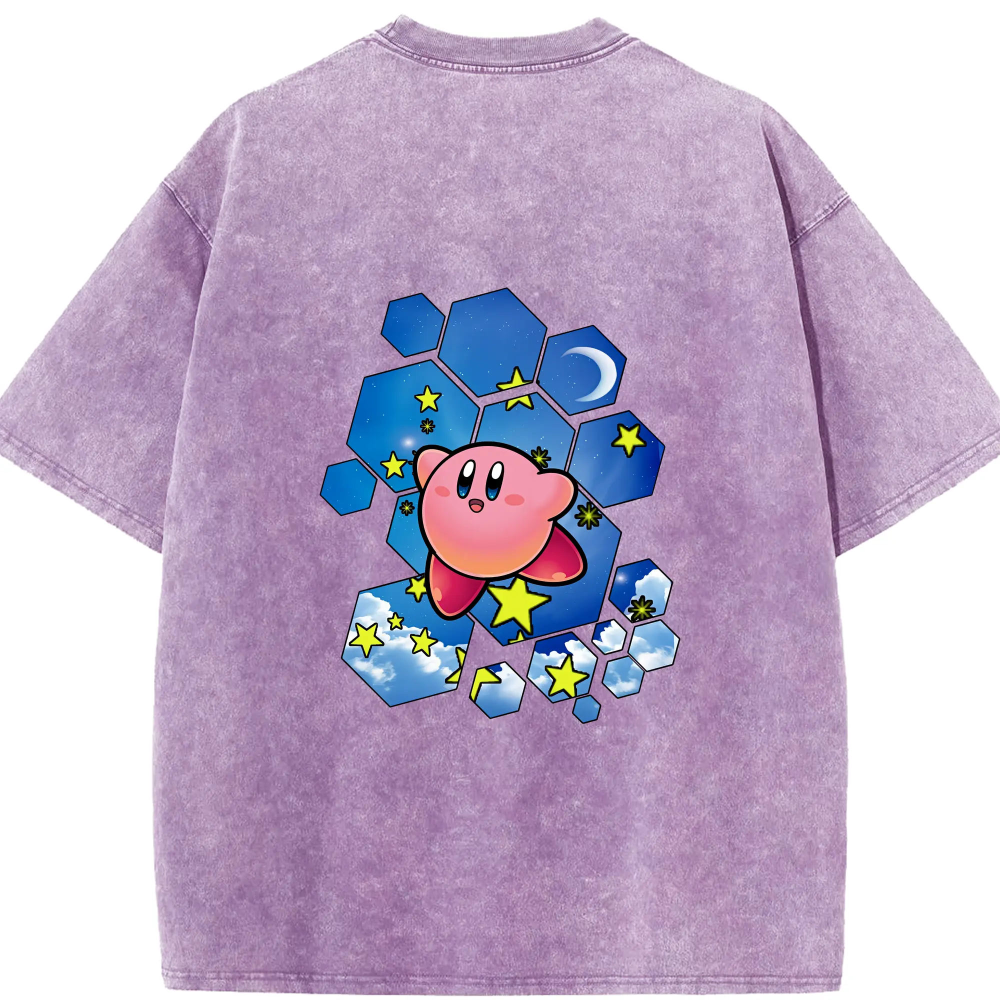 星のカービィ グッズ カービィ - 綿100% ヴィンテージ風 半袖Tシャツ ・ フロントプリント ・ 柔らか肌触り ・ 通気性 快適 ・ スポーツ カジュアル 外出用