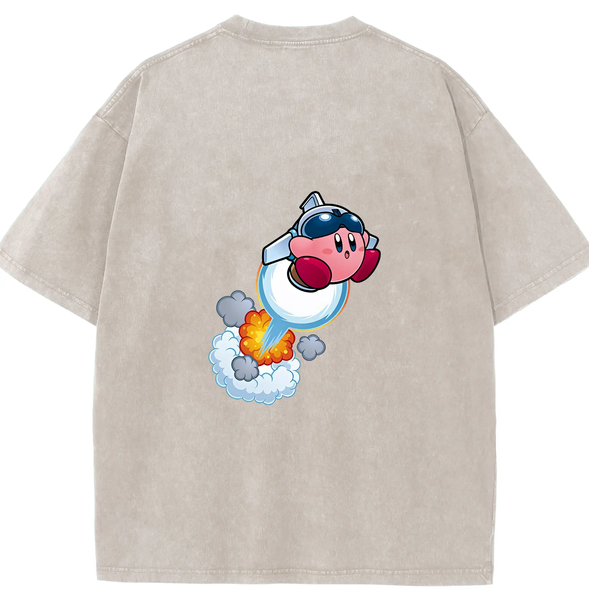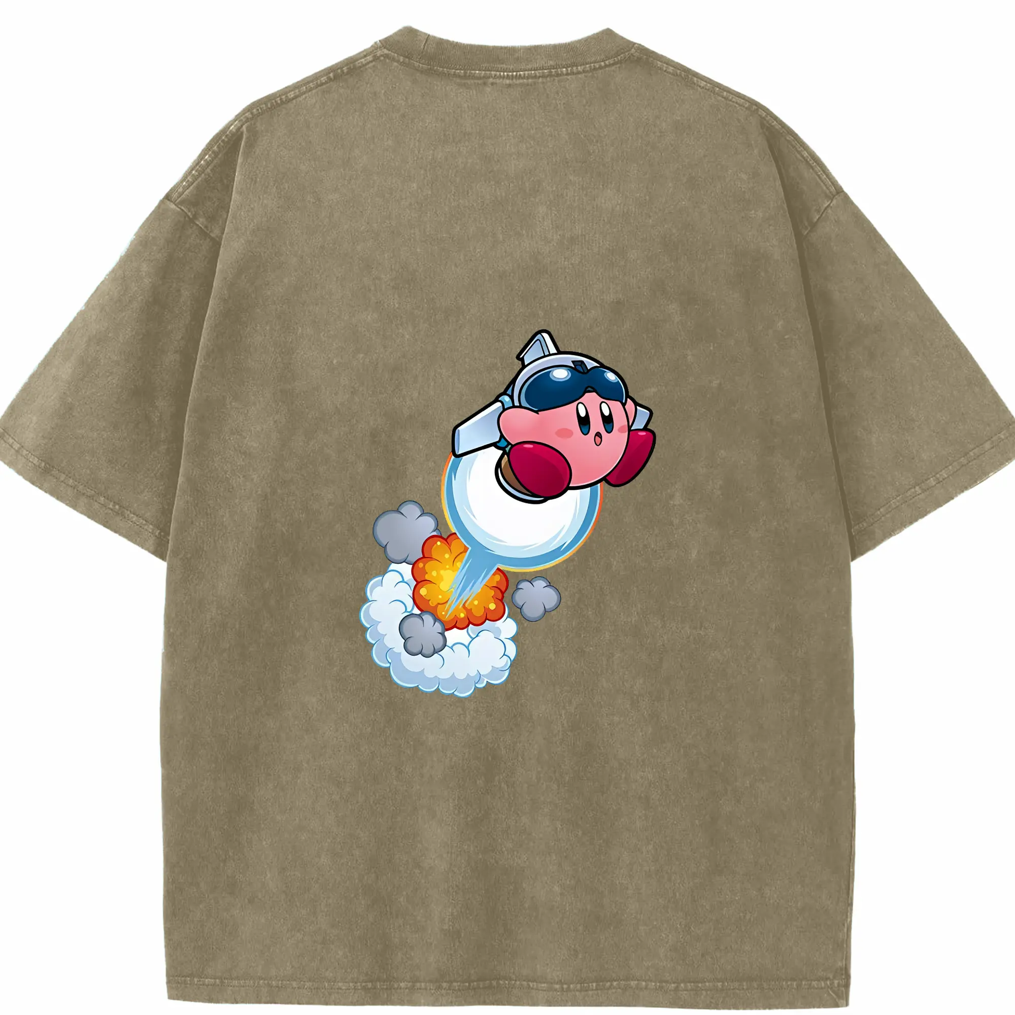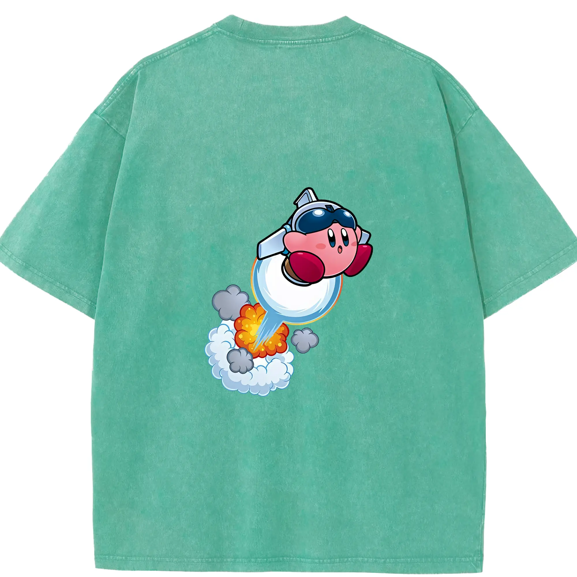 星のカービィ グッズ カービィ - 綿100% ヴィンテージ風 半袖Tシャツ ・ フロントプリント ・ 柔らか肌触り ・ 通気性 快適 ・ スポーツ カジュアル 外出用