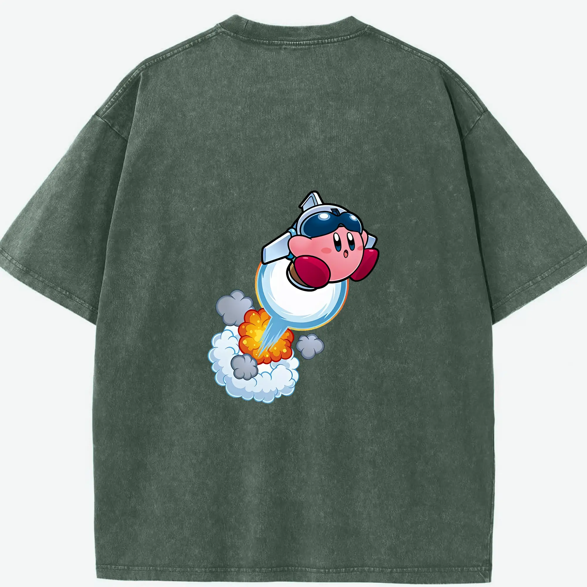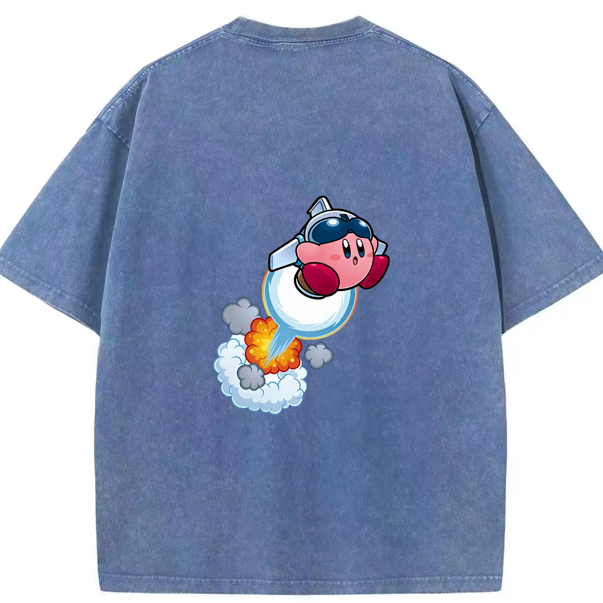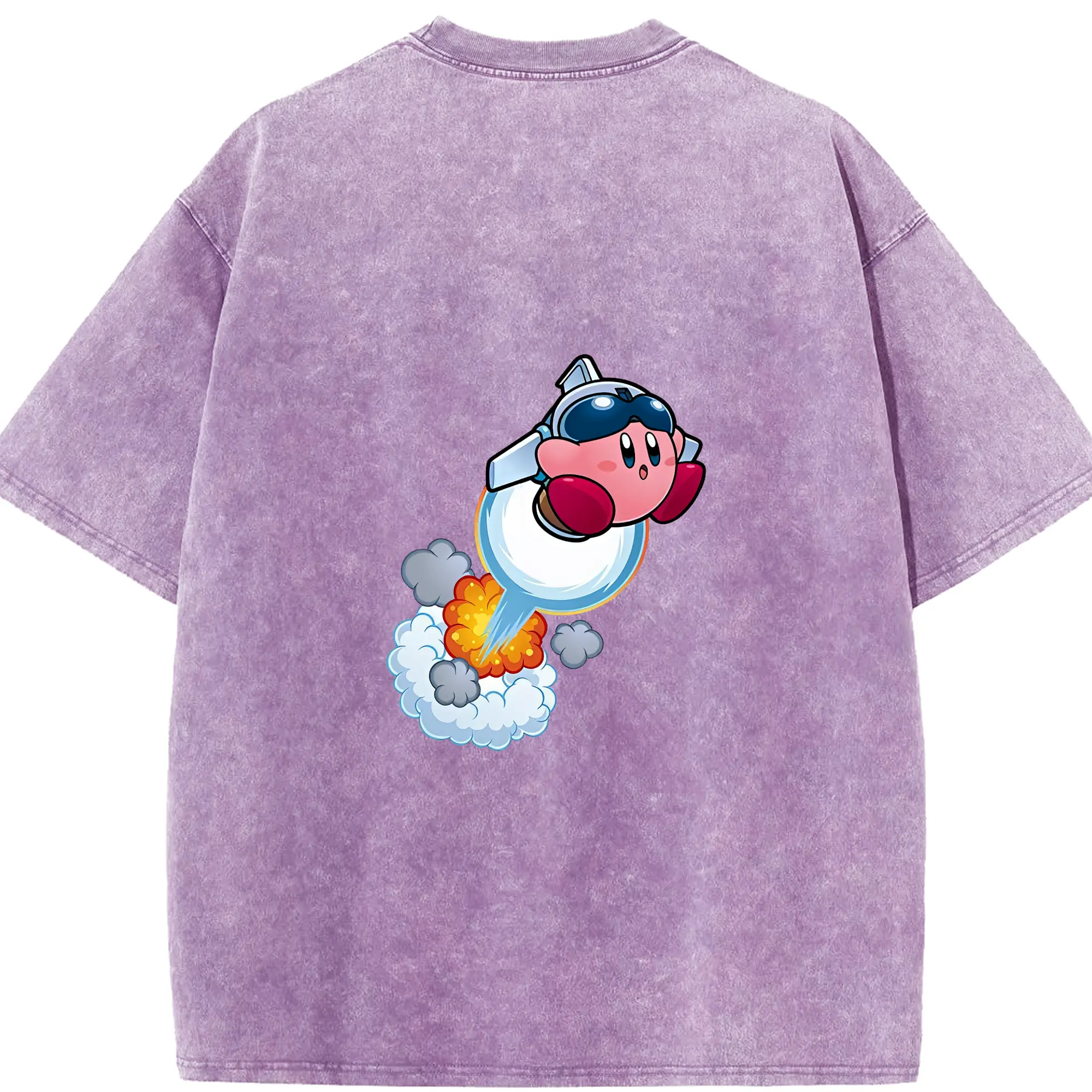 星のカービィ グッズ カービィ - 綿100% ヴィンテージ風 半袖Tシャツ ・ フロントプリント ・ 柔らか肌触り ・ 通気性 快適 ・ スポーツ カジュアル 外出用
