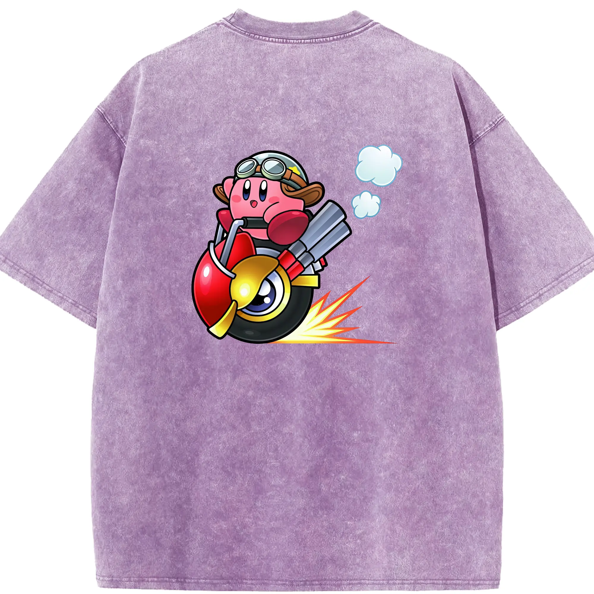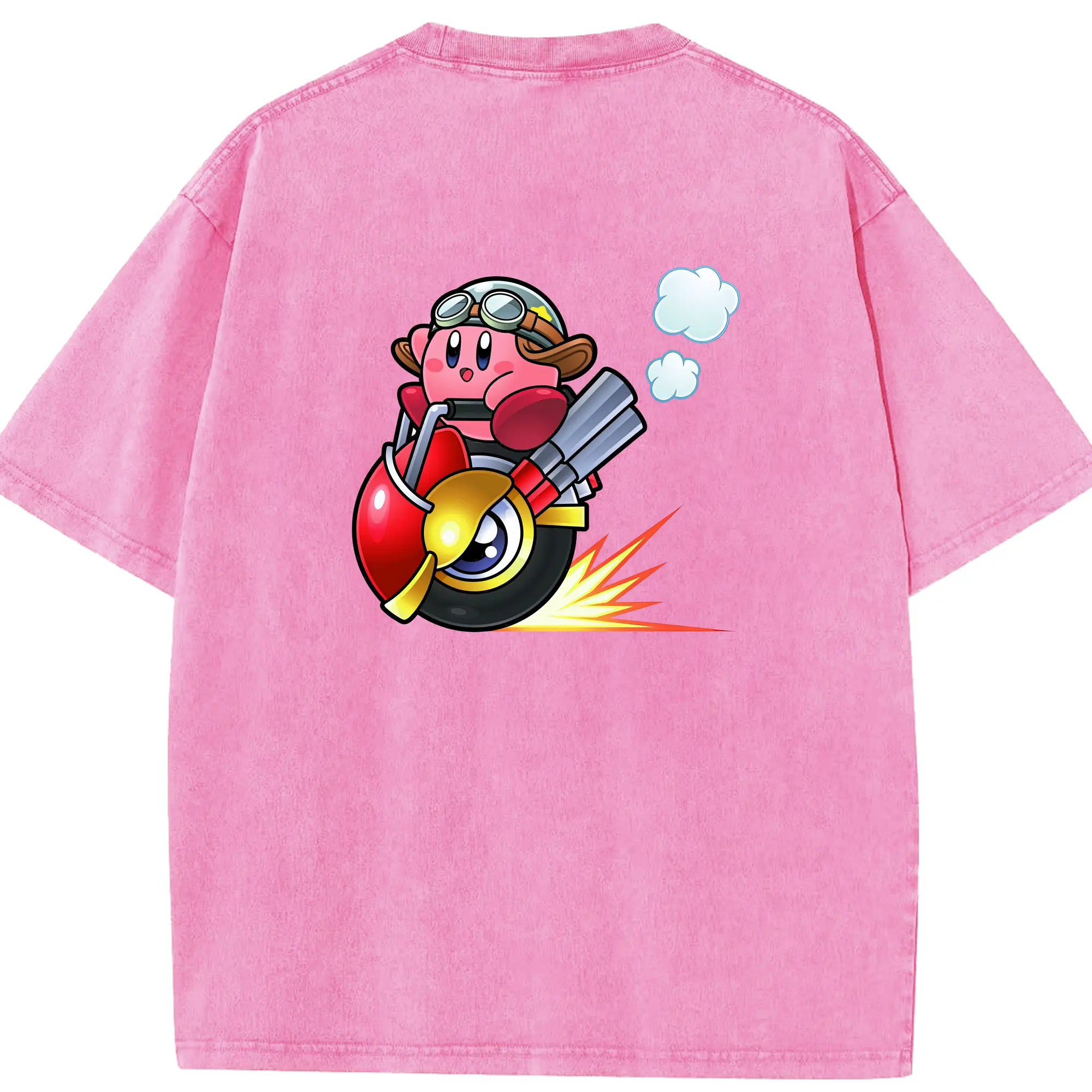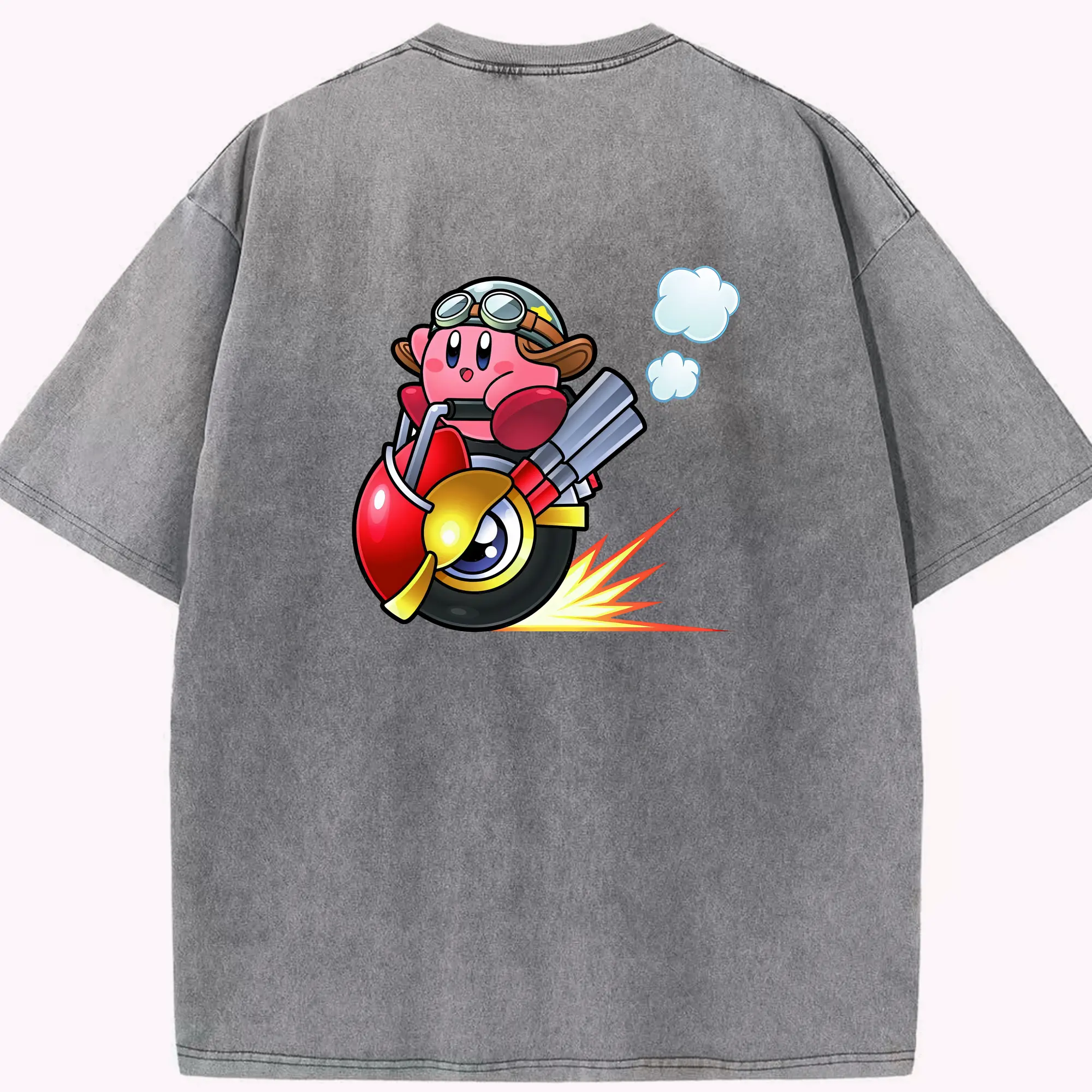星のカービィ グッズ カービィ - 綿100% ヴィンテージ風 半袖Tシャツ ・ フロントプリント ・ 柔らか肌触り ・ 通気性 快適 ・ スポーツ カジュアル 外出用