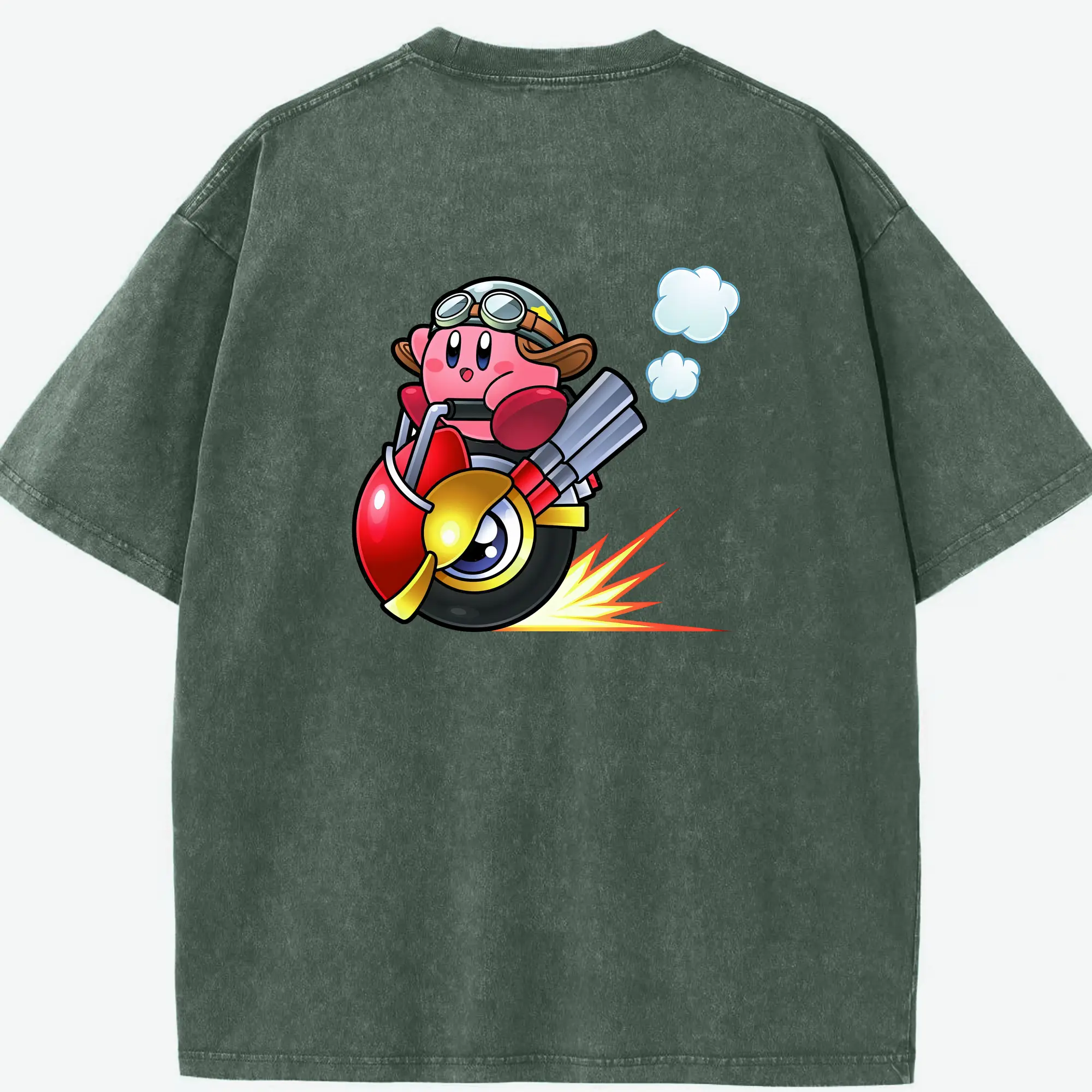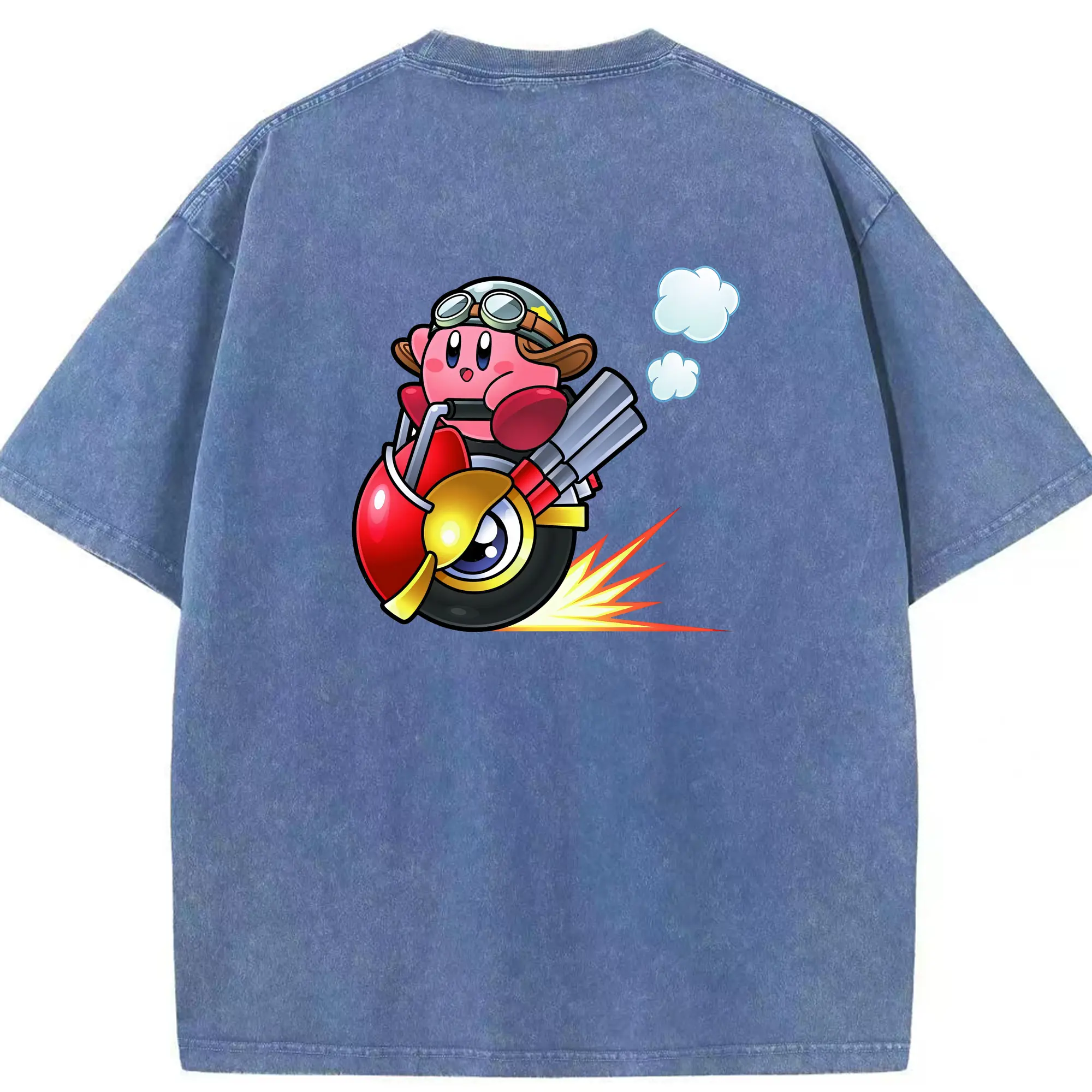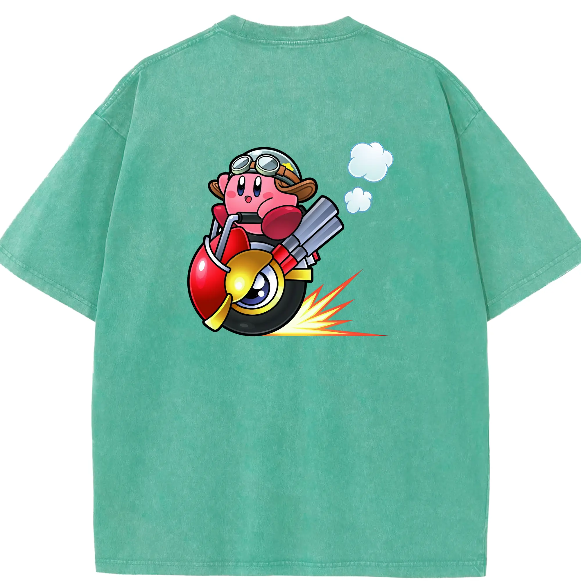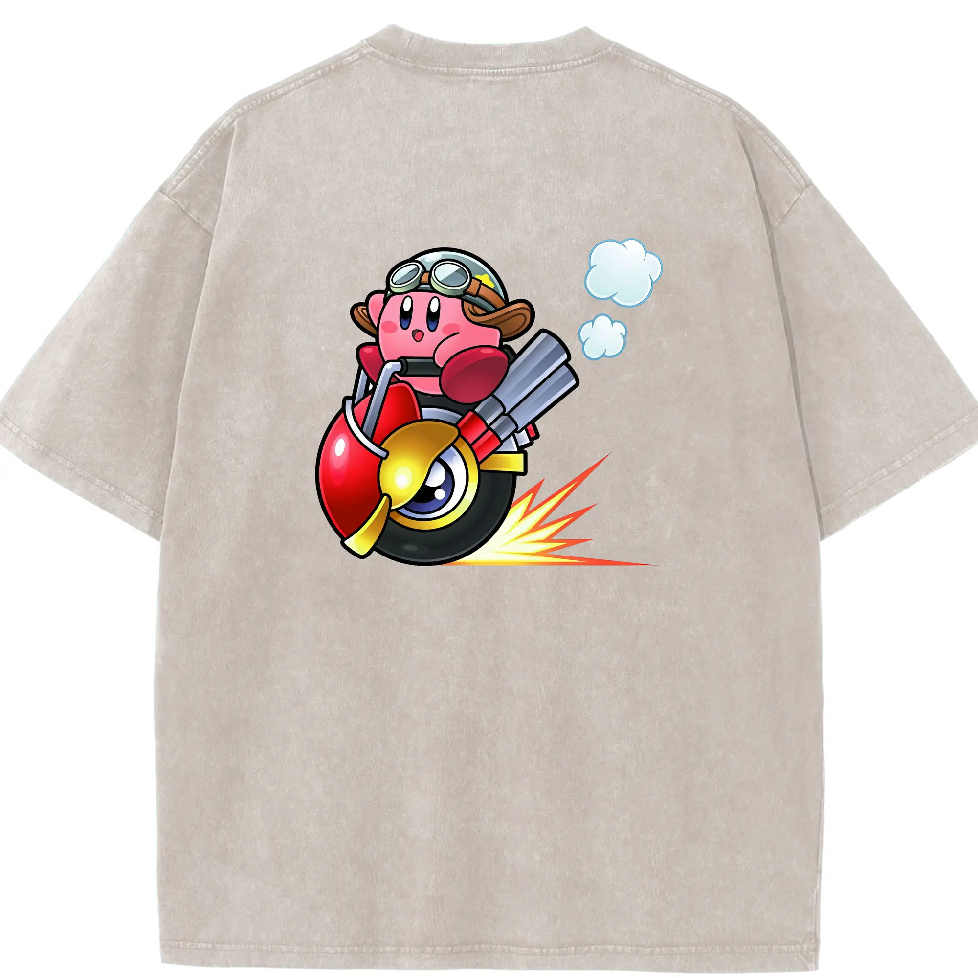 星のカービィ グッズ カービィ - 綿100% ヴィンテージ風 半袖Tシャツ ・ フロントプリント ・ 柔らか肌触り ・ 通気性 快適 ・ スポーツ カジュアル 外出用