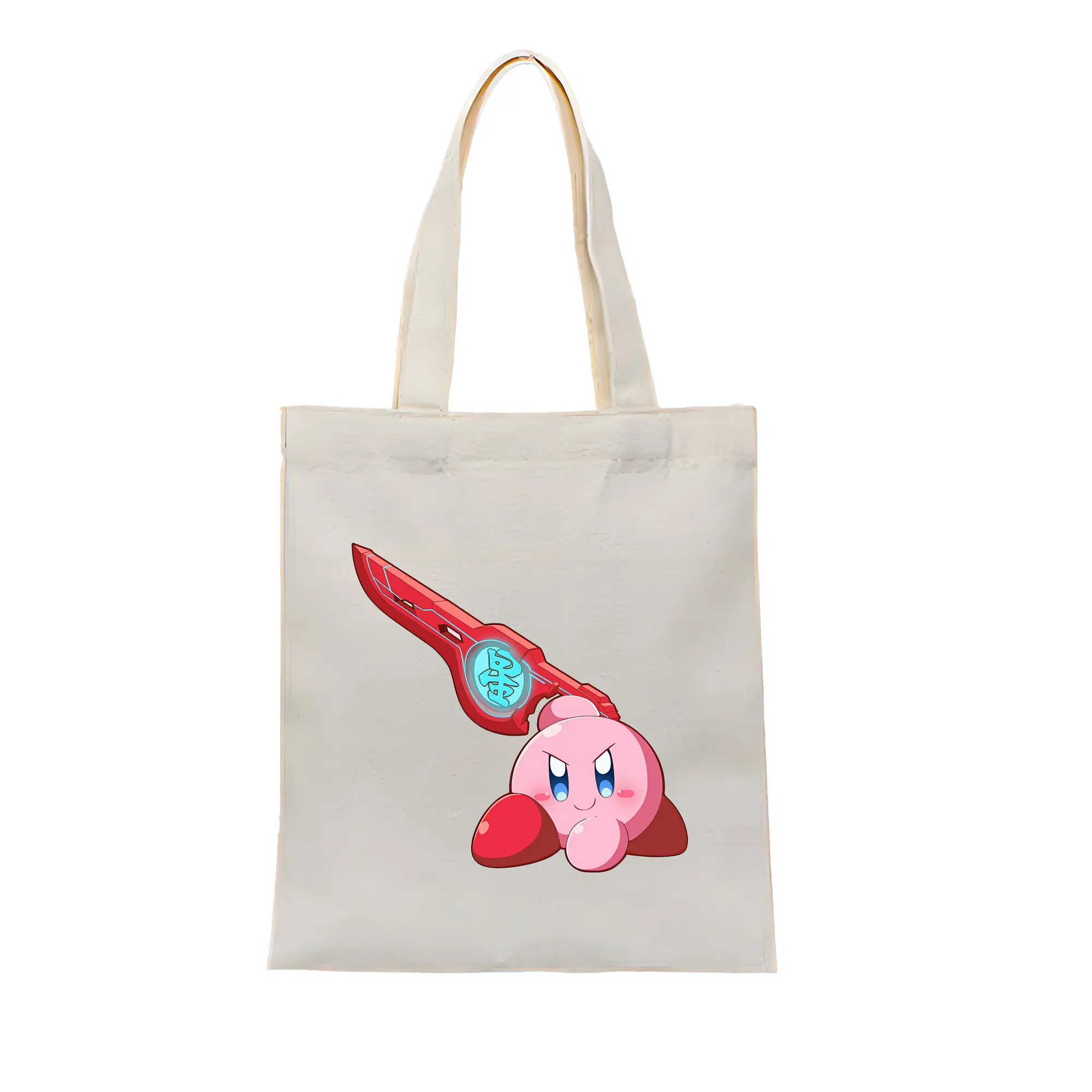 星のカービィ グッズ カービィ - 縦型キャンバス手提げバッグ(トートバッグ) ・ キャンバス素材 ・ ショッピング用 ・ 軽量 丈夫 お手入れ簡単