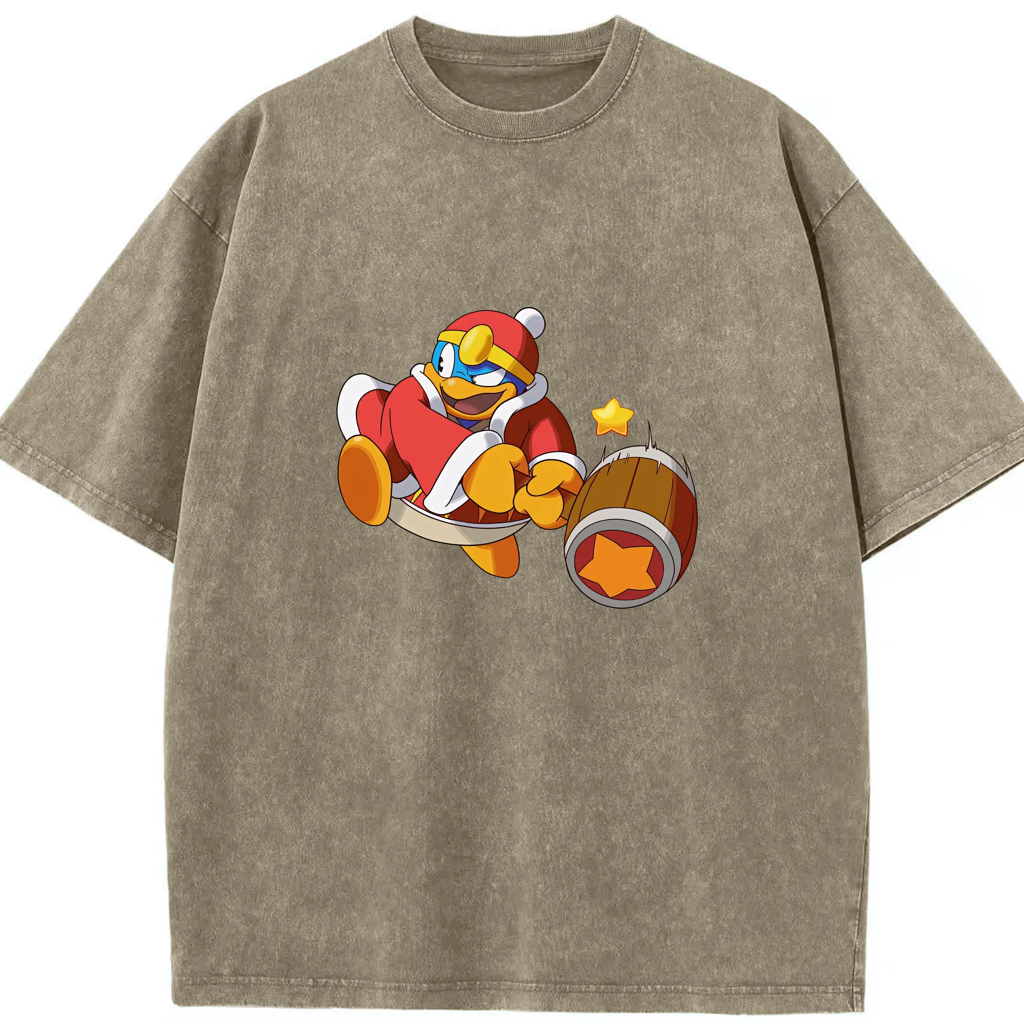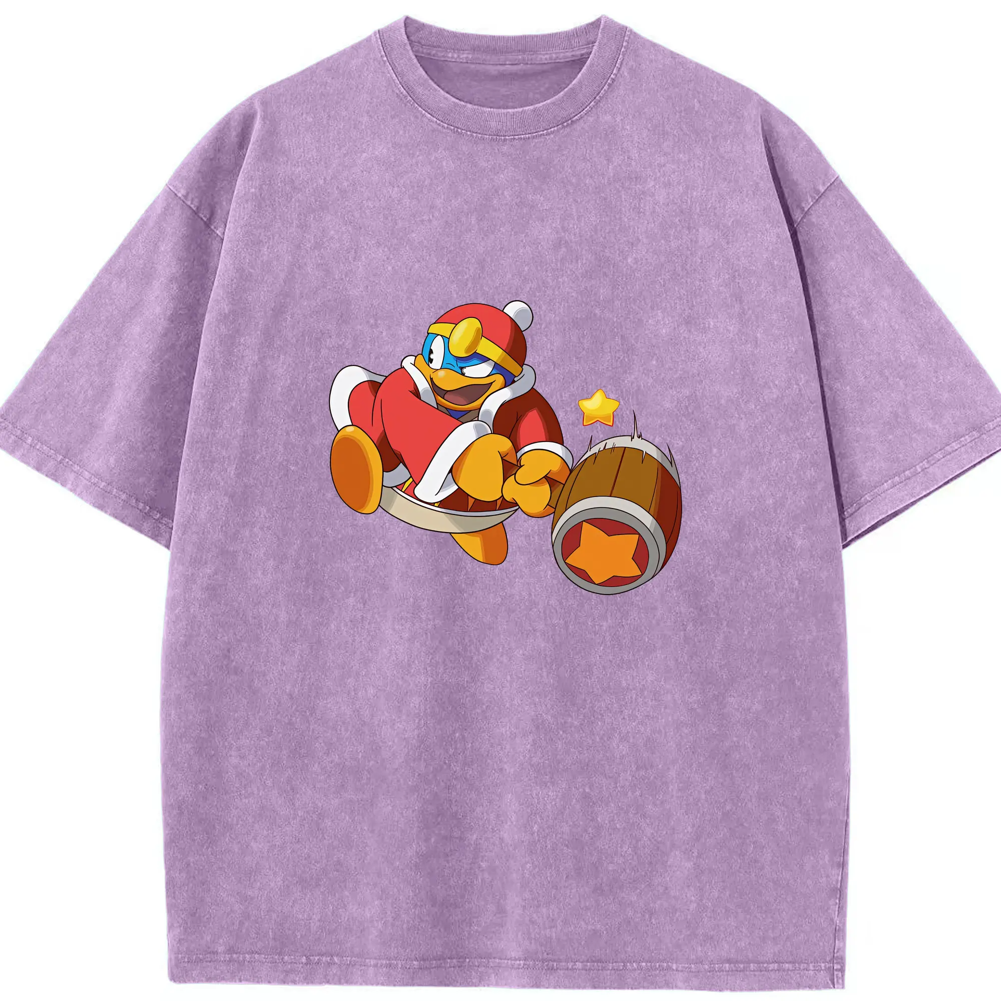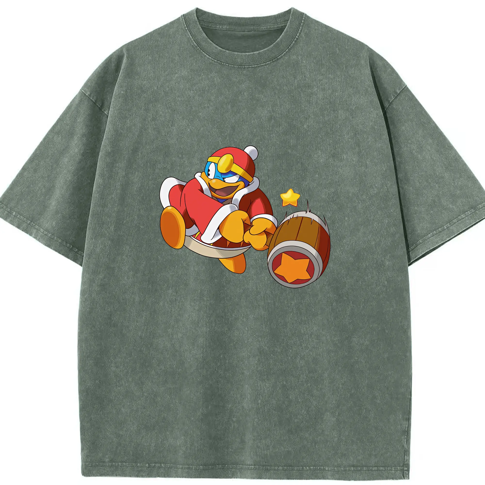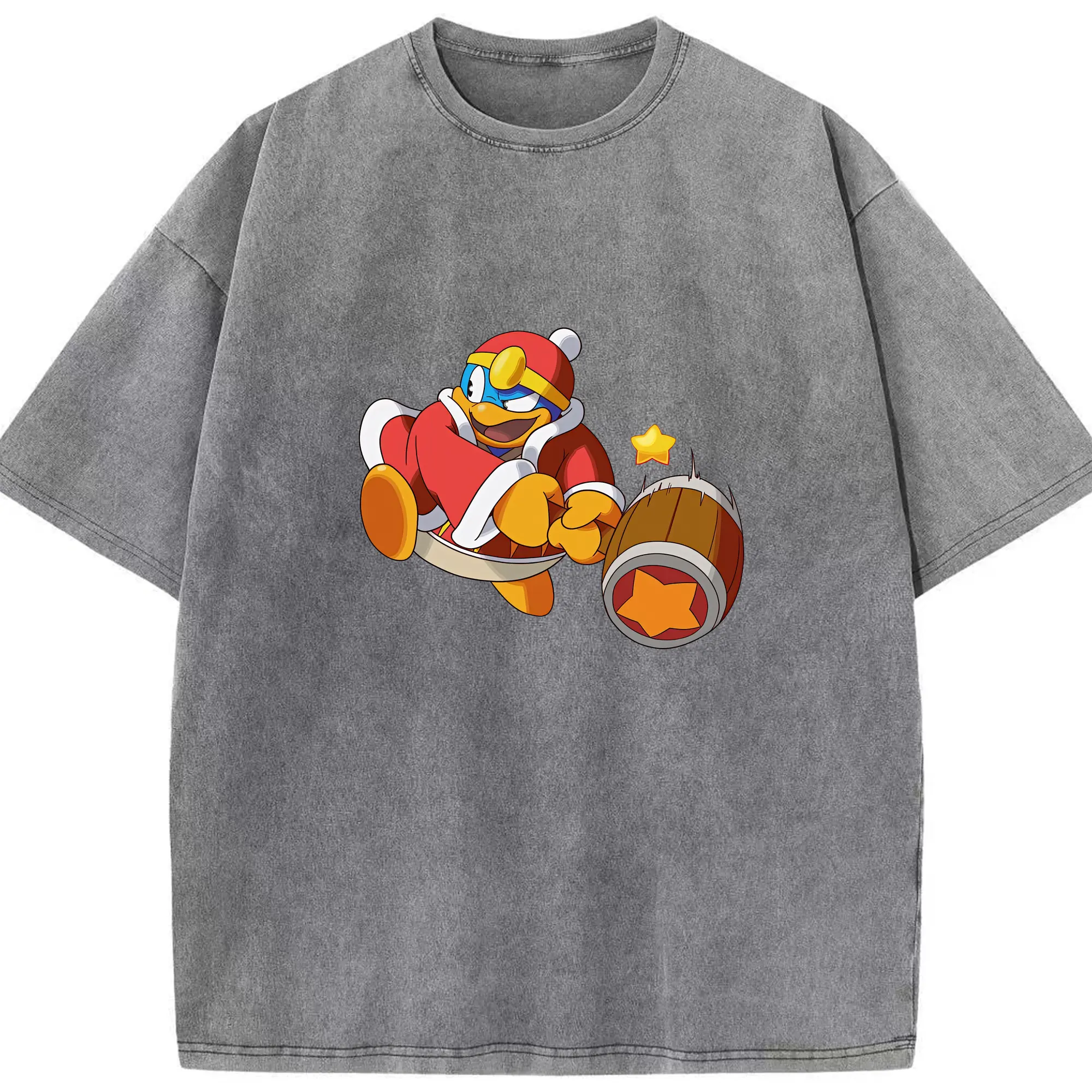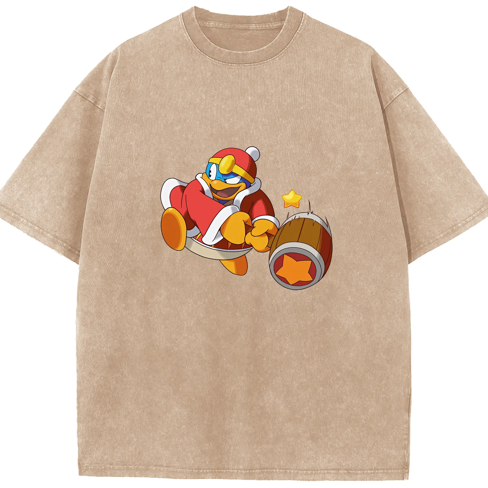 星のカービィ グッズ デデデ大王 - 綿100% ヴィンテージ風 半袖Tシャツ ・ 背面プリント ・ 柔らか肌触り ・ 通気性 快適 ・ スポーツ カジュアル 外出用