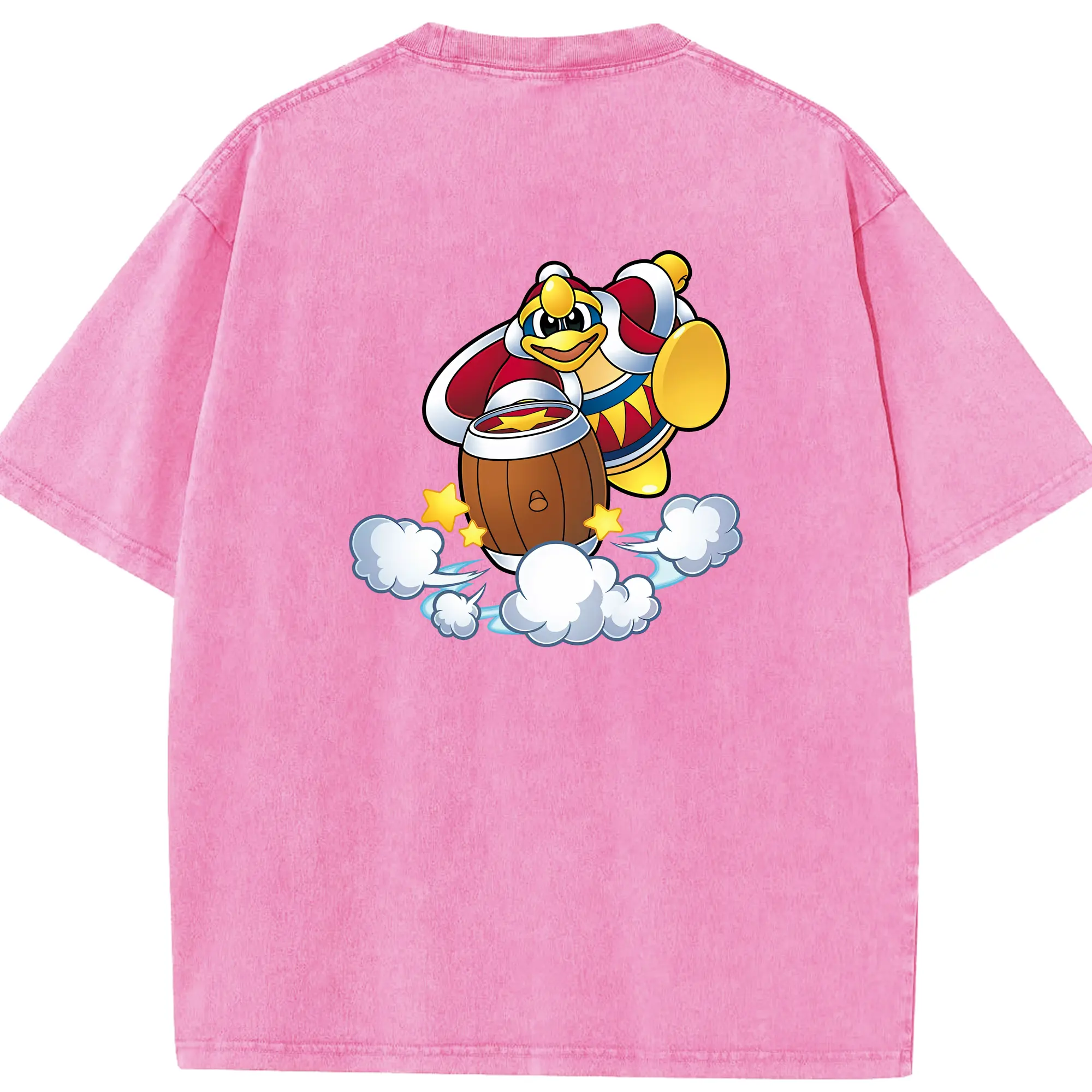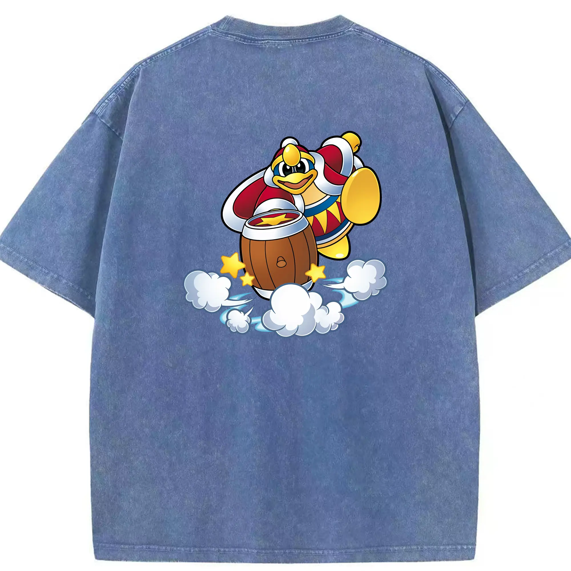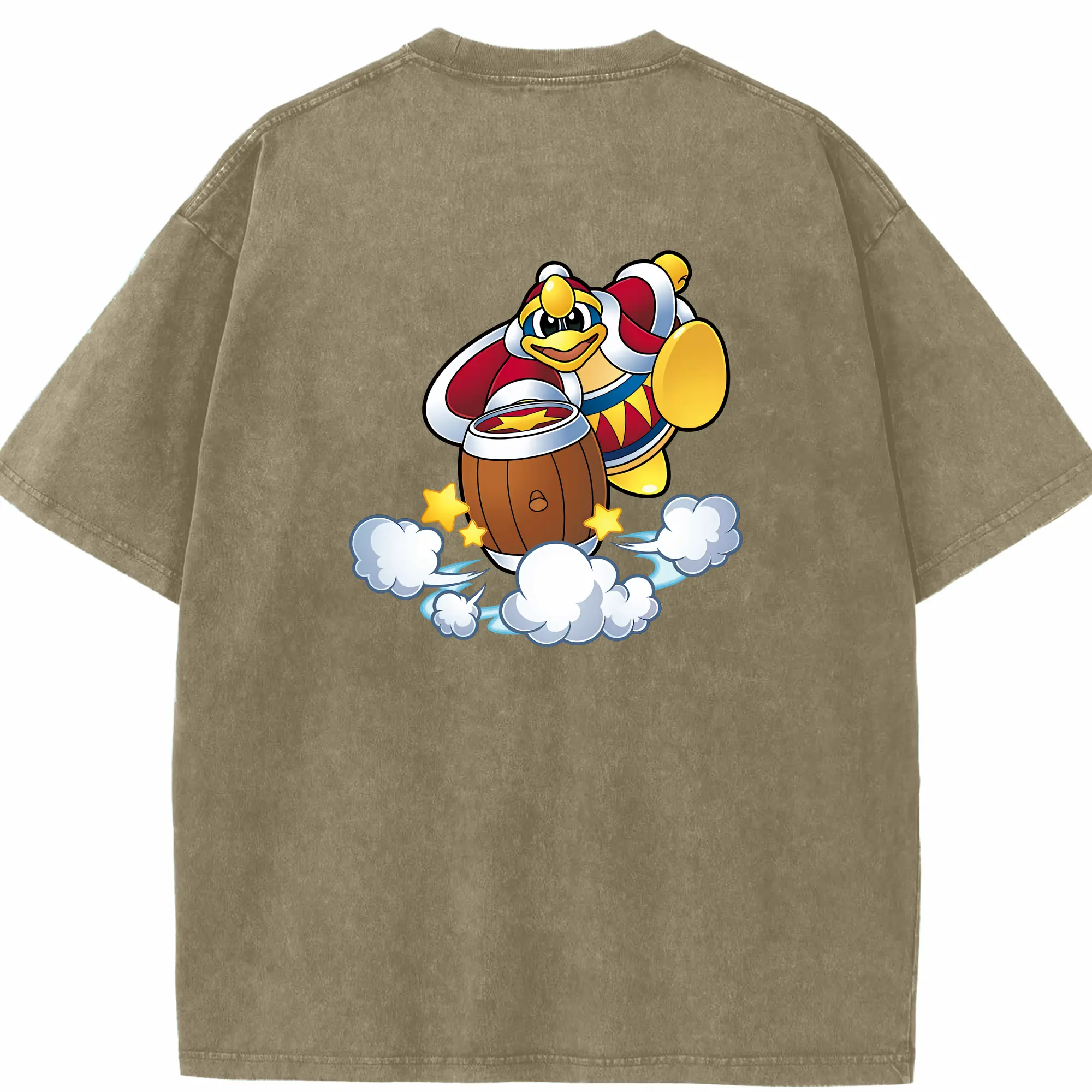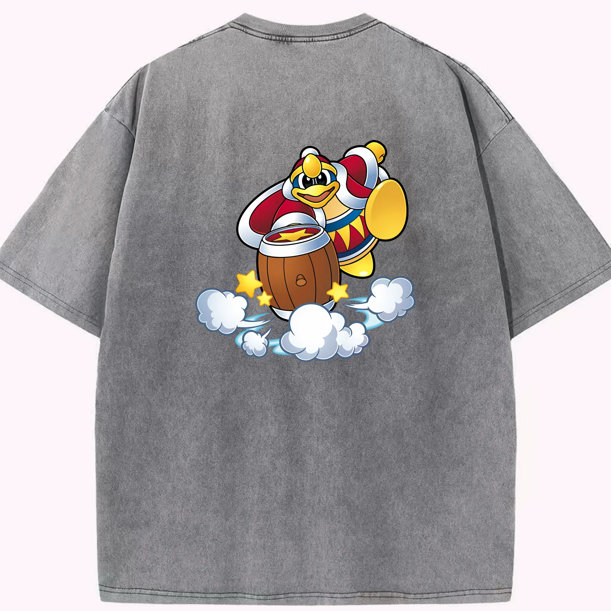 星のカービィ グッズ デデデ大王 - 綿100% ヴィンテージ風 半袖Tシャツ ・ フロントプリント ・ 柔らか肌触り ・ 通気性 快適 ・ スポーツ カジュアル 外出用