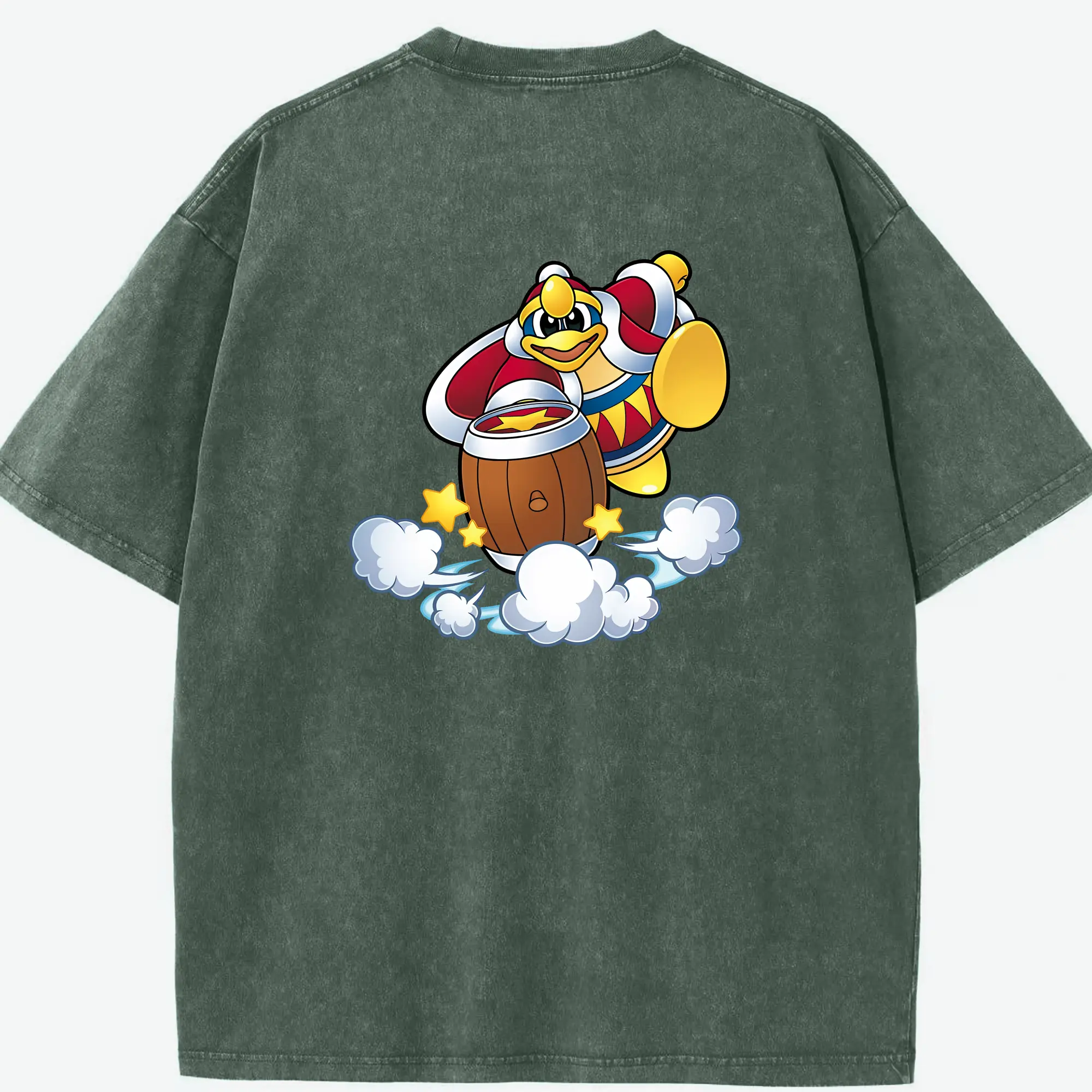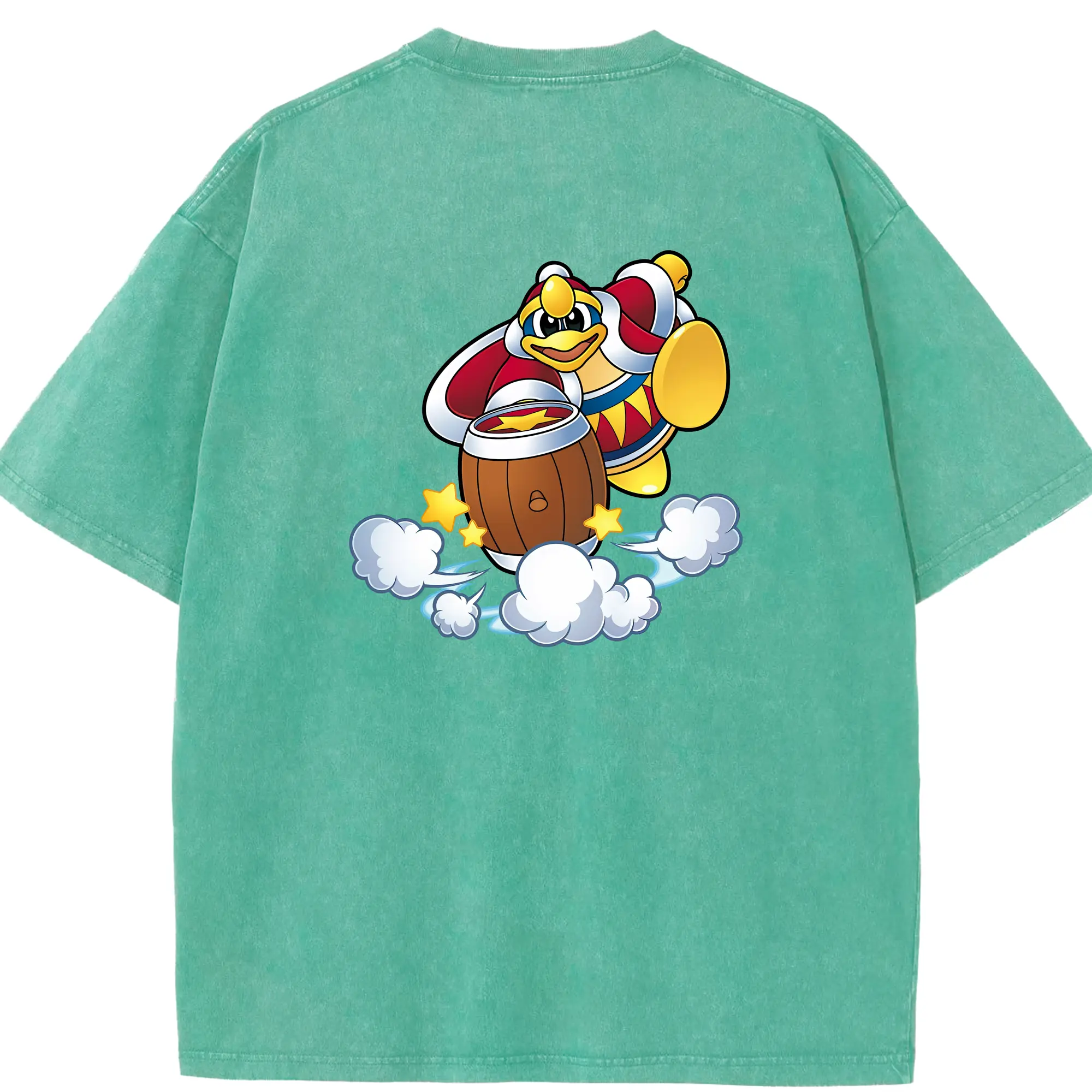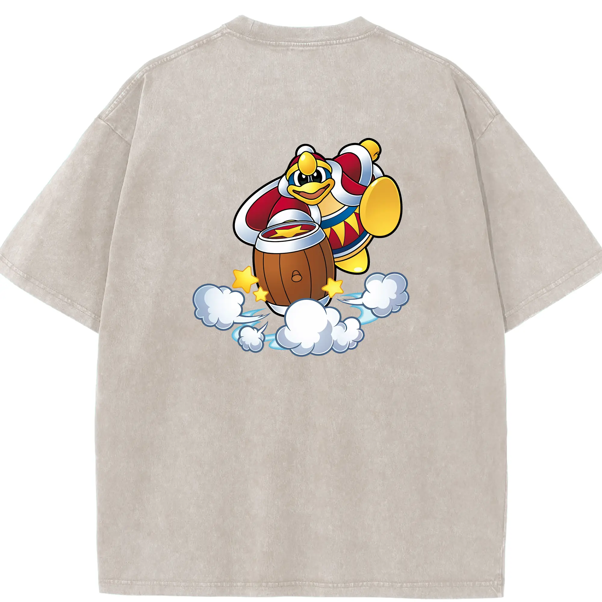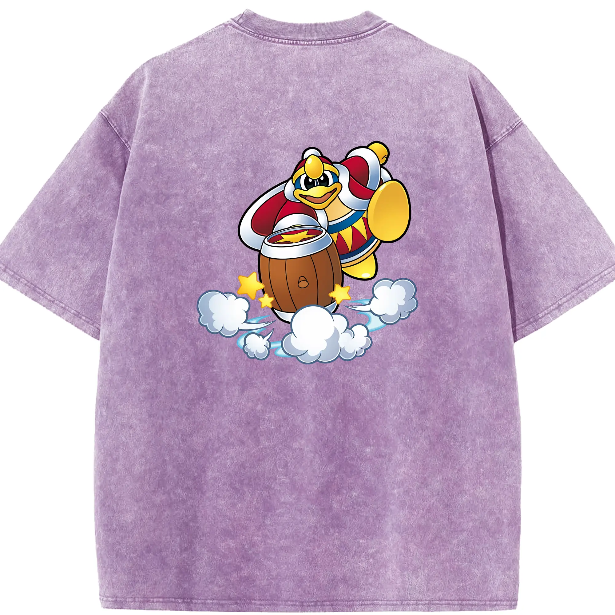星のカービィ グッズ デデデ大王 - 綿100% ヴィンテージ風 半袖Tシャツ ・ フロントプリント ・ 柔らか肌触り ・ 通気性 快適 ・ スポーツ カジュアル 外出用