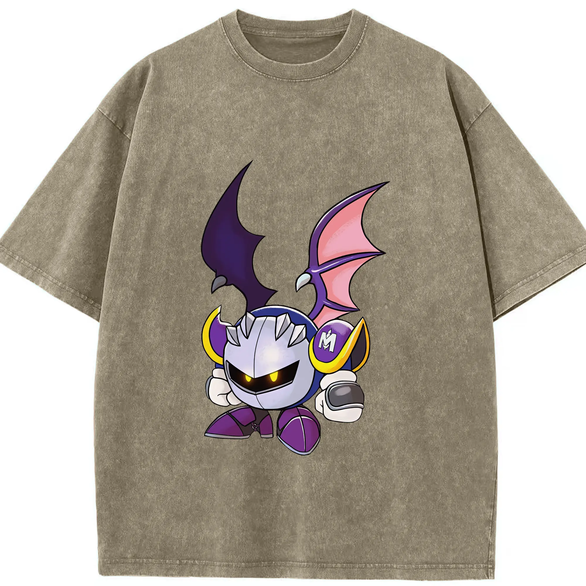 星のカービィ グッズ メタナイト - 綿100% ヴィンテージ風 半袖Tシャツ ・ 背面プリント ・ 柔らか肌触り ・ 通気性 快適 ・ スポーツ カジュアル 外出用