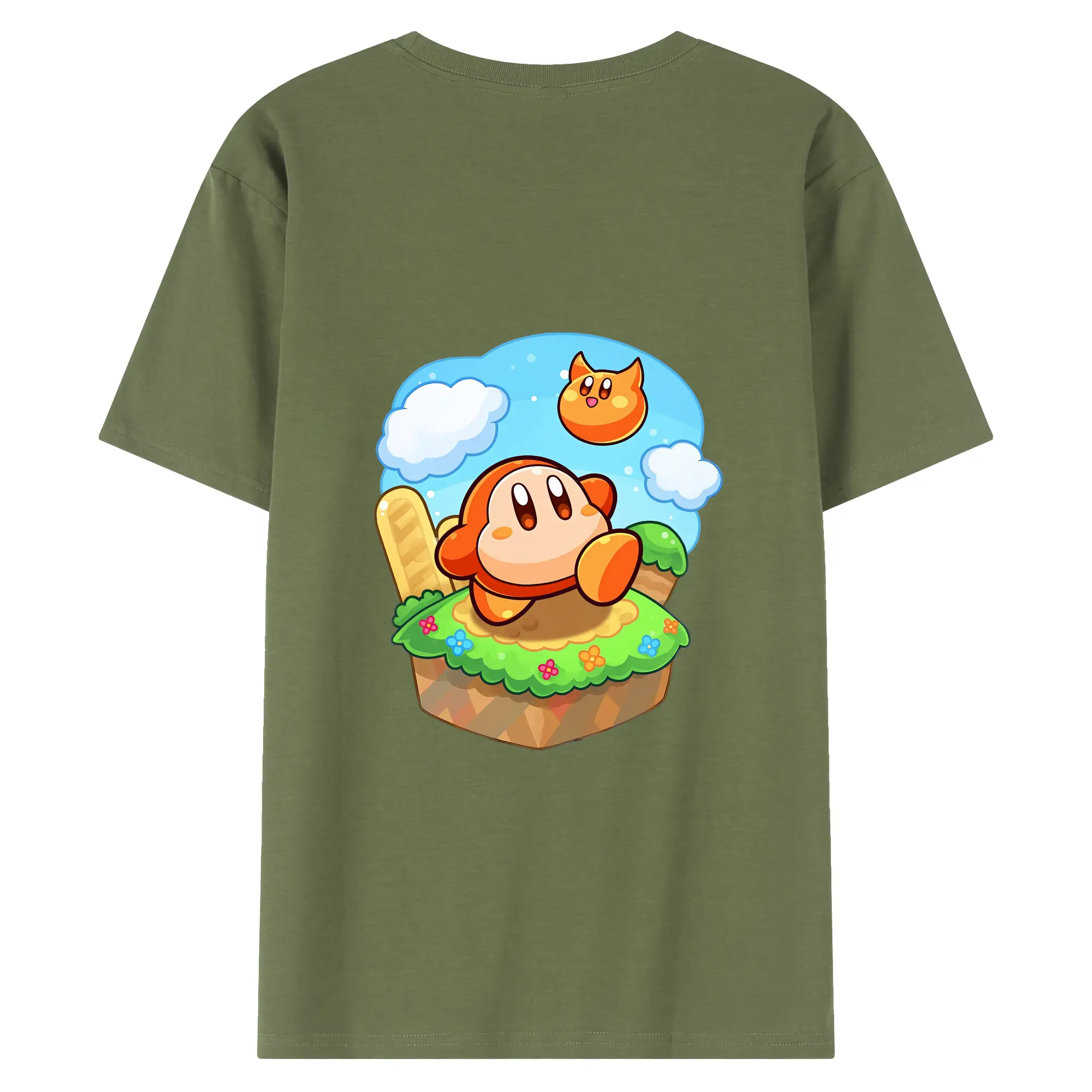 星のカービィ グッズ ワドルディ - 綿100% 半袖Tシャツ ・ フロントプリント ・ 快適 通気性 ・ 日常使い 散歩 スポーツ用
