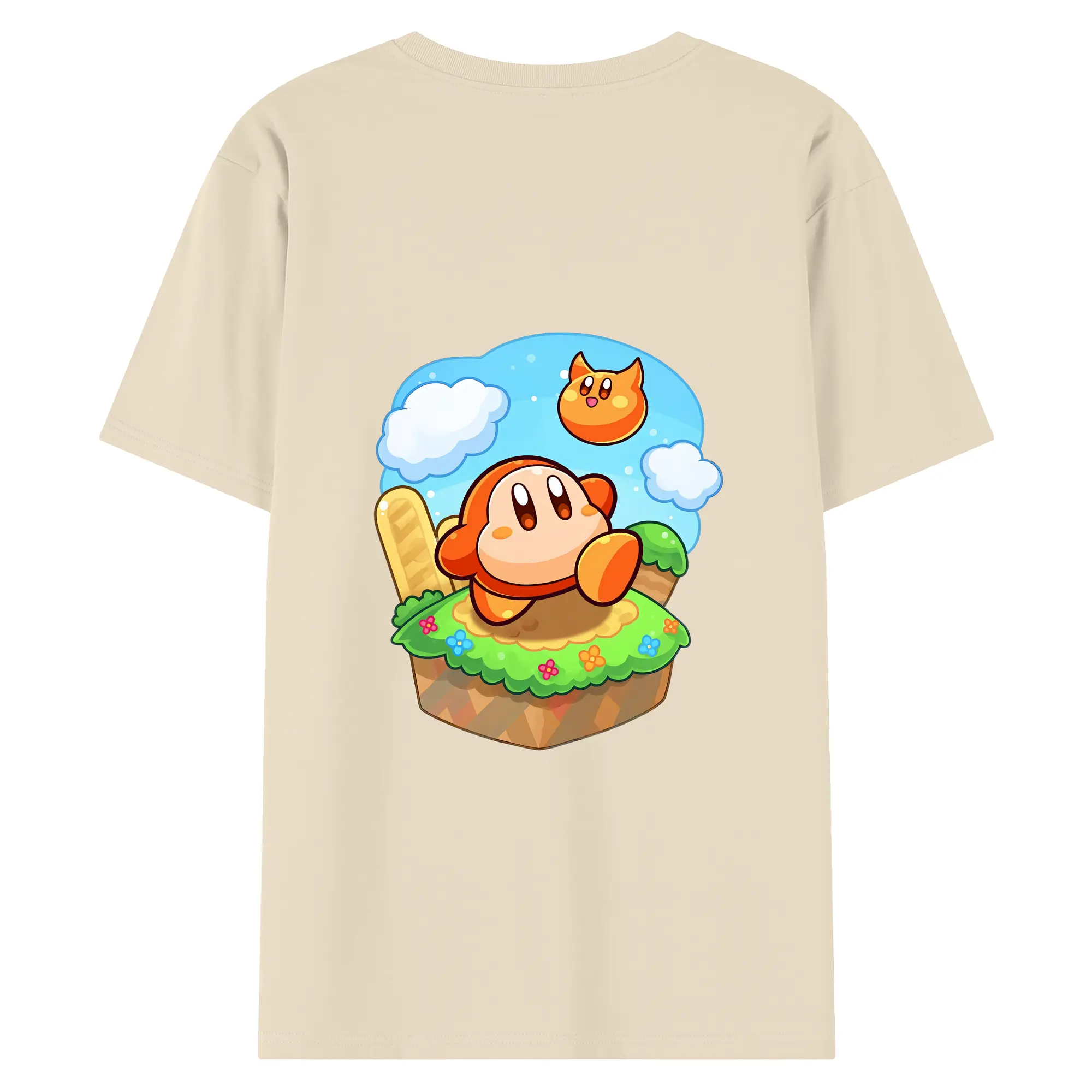 星のカービィ グッズ ワドルディ - 綿100% ヴィンテージ風 半袖Tシャツ ・ 背面プリント ・ 柔らか肌触り ・ 通気性 快適 ・ スポーツ カジュアル 外出用