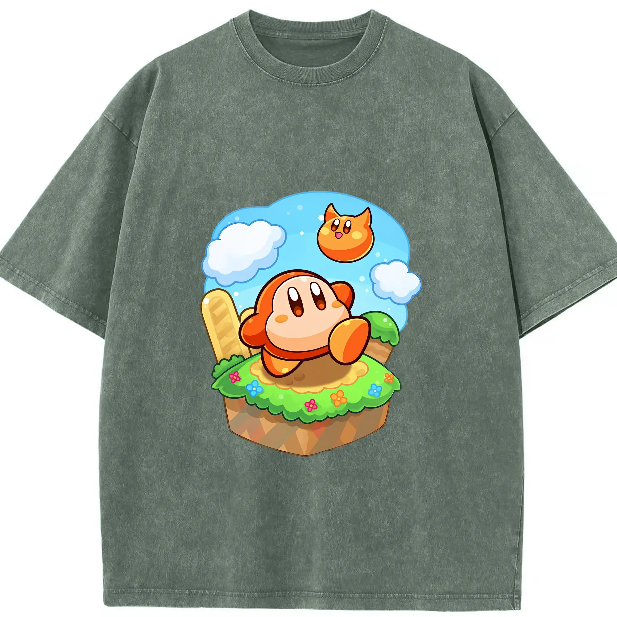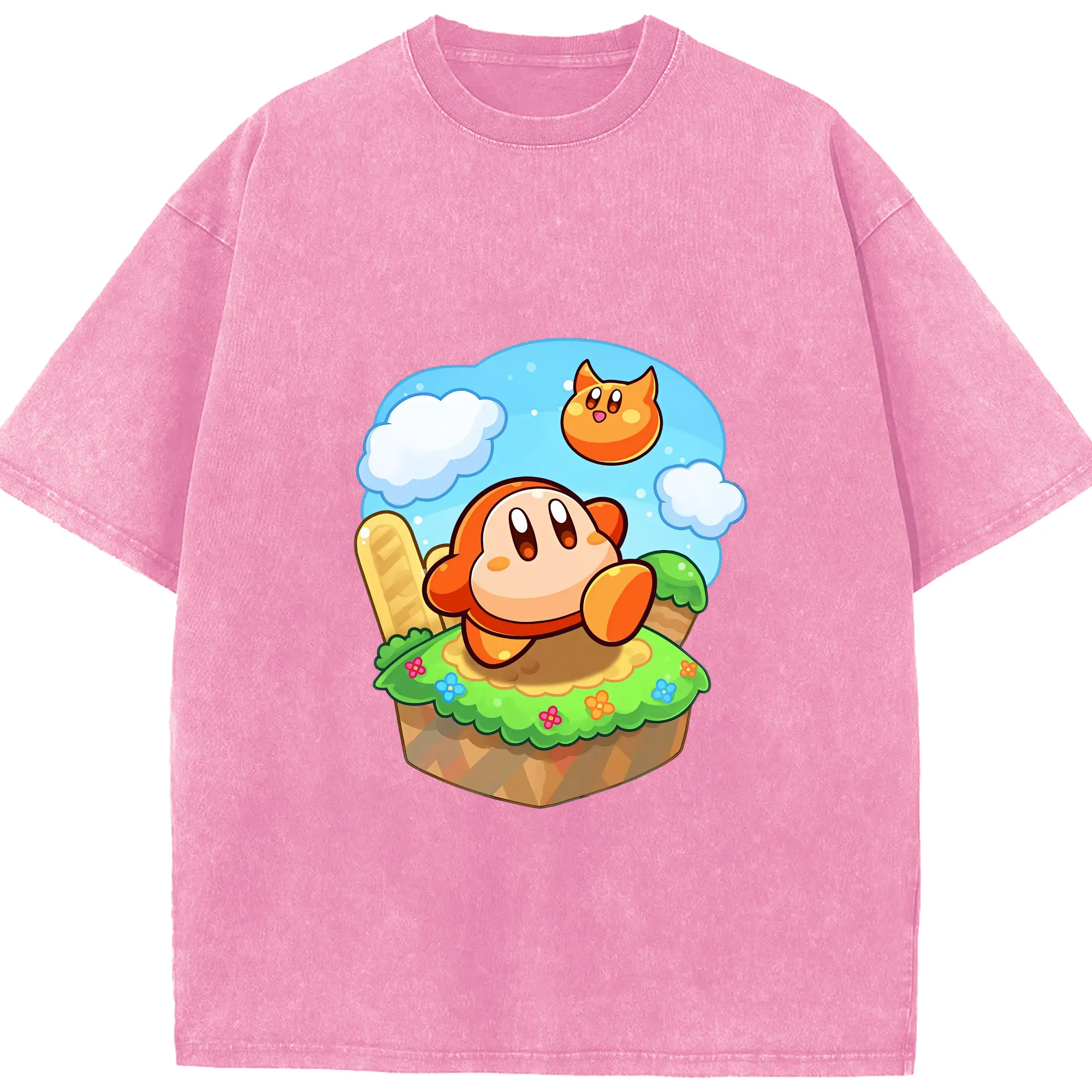 星のカービィ グッズ ワドルディ - 綿100% ヴィンテージ風 半袖Tシャツ ・ 背面プリント ・ 柔らか肌触り ・ 通気性 快適 ・ スポーツ カジュアル 外出用