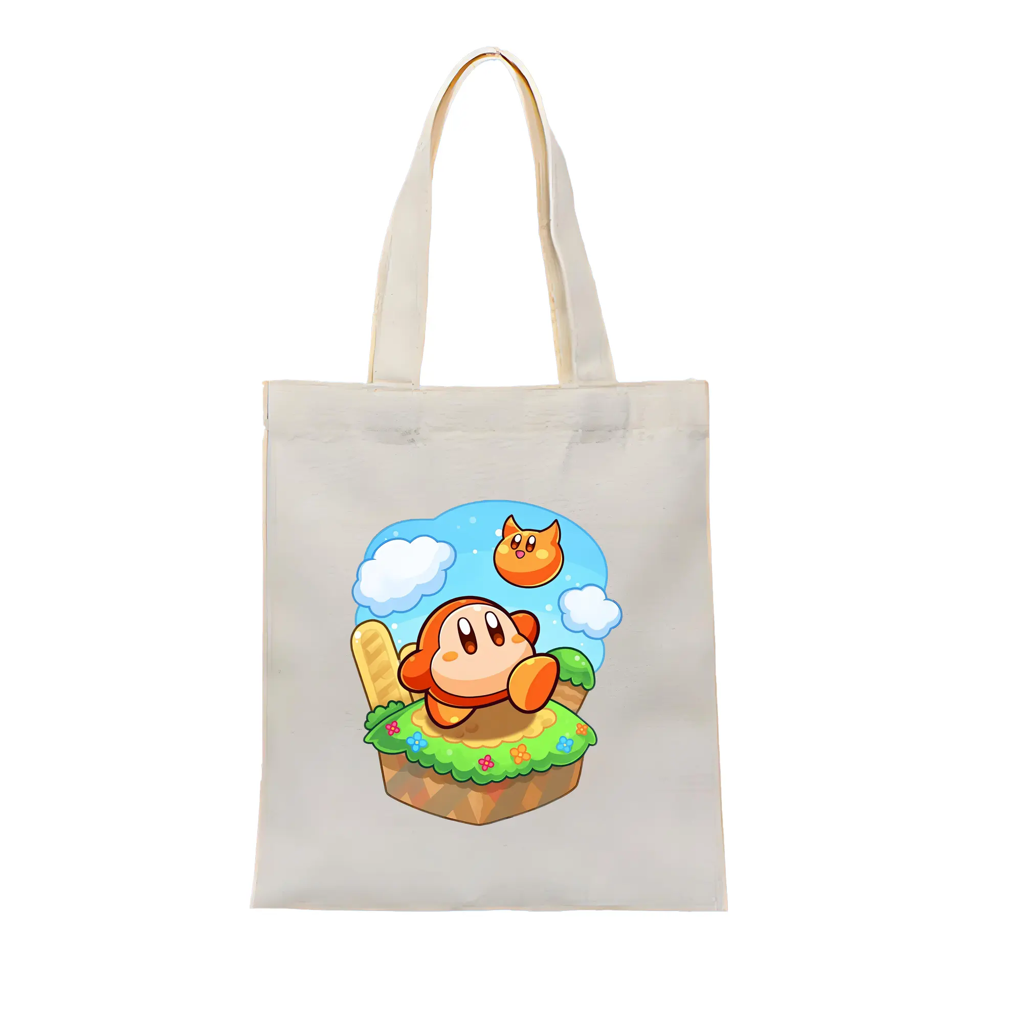 星のカービィ グッズ ワドルディ - 縦型キャンバス手提げバッグ(トートバッグ) ・ キャンバス素材 ・ ショッピング用 ・ 軽量 丈夫 お手入れ簡単