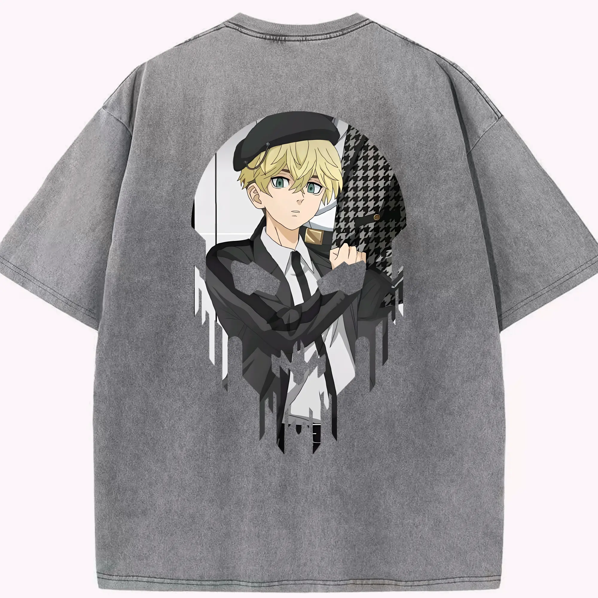 東京リベンジャーズ グッズ,灰谷竜胆 - 綿100% ヴィンテージ風 半袖Tシャツ ・ 背面プリント ・ 柔らか肌触り ・ 通気性 快適 ・ スポーツ カジュアル 外出用