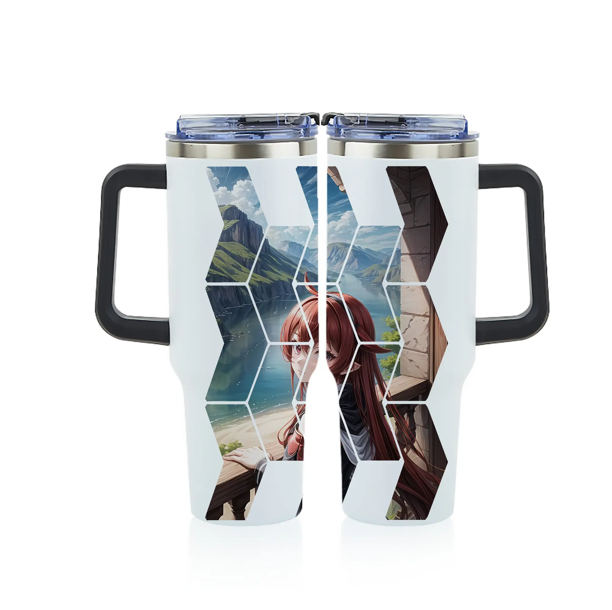 無職転生 グッズ,エリス・ボレアス・グレイラット - 1200mL フルプリント車用タンブラー ・ 304ステンレス 内側 ・ 201ステンレス 外側 ・ 保温 保冷 ・ 通勤 ドライブ アウトドア用
