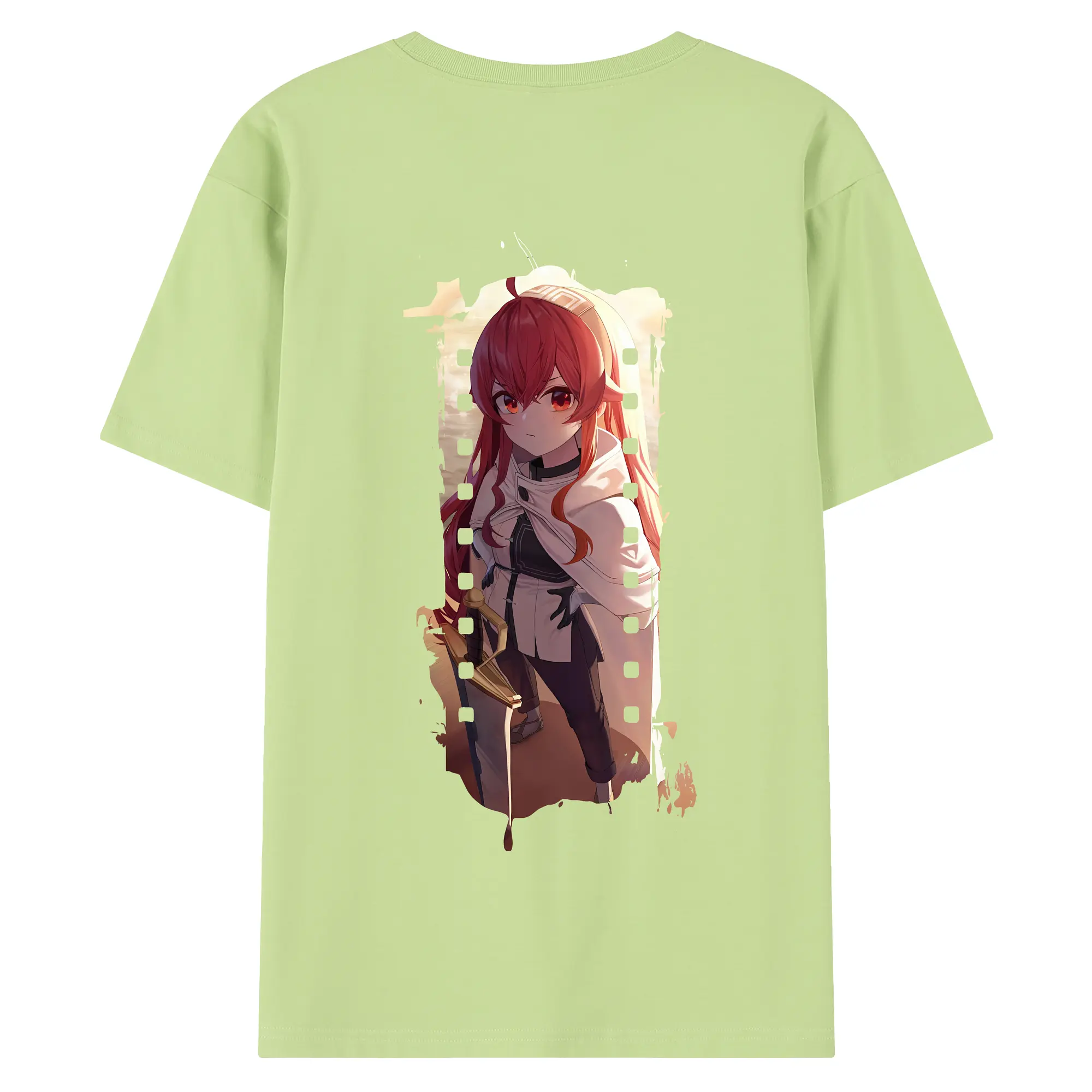 無職転生 グッズ,エリス・ボレアス・グレイラット - 綿100% ヴィンテージ風 半袖Tシャツ ・ 背面プリント ・ 柔らか肌触り ・ 通気性 快適 ・ スポーツ カジュアル 外出用